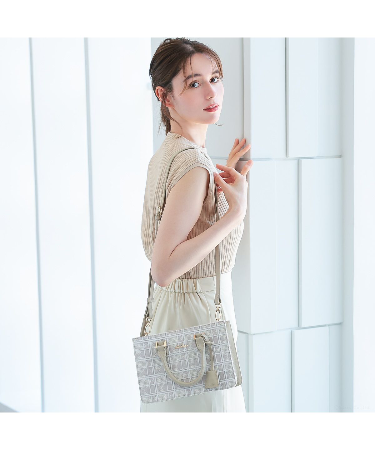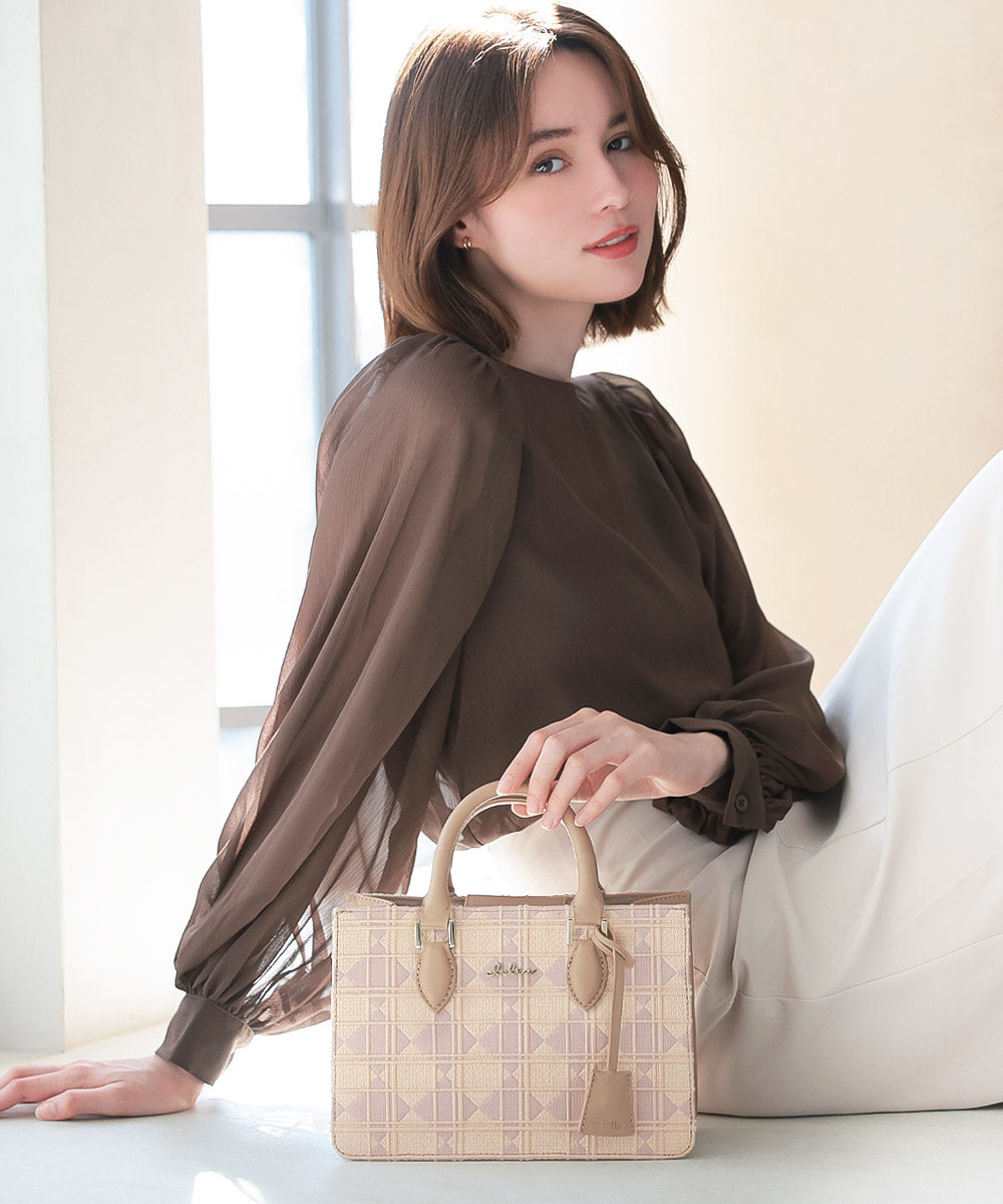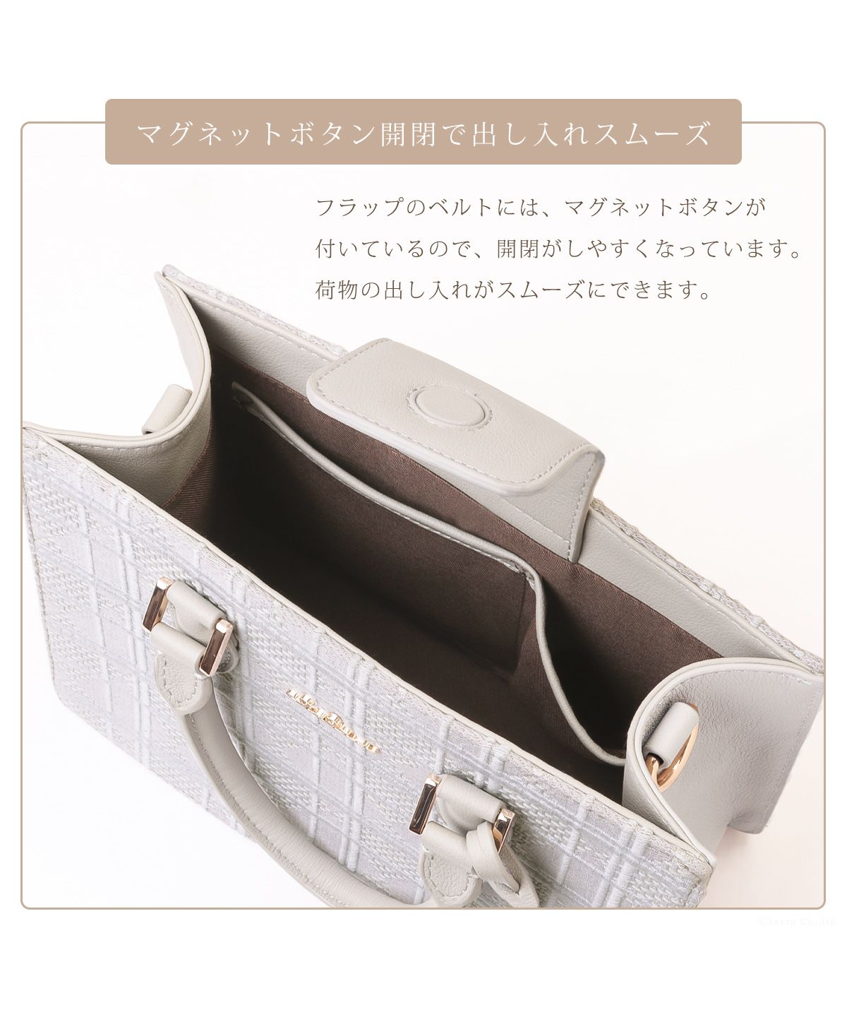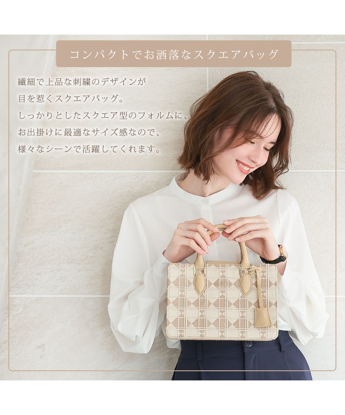 繊細で上品な刺繍のデザインが目を惹くスクエアバッグ。