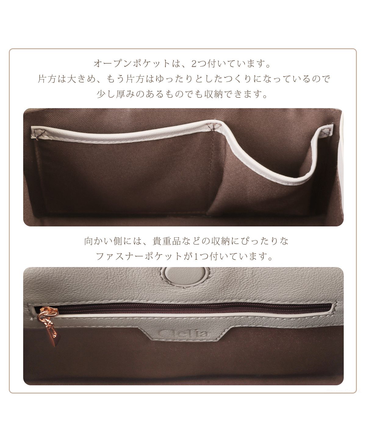 仕様:内側/オープンポケット×2、ファスナーポケット×1