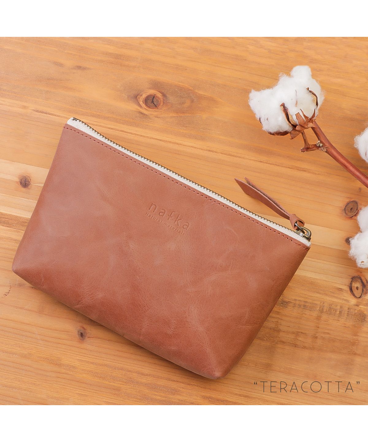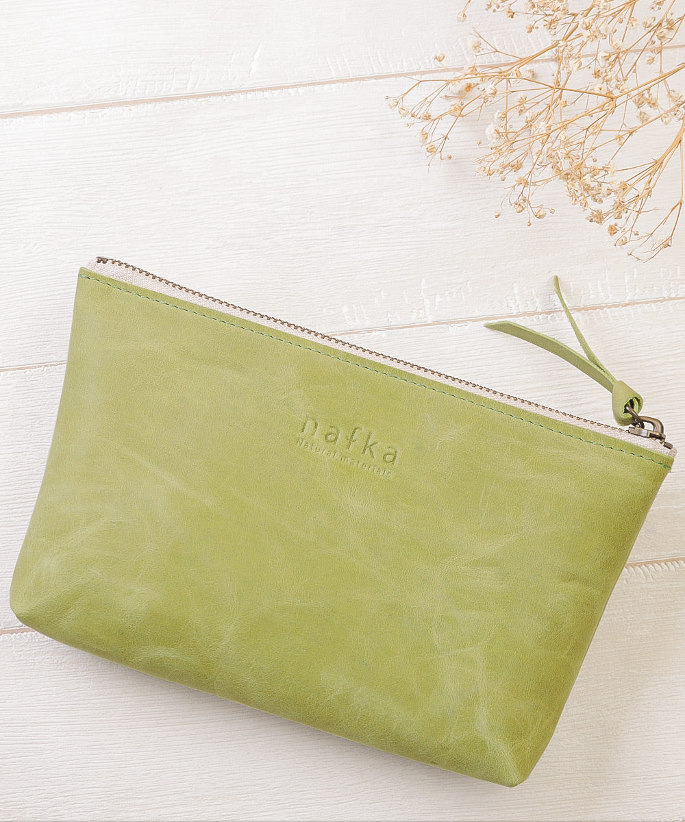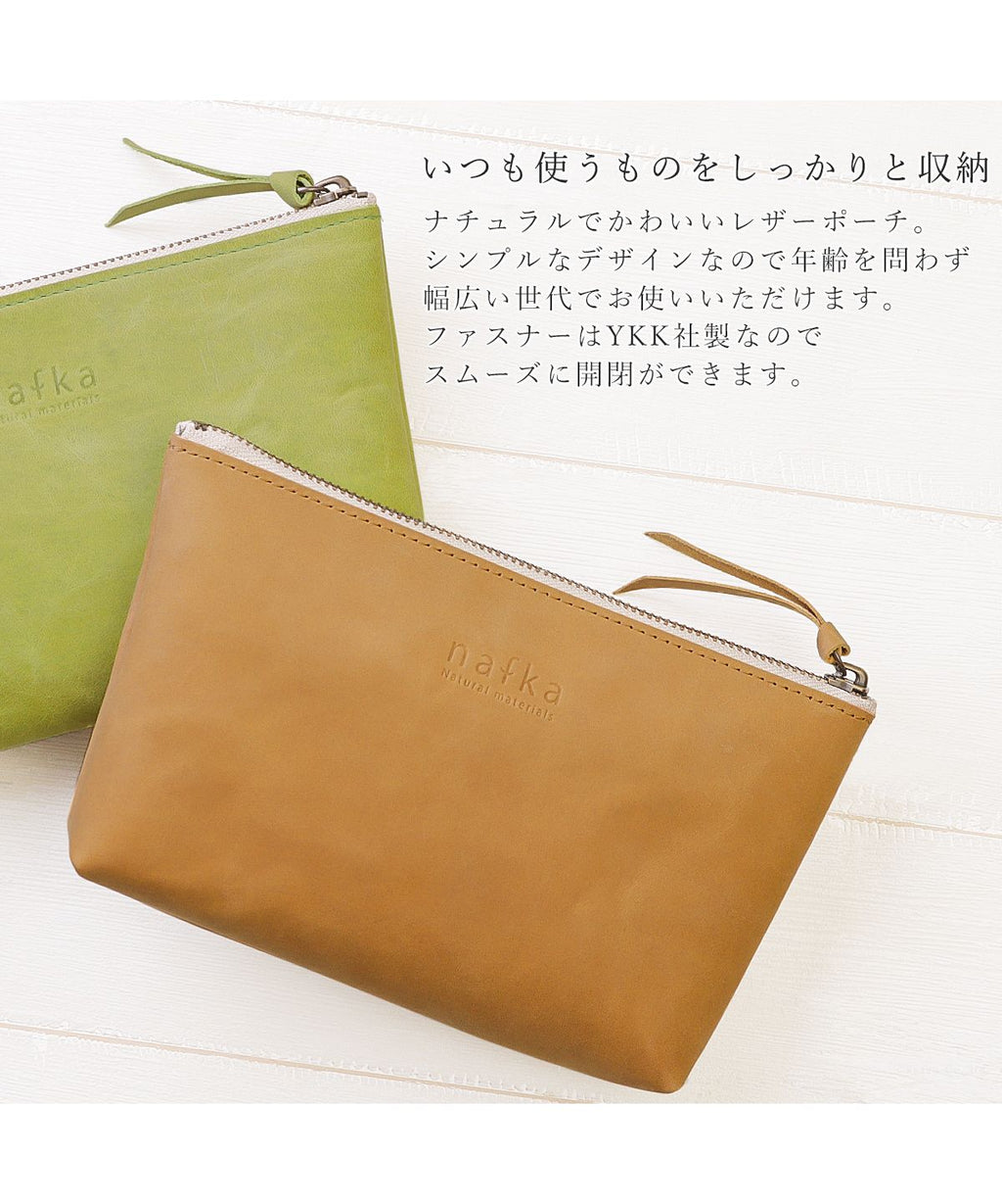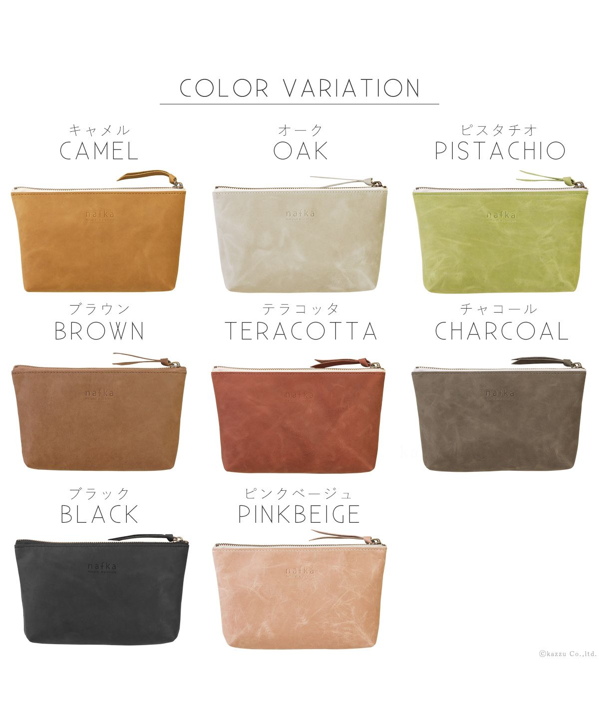 キャメル オーク ピスタチオ ライトグリーン 緑 ブラウン 茶色 テラコッタ レッドブラウン 赤 チャコール グレー ブラック 黒 ピンクベージュ レザーポーチ マチ付き ブランド 革 牛革 メイドインジャパン 大きめ 可愛い きれいめ お洒落 大人かわいい 使いやすい スムーズ 新生活 普段使い レトロ 大人 シンプル 懐かしい 珍しい 個性的 おしゃれ nafka ナフカ