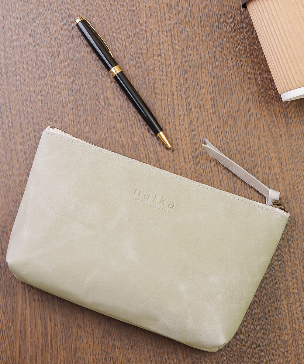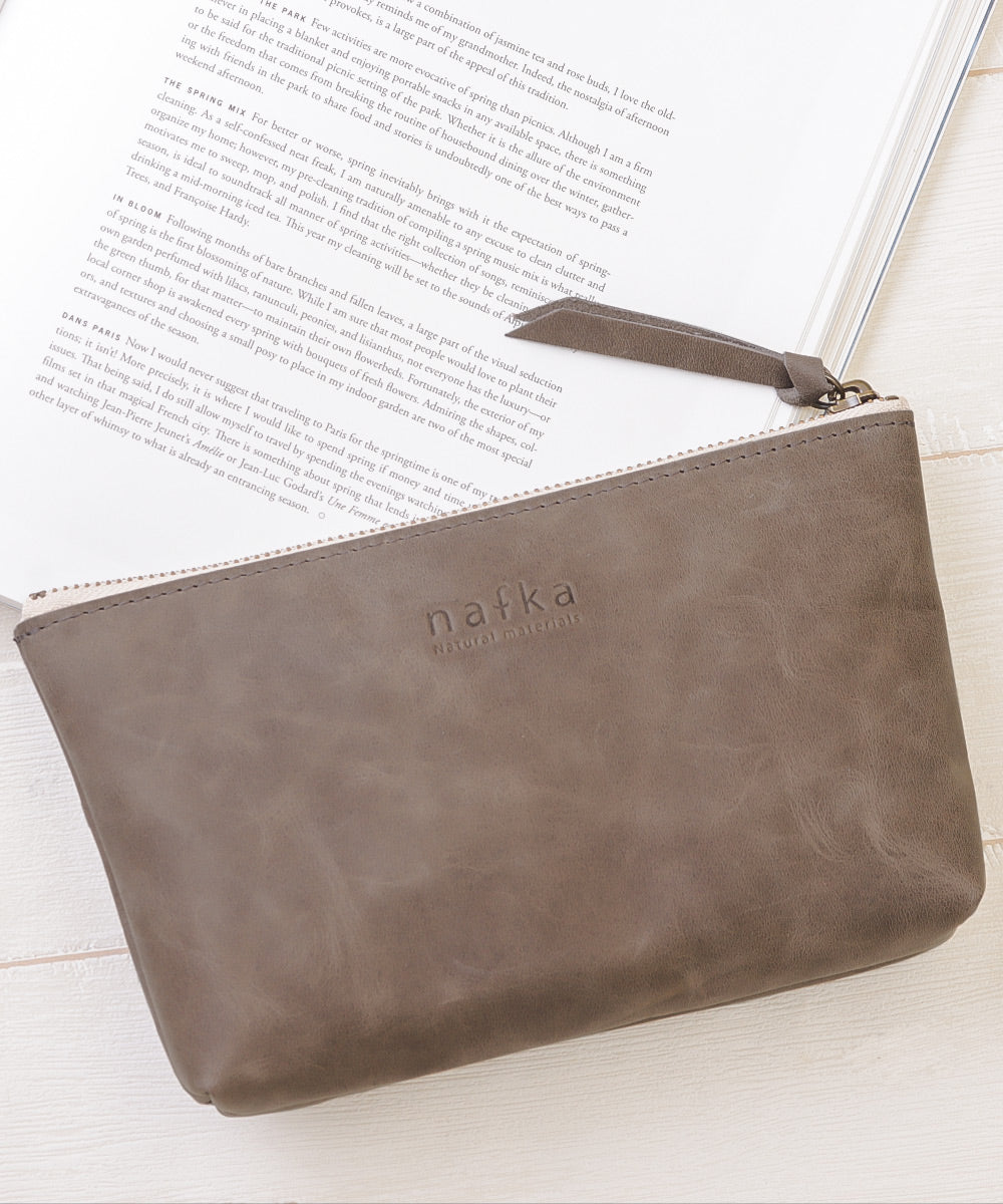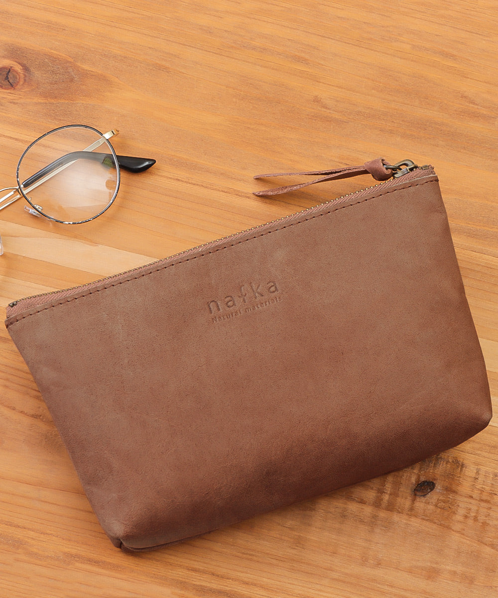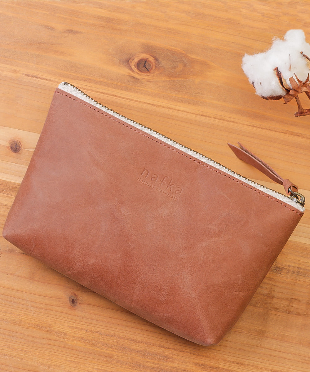 キャメル オーク ピスタチオ ライトグリーン 緑 ブラウン 茶色 テラコッタ レッドブラウン 赤 チャコール グレー ブラック 黒 ピンクベージュ レザーポーチ マチ付き ブランド 革 牛革 メイドインジャパン 大きめ 可愛い きれいめ お洒落 大人かわいい 使いやすい スムーズ 新生活 普段使い レトロ 大人 シンプル 懐かしい 珍しい 個性的 おしゃれ nafka ナフカ