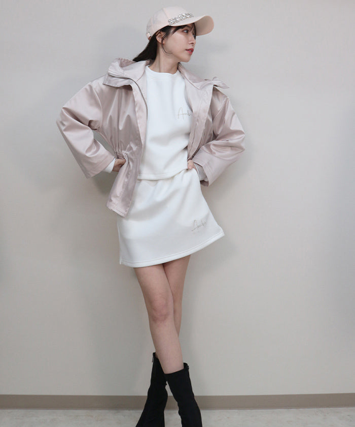微光沢なサマーツイード生地とビジューパーツが、ベーシックスタイルに華やかさをプラスしてくれます。