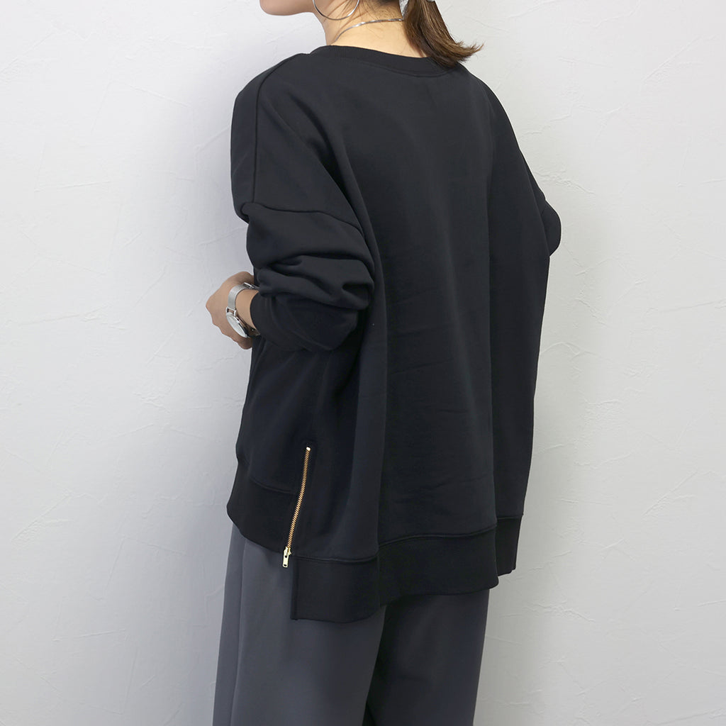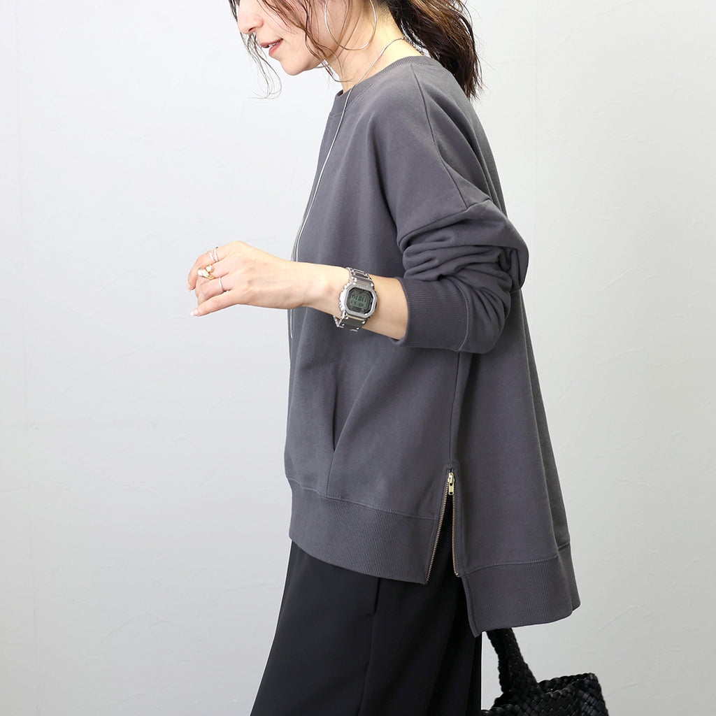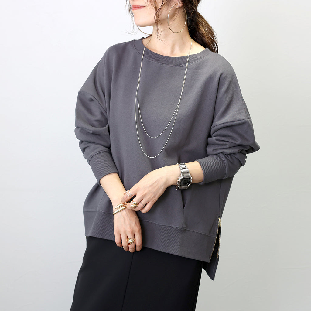 裾の両サイドに、きらり煌めくゴールドのファスナーをあしらった差のつくプルオーバー。