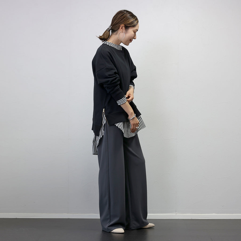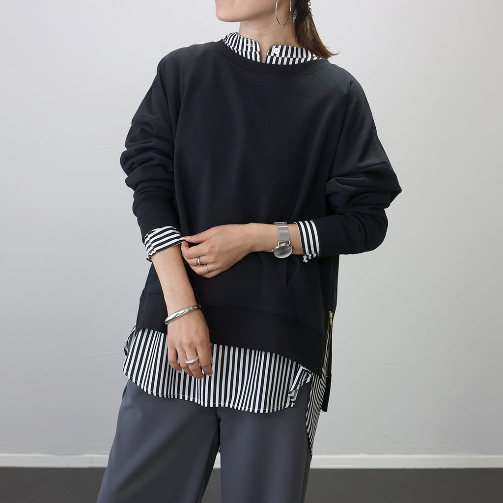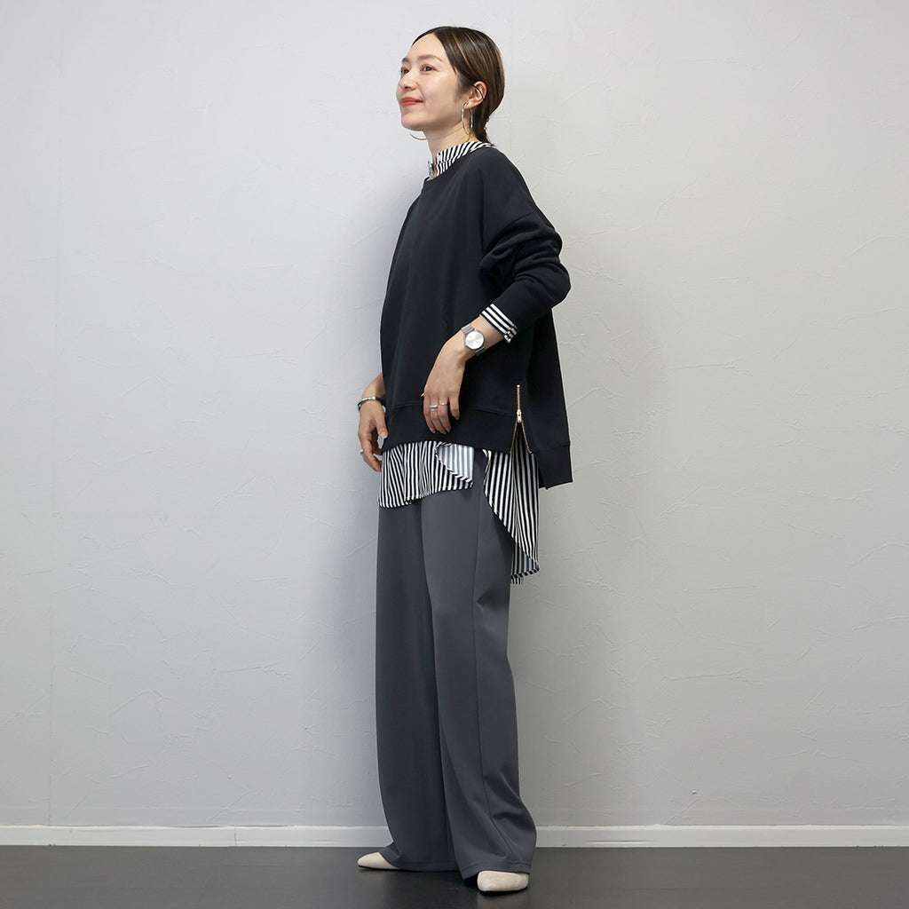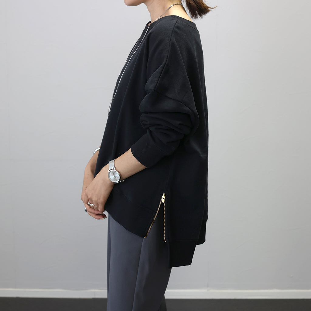 裾の両サイドに、きらり煌めくゴールドのファスナーをあしらった差のつくプルオーバー。
