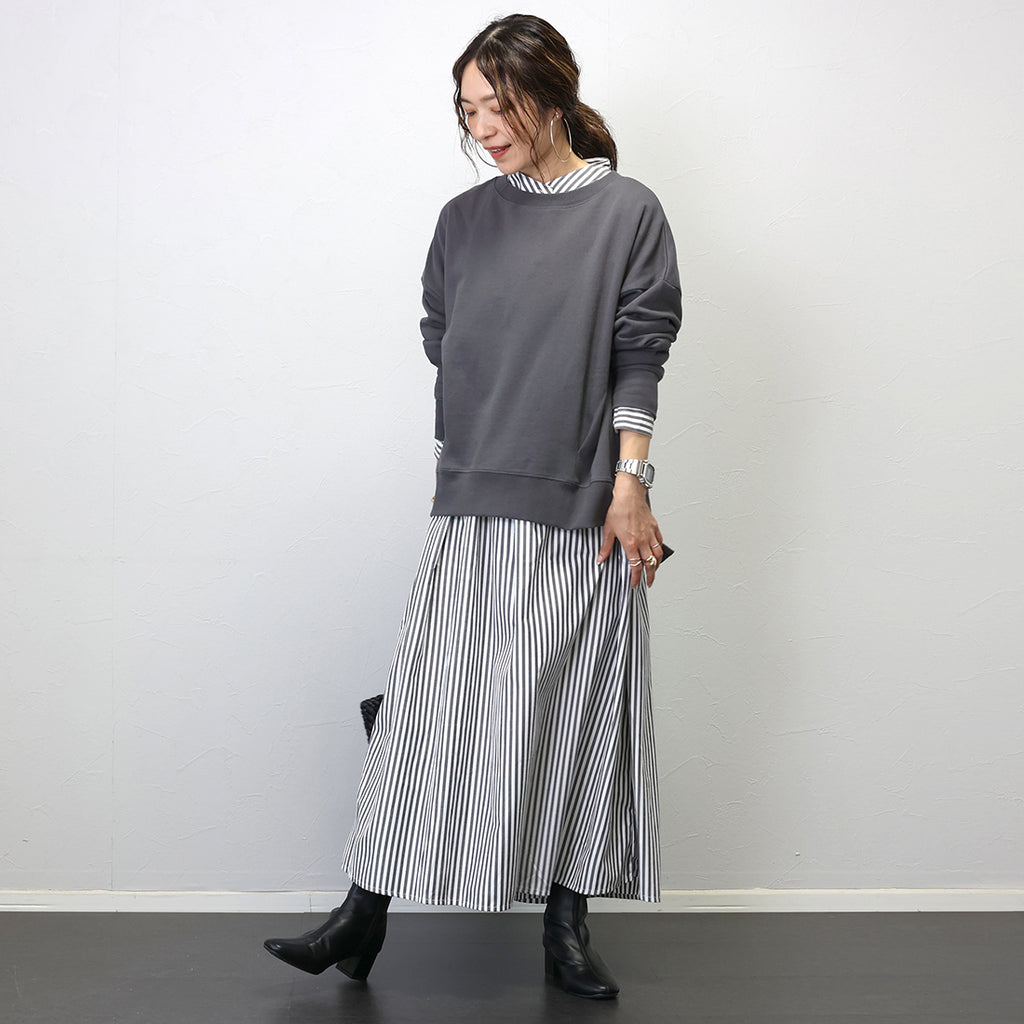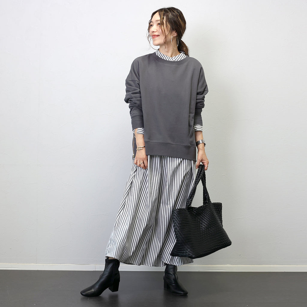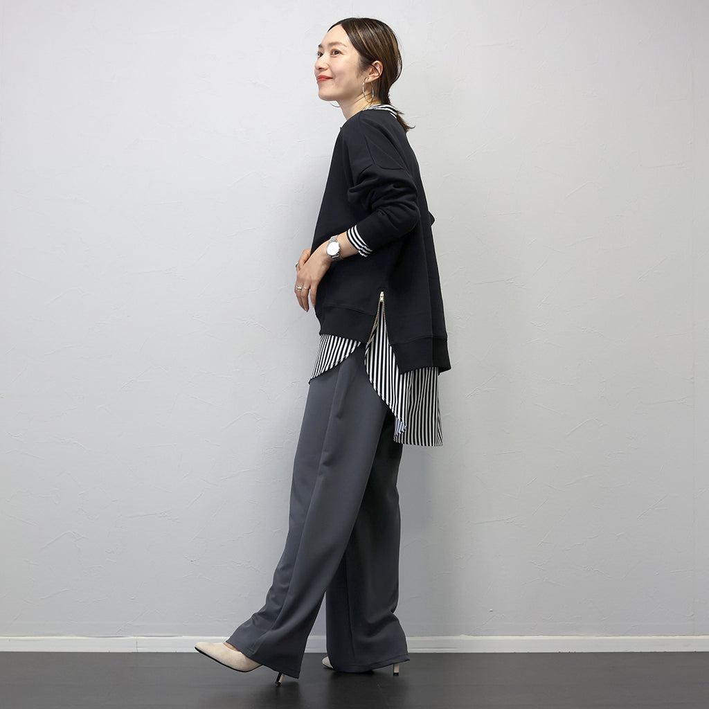 インにカットソーを重ねた旬のレイヤードスタイルとも相性抜群です。