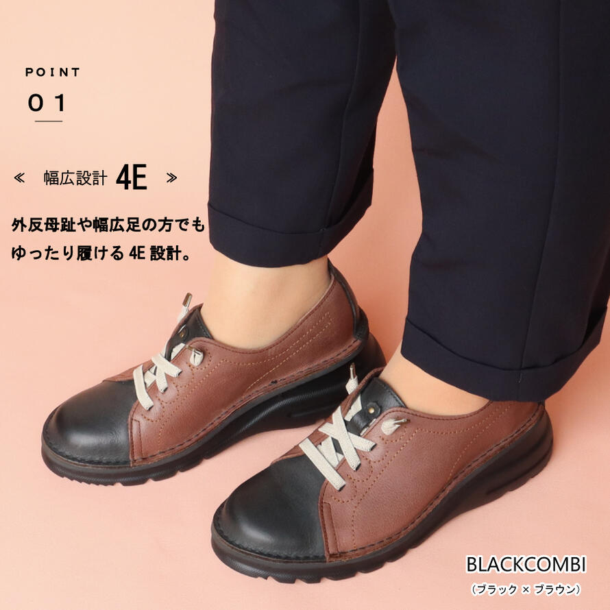 ・外反母趾の方、幅広・甲高の方でも安心して履ける幅広4E。