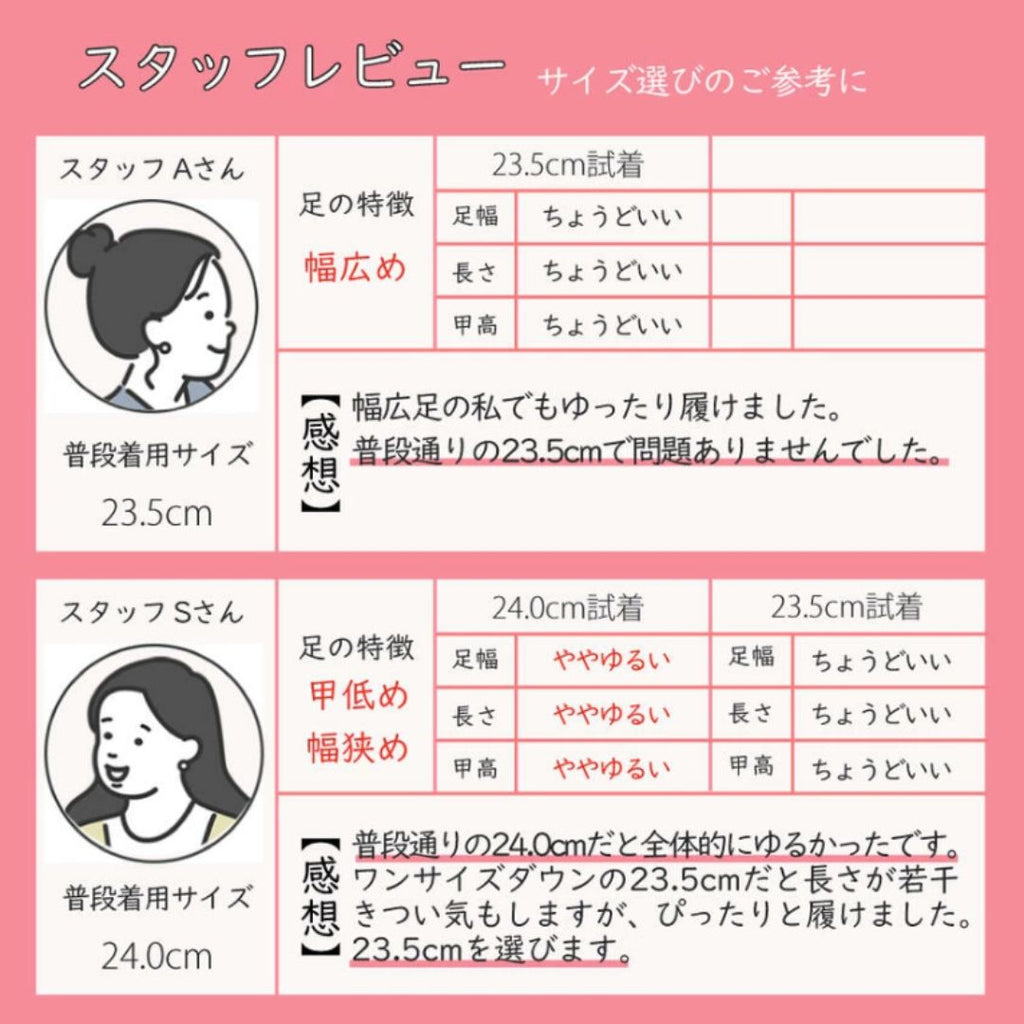 サイズ 21.5cm/21.5-22.0cm, 22cm/22.0-22.5cm, 22.5cm/22.5-23.0cm, 23cm/23.0-23.5cm, 23.5cm/23.5-24.0cm, 24cm/24.0-24.5cm, 24.5cm/24.5-25.0cm, 25cm/25.0-25.5cm