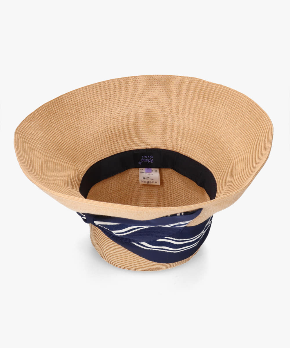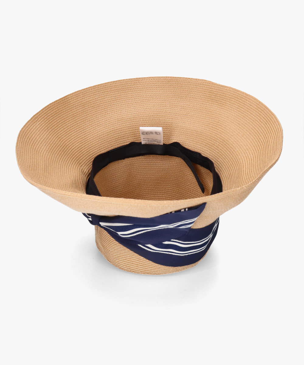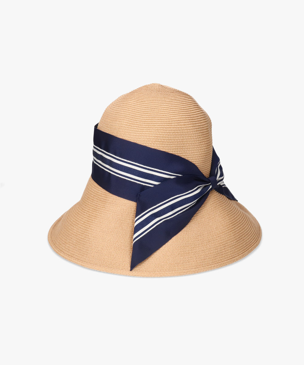 Risako(リサコ)と同じ、リボンをクロスしてデザインされたRisako Stripeは、幅広のリボンの上に細いストライプリボンを重ねてマリンテイストに仕上げた帽子。ストライプ柄は、熱い夏をより爽やかに演出してくれます。