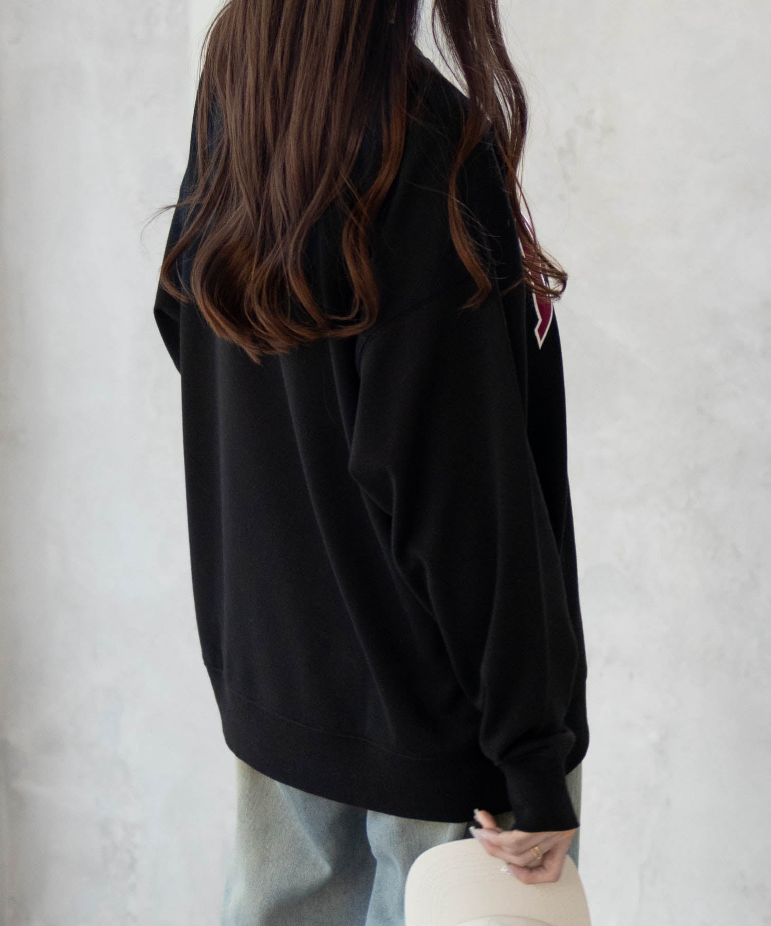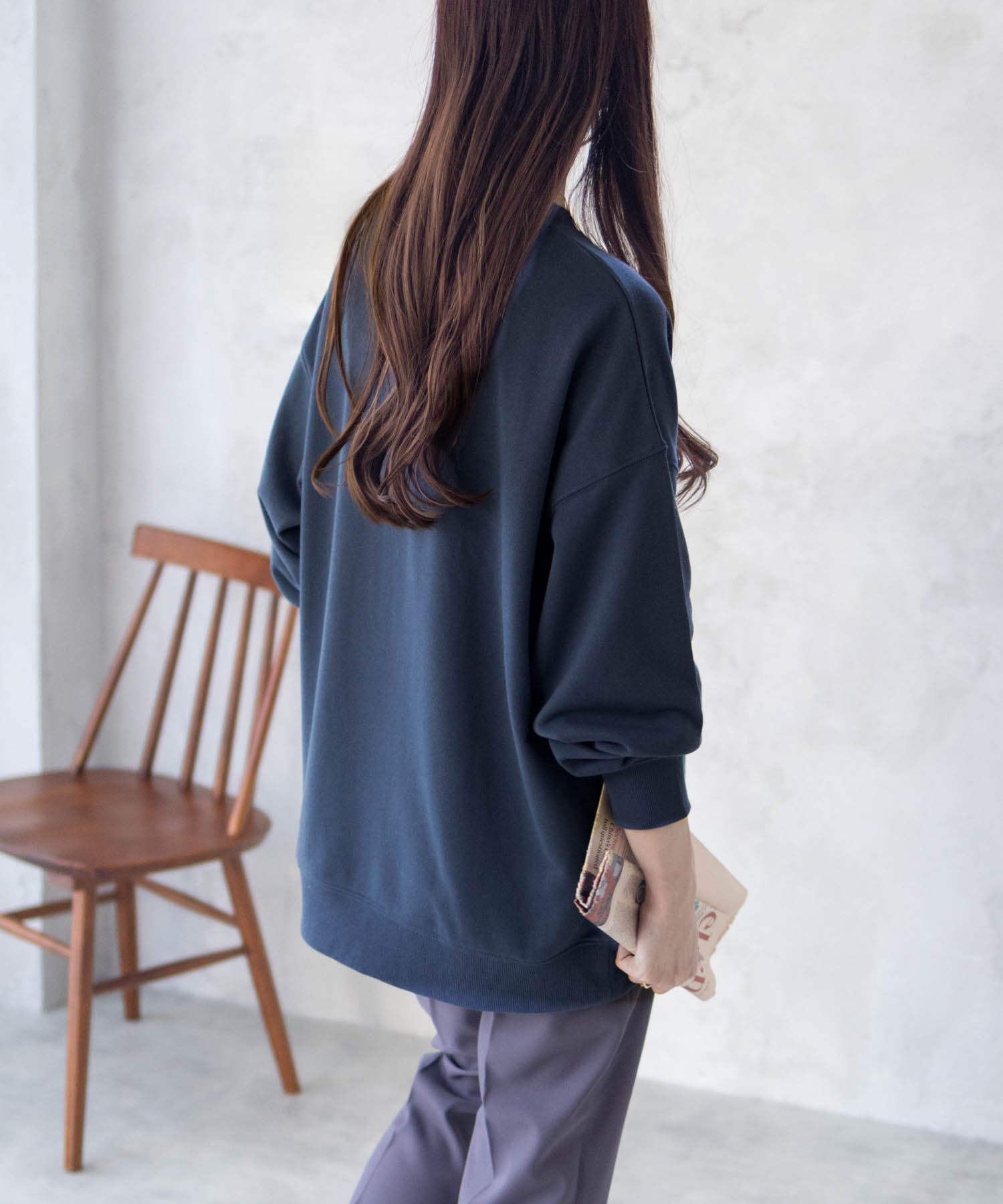 ドロップショルダーのトレンドのオーバーサイズシルエット。