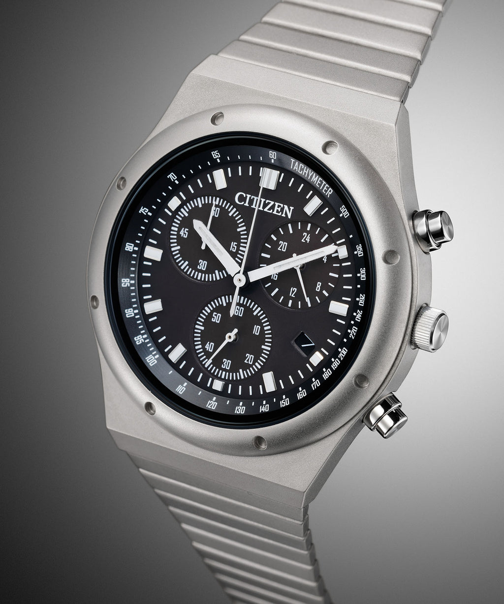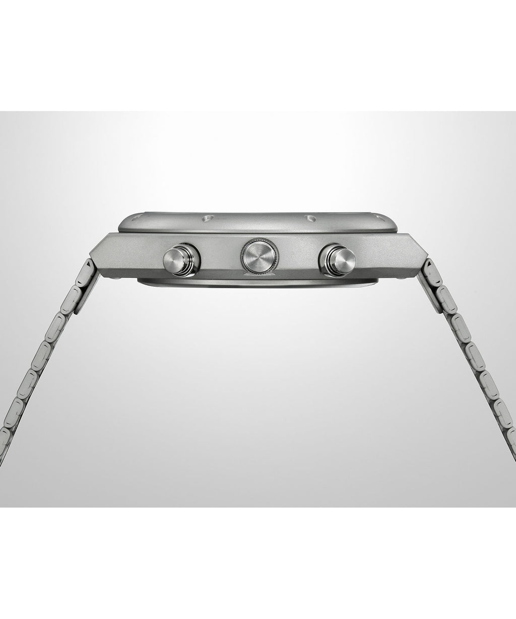 1984年に発売された多機能アナログクオーツクロノグラフ「スポルテ MS」を、昭和後期の世界観をイメージした、"ポスト・ヴィンテージ"テイストにアップデートしました。「スポルテ MS」のケースからバンドにかけてのスタイリッシュなラインや少し武骨な印象を与えるベゼルの飾り穴処理を再現。レトロな印象とクロノグラフのスポーティーさを同時に楽しめます。オリジナルモデルをリスペクトした黒文字板モデルは、ケースにホーニング処理を施し、渋めの印象に。上板が金属素材の白文字板モデルはヘアライン仕上げを採用し、レトロな中にもモダンな雰囲気をプラス。同じシルバーでありながらも異なる雰囲気を纏わせています。