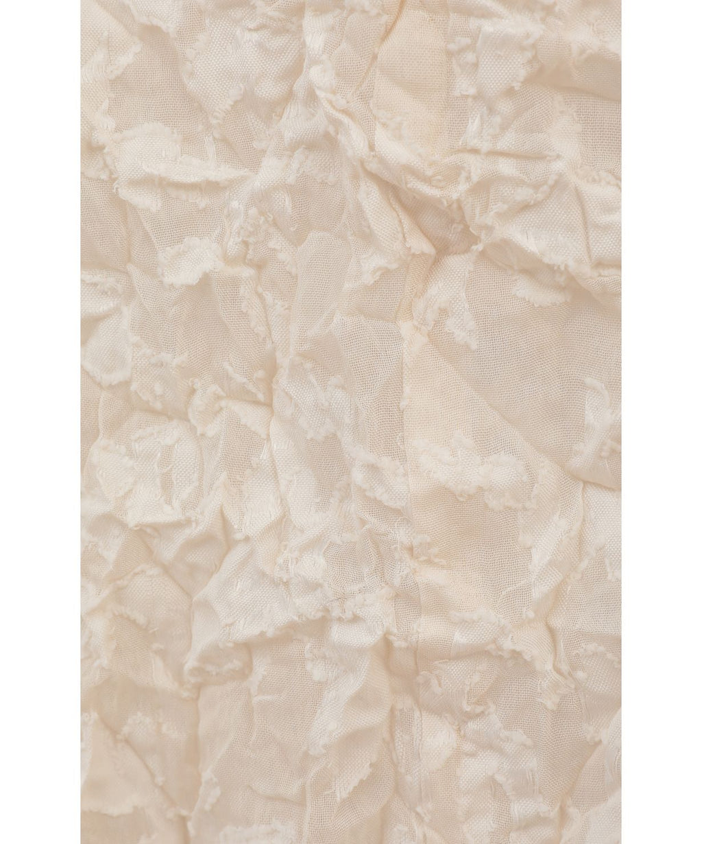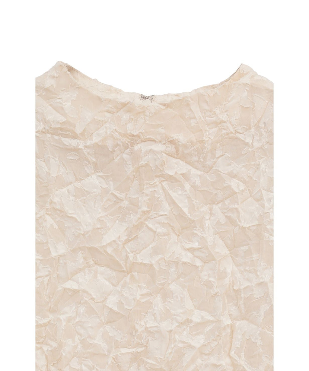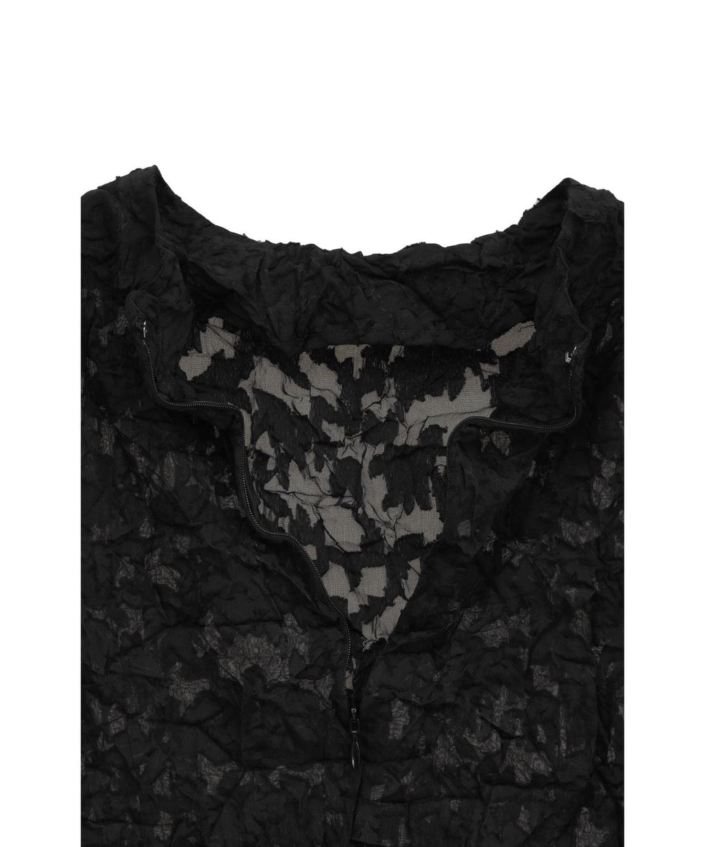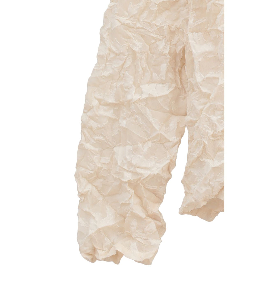 シワ感のある表情豊かでレーシーなテキスタイルが、大人のセンシュアルとモードを両立するプルオーバー。すっきり詰まったネックラインが顔周りをスタイリッシュに引き締めてくれるから、ノーブルなイメージもキャッチした着こなしが叶いそう。