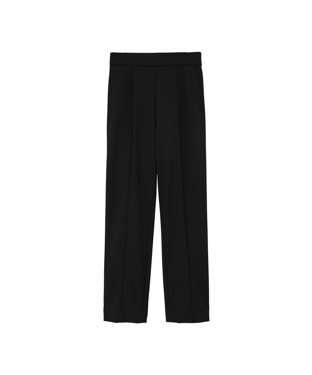 ウエストはギャザーを入れないゴム仕様で、ウエストの動きが楽な上に腰回りはすっきりと見え、センターに入った切替ラインは足を真っ直ぐに見せてくれます。