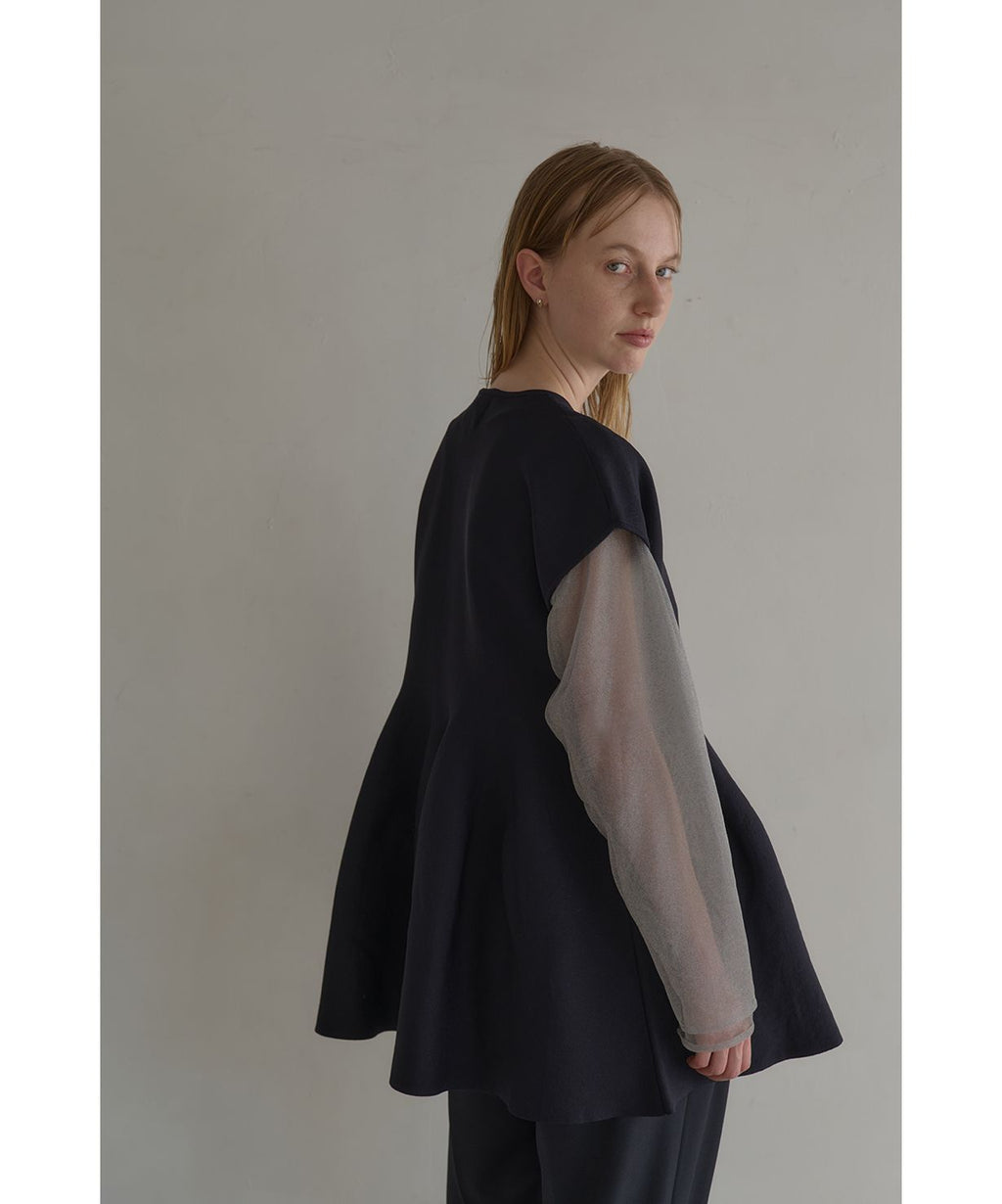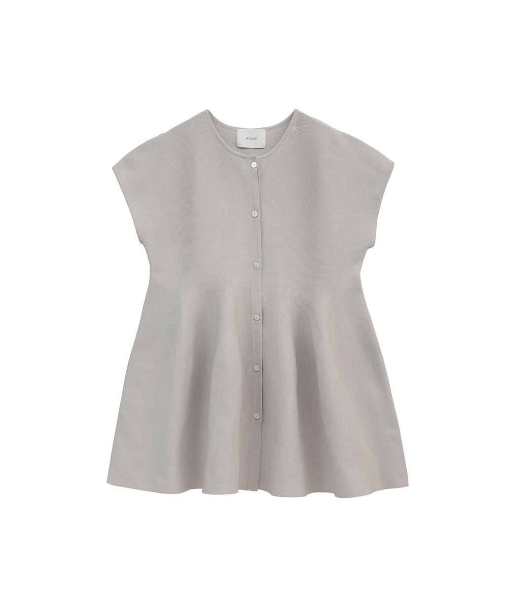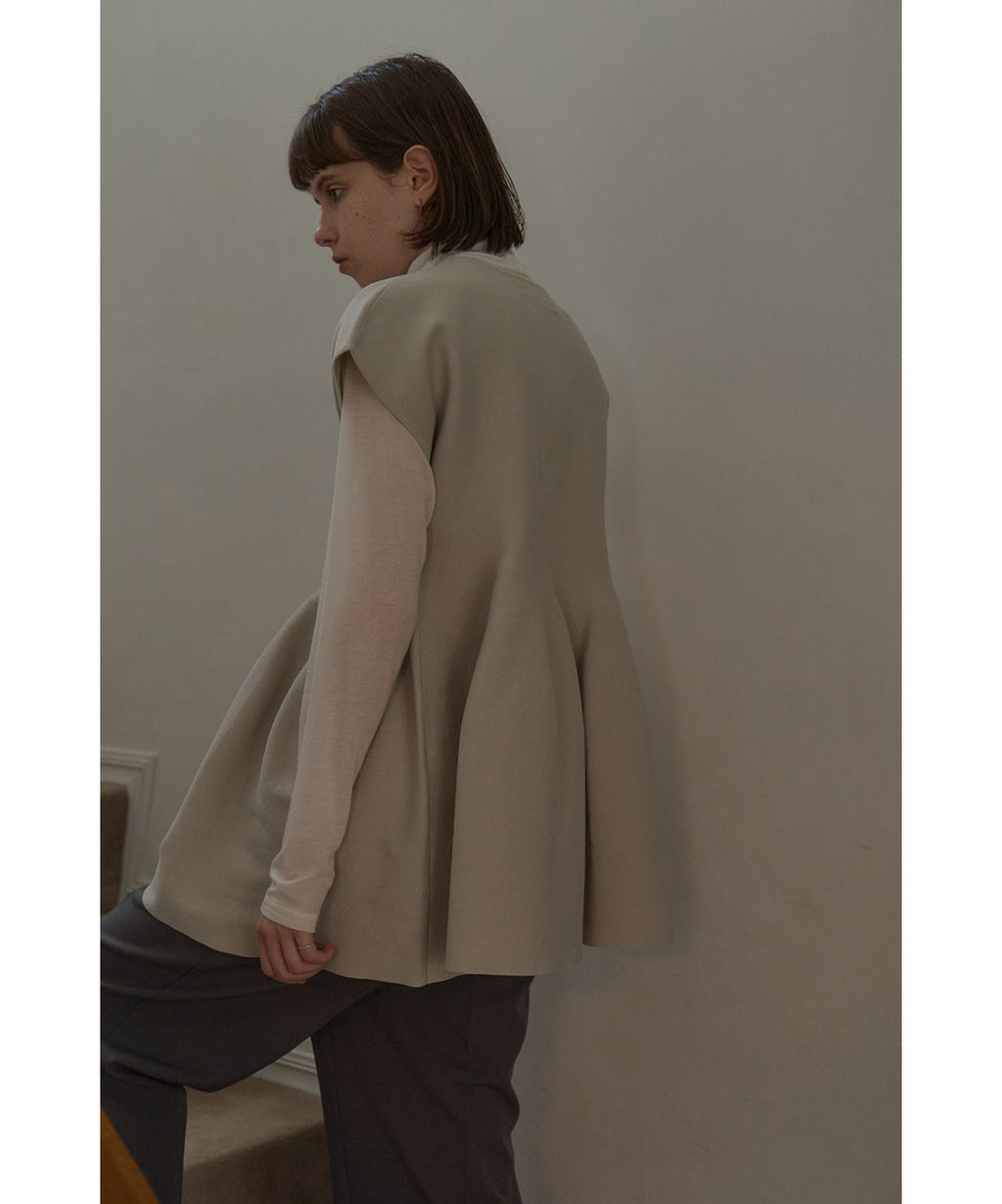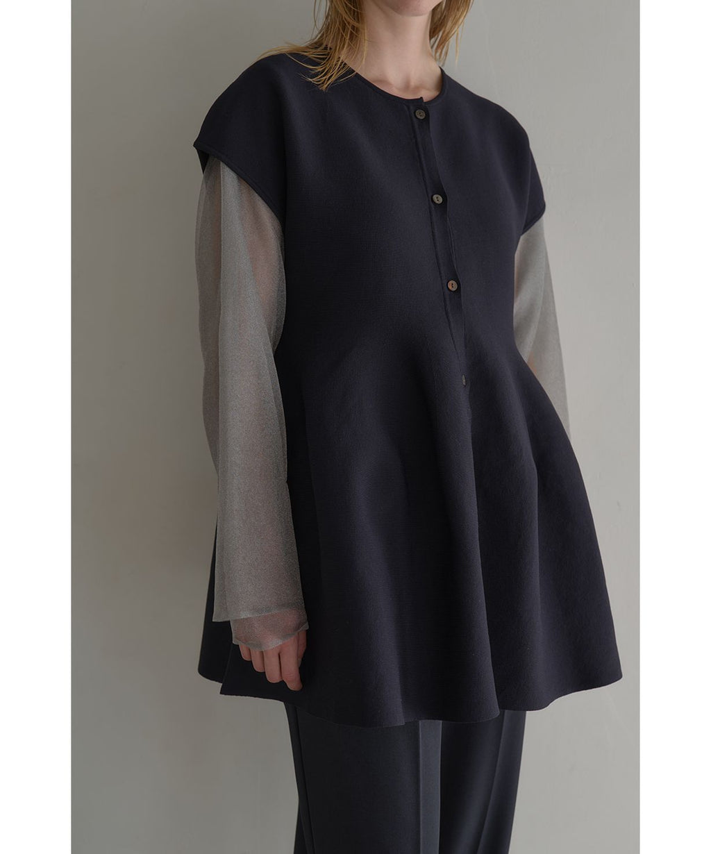 ハイウエスト位置からふんわりとボリューミーに広がるフレアシルエットが、体のラインをカバーしつつ大人の可愛さを引き立てるフレンチスリーブカーディガン。シアートップス等を差し込んで小ワザのきいた旬なレイヤードを楽しんで。