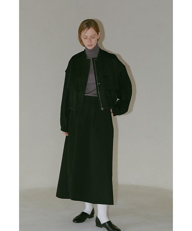 袖はファスナーで取り外し可能なので、ベストとしても着用して頂けます。フロントの切り替えや衿ぐりにはステッチワークを効かせ、モード感のある一着に仕上げました。コロンとした丸みのあるシルエットで、厚手のインナーの上からでも羽織りやすいオーバーサイズブルゾンは、一着あると着回しの効くアイテムです。