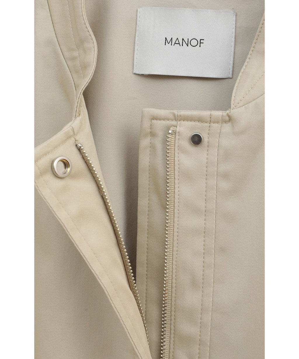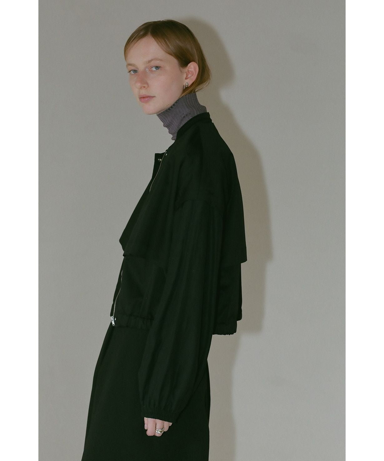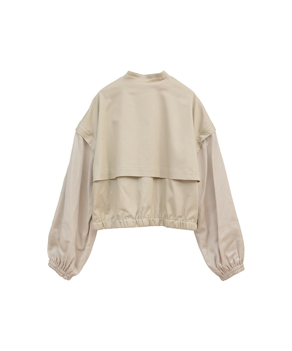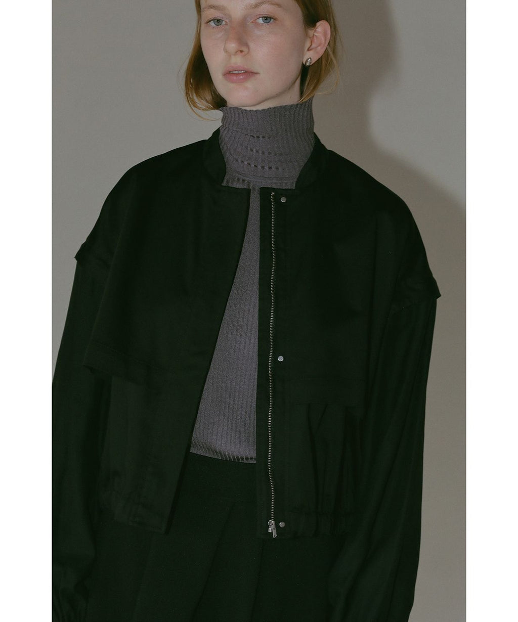 程よい光沢感のある異素材をレイヤードしたコンビブルゾン。