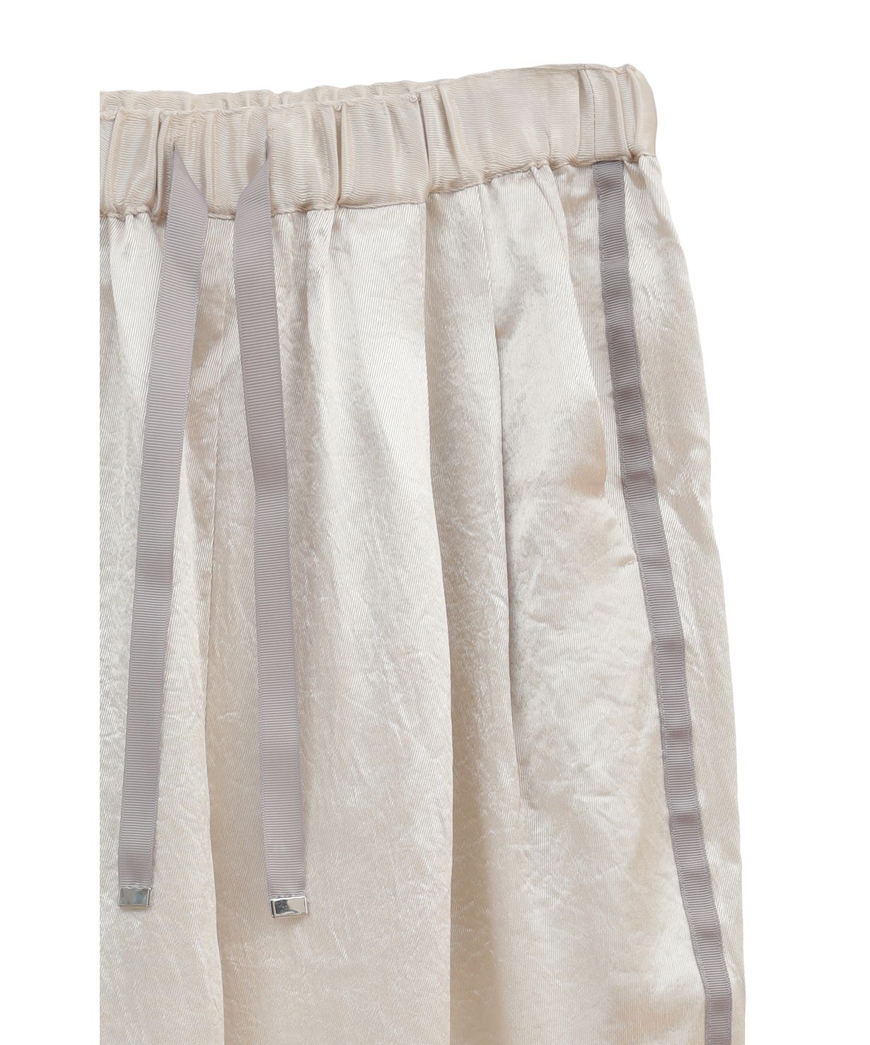 しっとりとした光沢をたたえるサテン素材で、ドレッシーなムードを取り入れたジョガーパンツ。サイドの配色ラインがスポーティーなアクセントになって、大人ならではの都会的なアスレジャーな着こなしが楽しめそう。