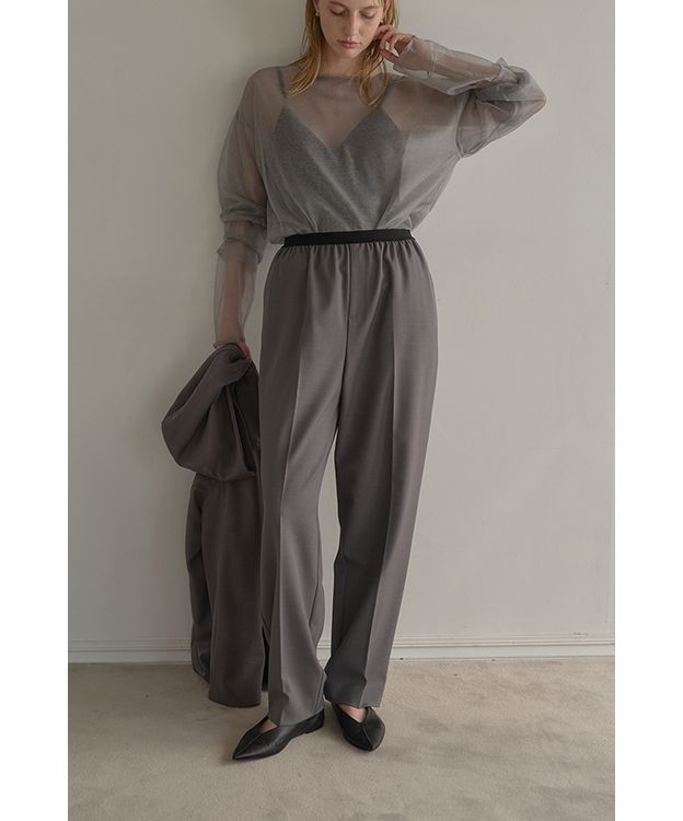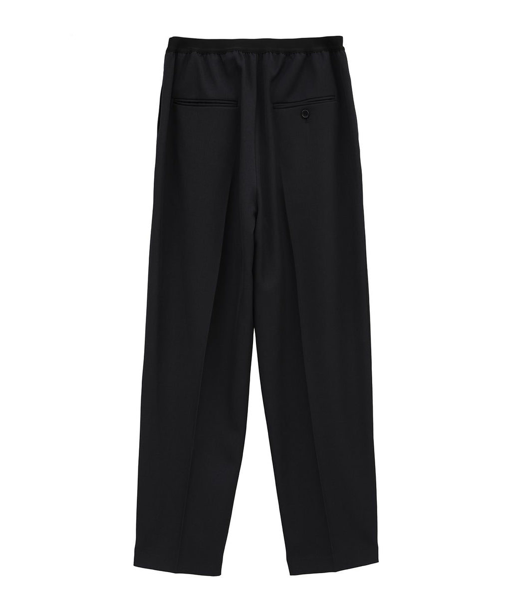 ゆとりあるテーパードシルエットでシンプルにスタイリングするだけでもハンサムに決まるセンタープレスパンツ。ウエストにはゴムを通しているからはき心地楽々で、デイリーに愛用してしまいそう。別売りのジャケットとセットアップとしても楽しめます。
