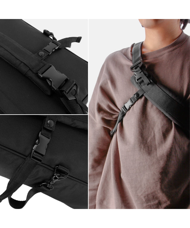 メインファブリックは、リサイクルナイロンとドープダイポリエステルを使用することで環境面にも配慮し、光の反射や角度によって様々な表情を見せるオリジナルファブリック“MOONLIGHT OXTEX.”を採用。付属には耐久堅牢度の高いナイロンとイタリアンレザー。ブランドタグなどにリフレクト素材を配置。両サイドから開閉できるポケットやデジタルガジェット対応スペースなど過剰な耐久性や防水機能ではなく、アーバンライフにあったちょうどいい機能と優れたユーザビリティを。