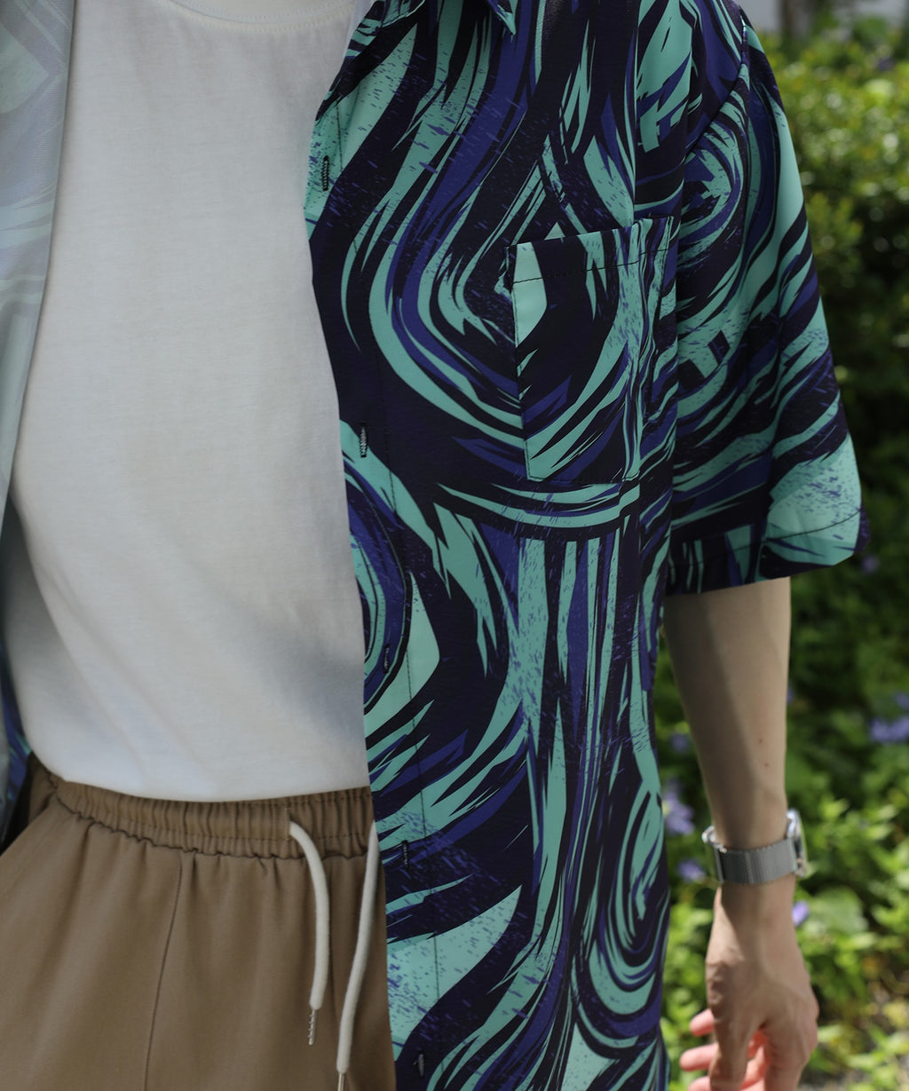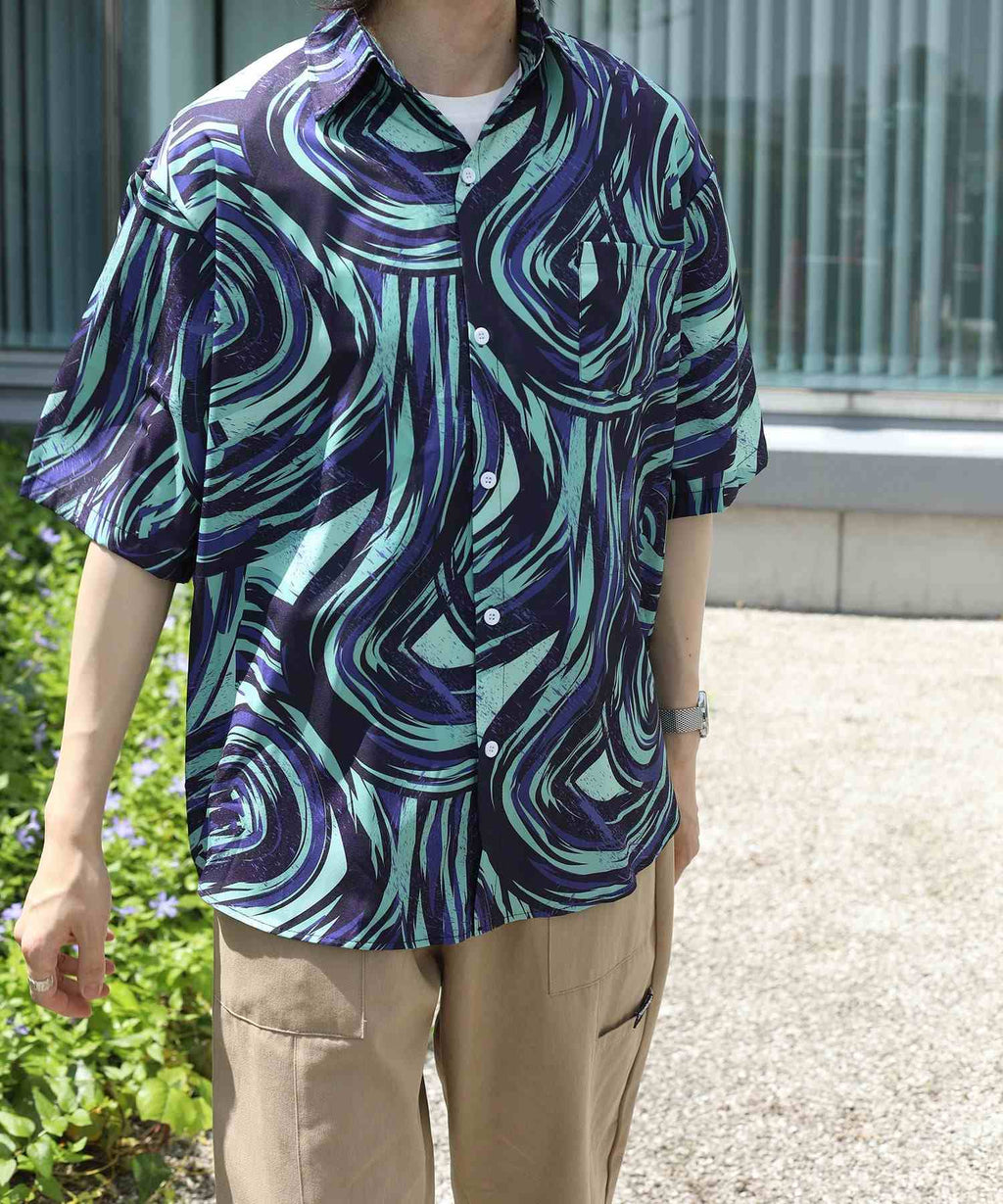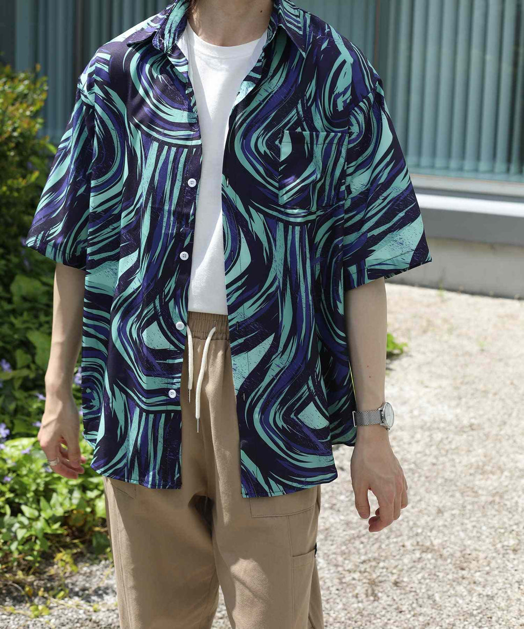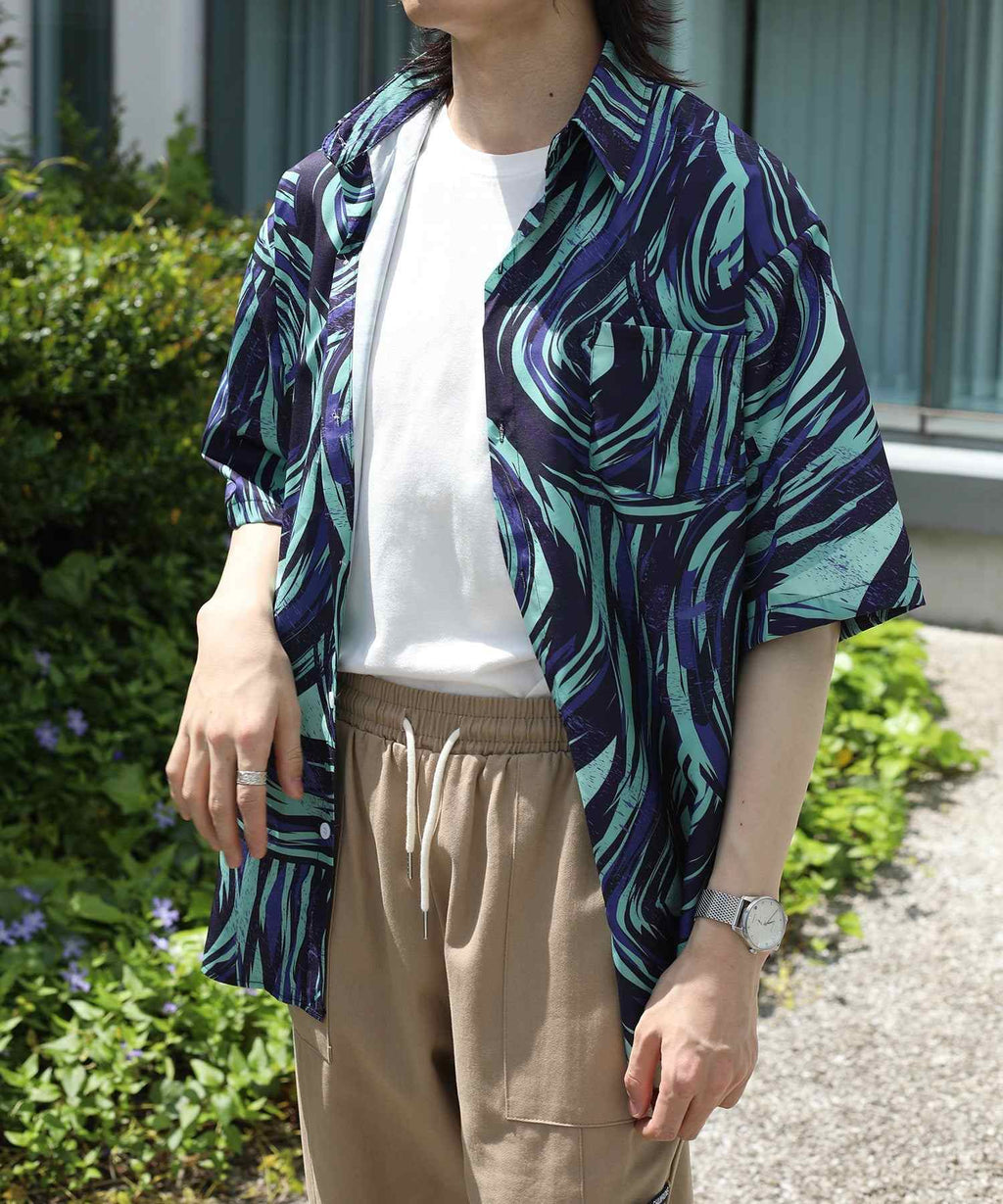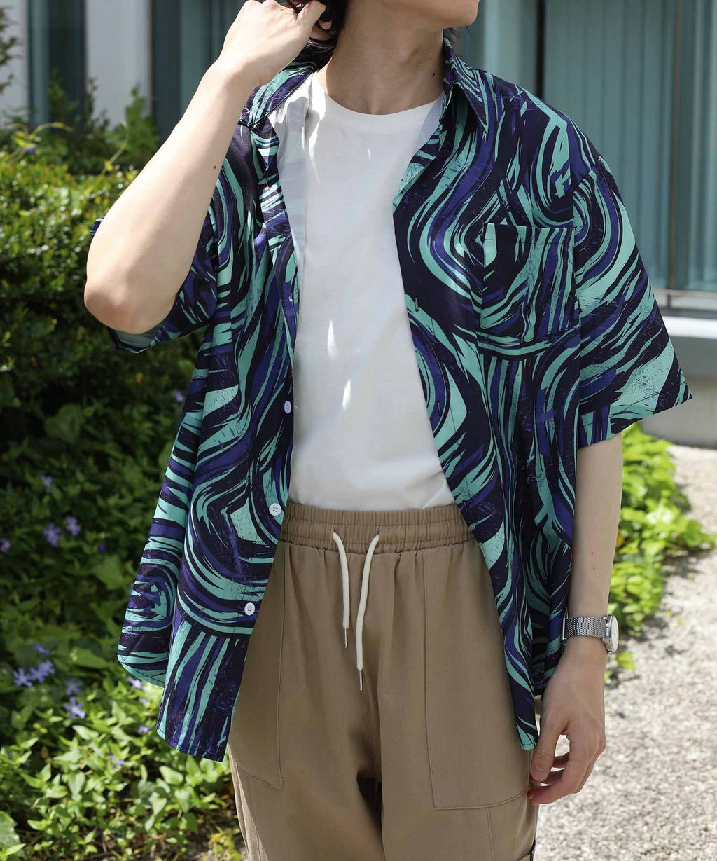落書き柄、絵画柄、フルーツ柄、抽象柄、幾何学柄…今季の総柄シャツのバラエティ豊富なデザインに。