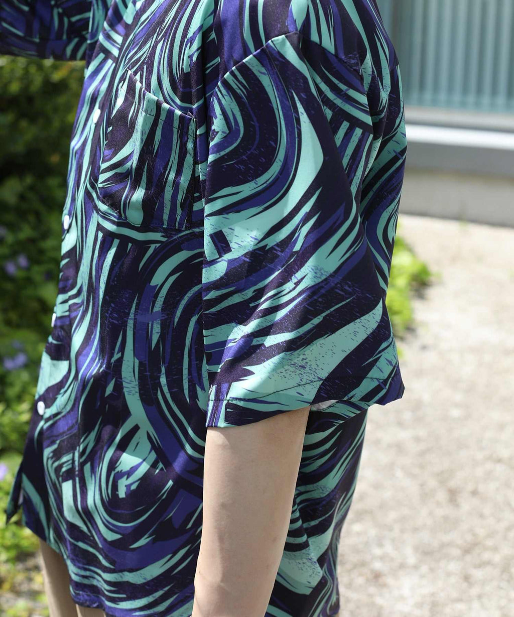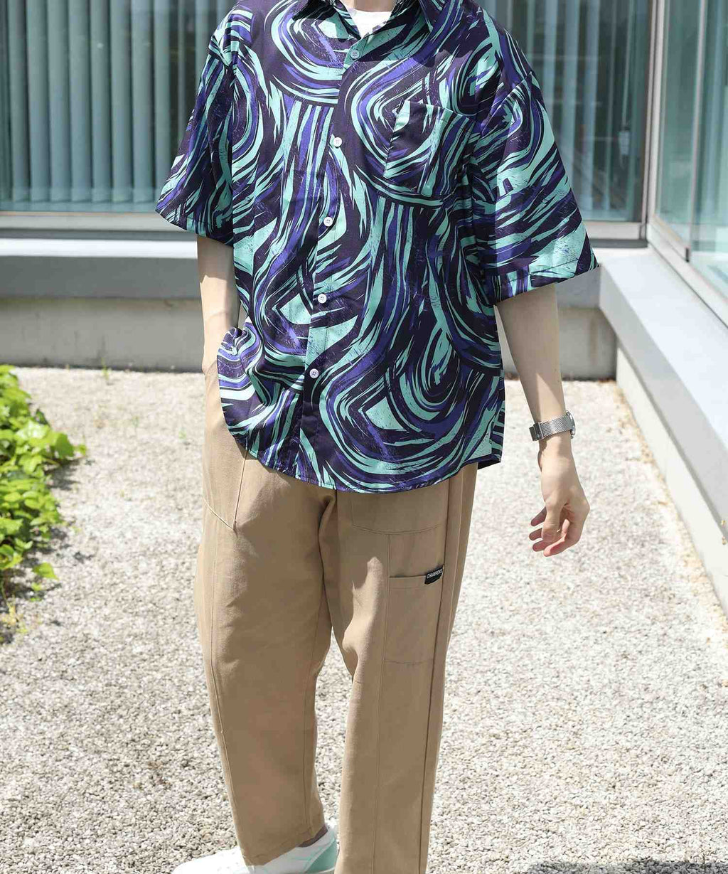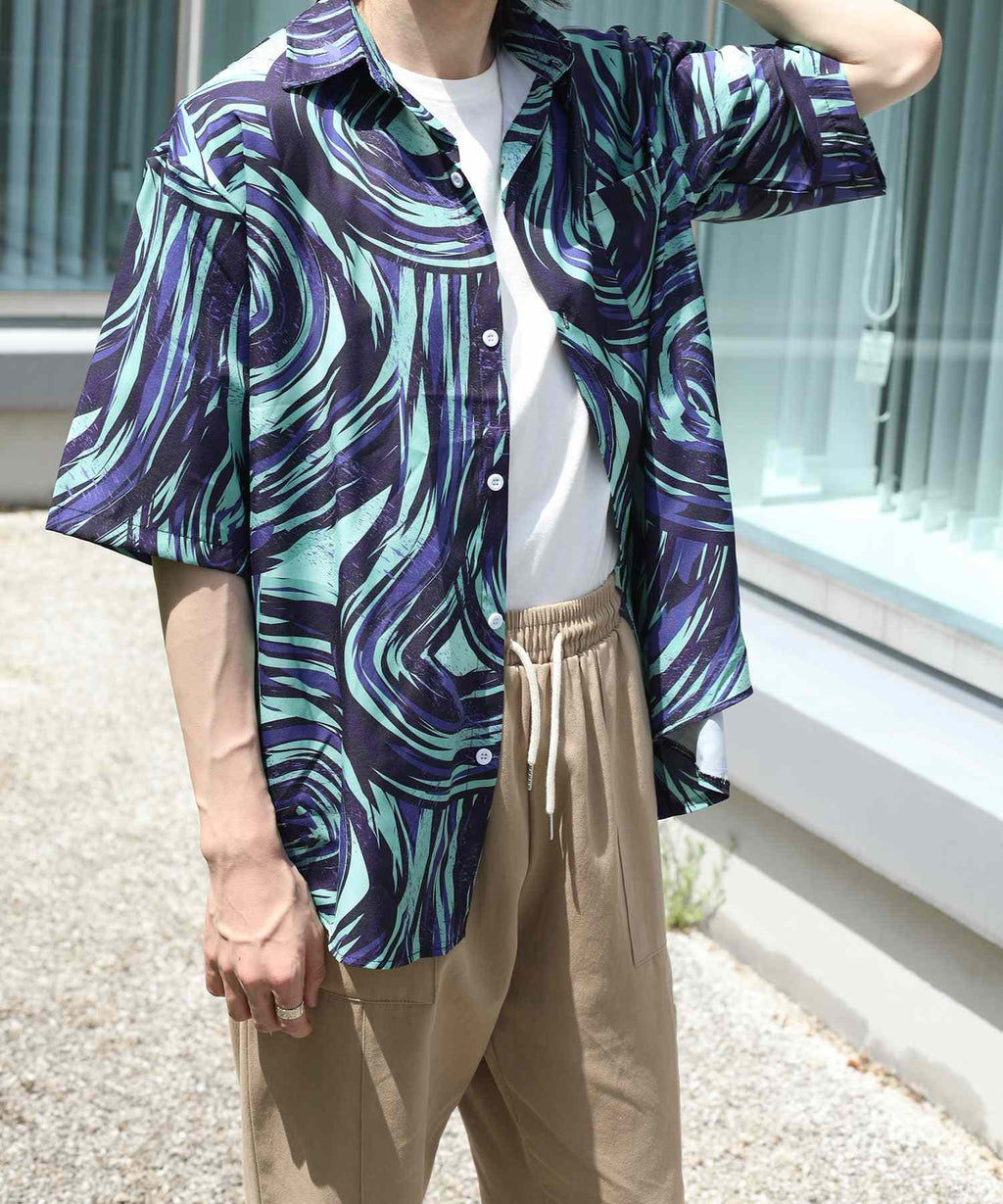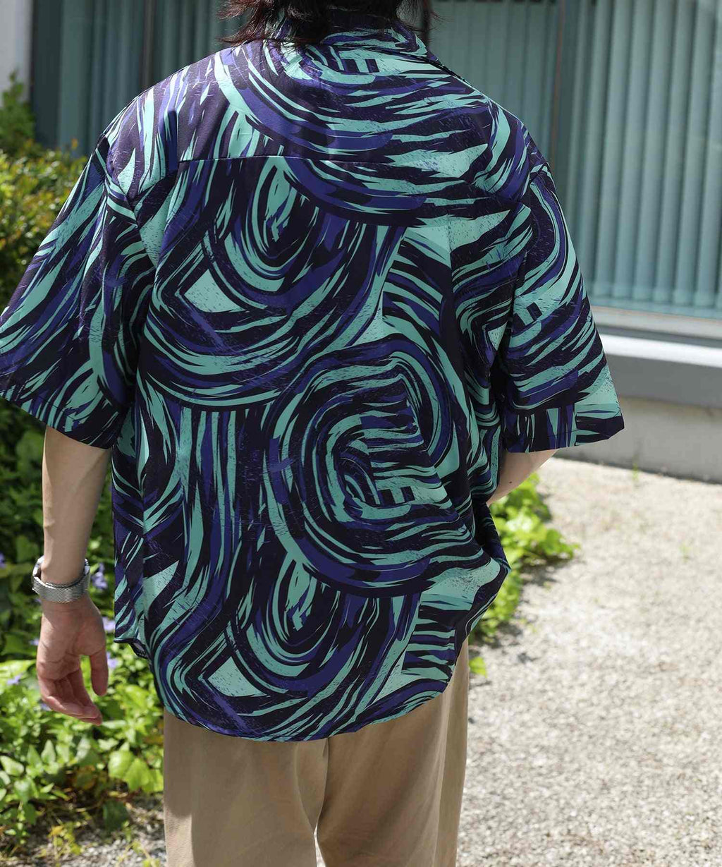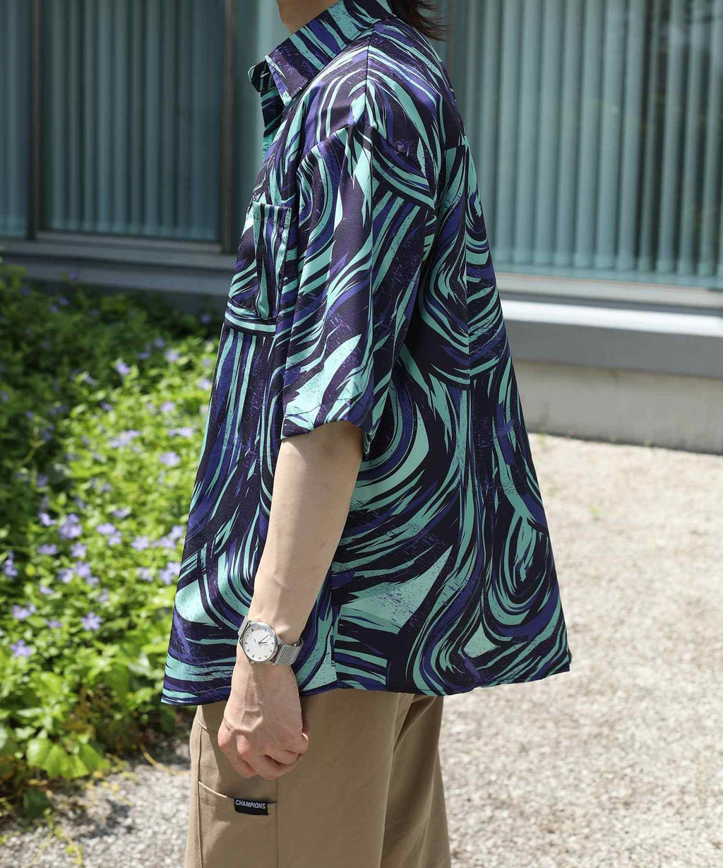 フック HOOK 【HOOK】古着風総柄ビッグアロハシャツ