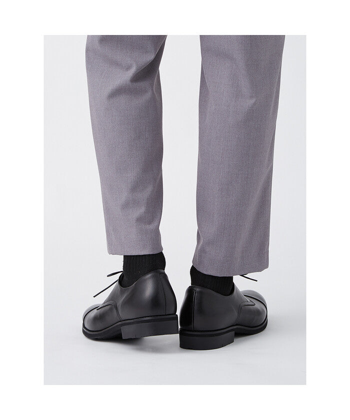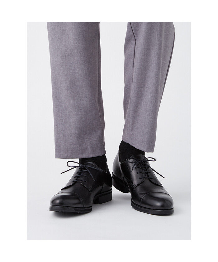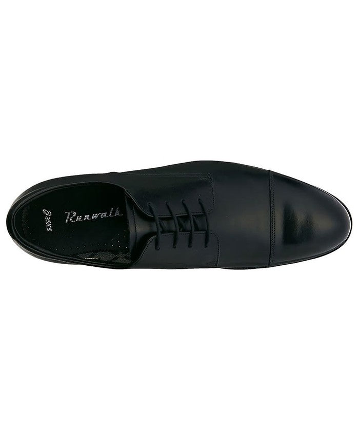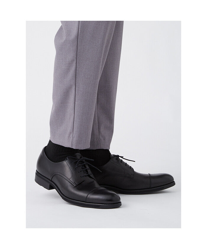雨の日にも対応する、外羽根ストレートチップデザインのスポーツテクノロジーを搭載したビジネスシューズ。防水透湿性に優れたゴアテックスファブリクスをライニングに使用しています。アッパーにはきめの細かい上質な国産ステアレザーを採用。中敷にはスポーツシューズにも使われているオーソライトを使用。足の形状に沿い、やわらかな履き心地でクッション性に優れています。ミッドソールにはクッション性と反発性を併せもつSPEVAを採用し、かかと部に衝撃緩衝機能GELを搭載。ソールの中足部に配置した樹脂パーツにより、歩行時の足のねじれを軽減します。アウターソールのかかと部には耐摩耗性に優れたAHARラバーを採用。2Eラウンドラスト。雨の日も履きこなせる、長期の出張などにも使い勝手のよい一足です。