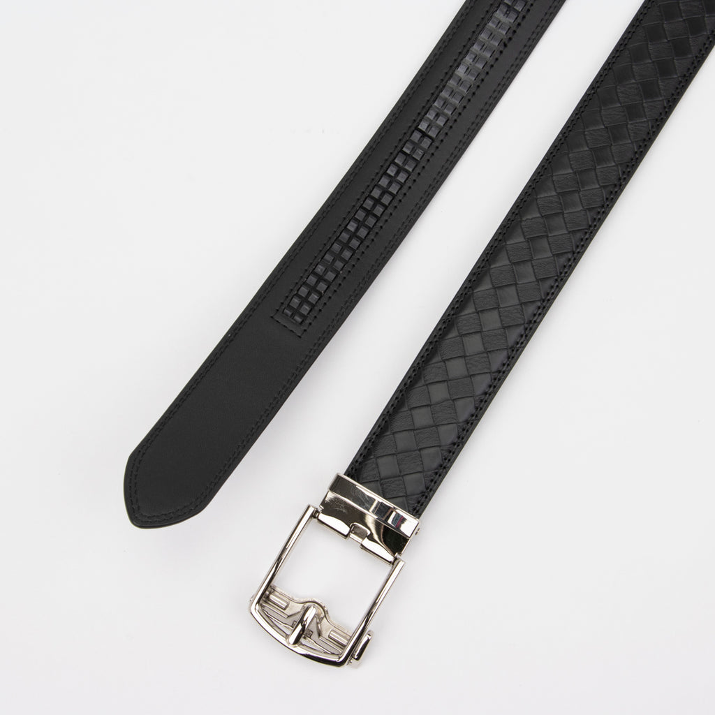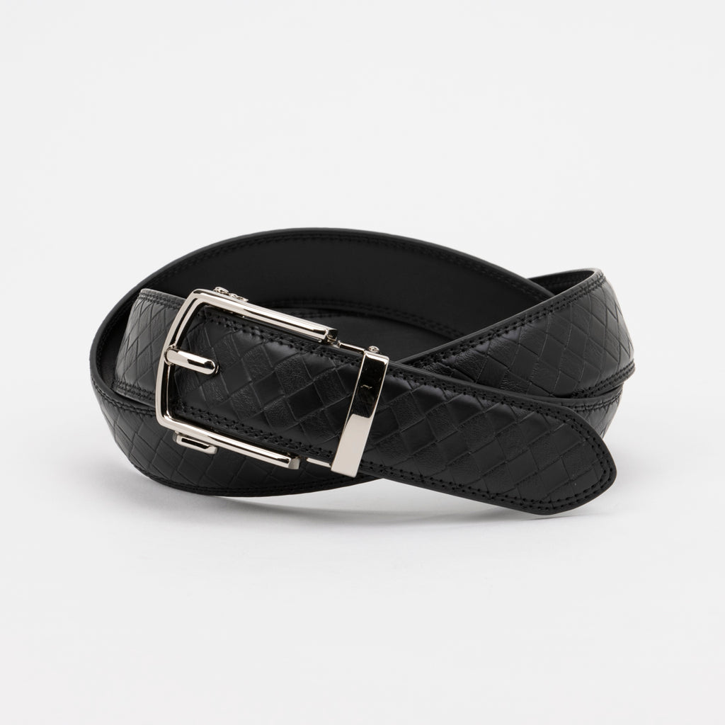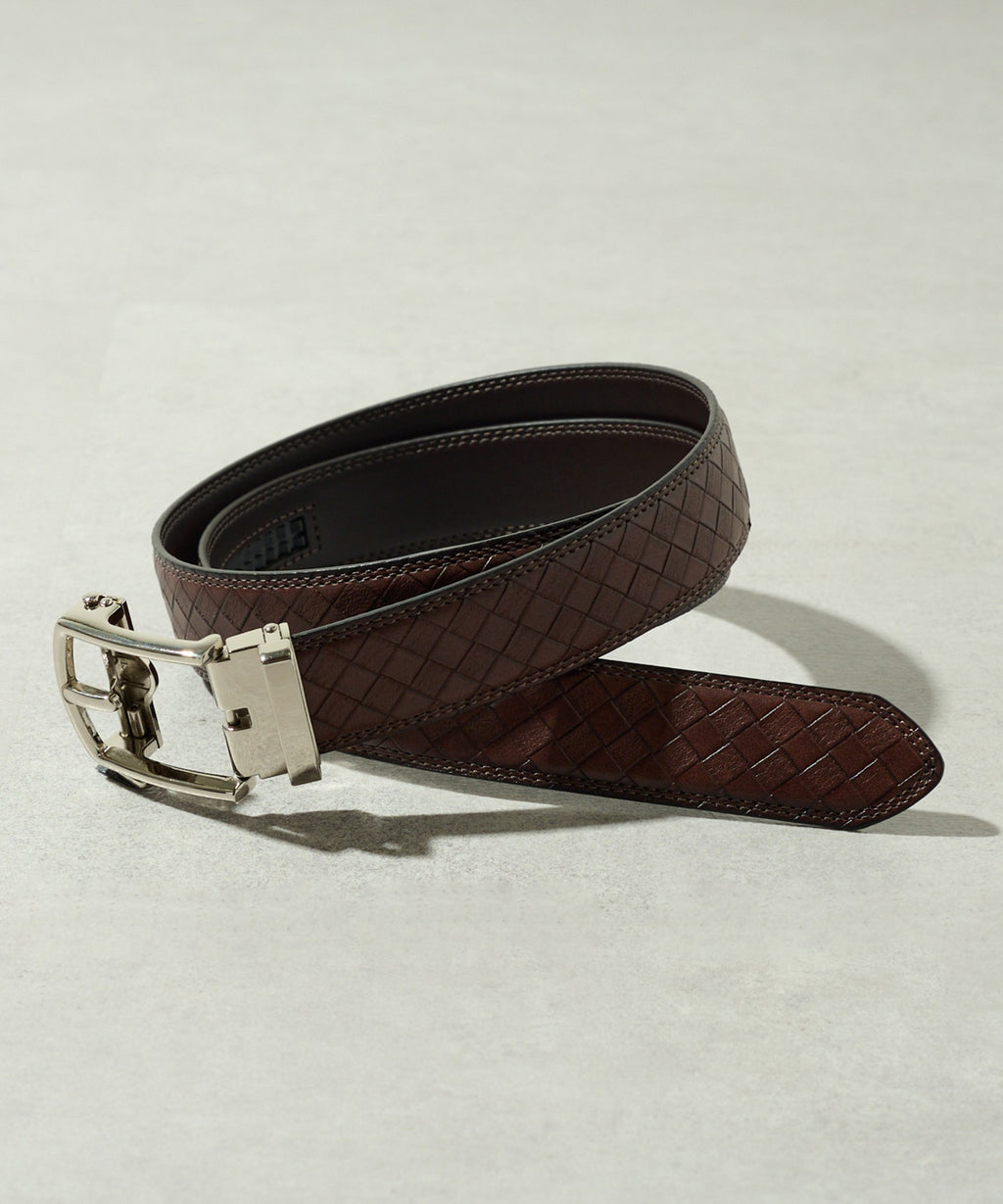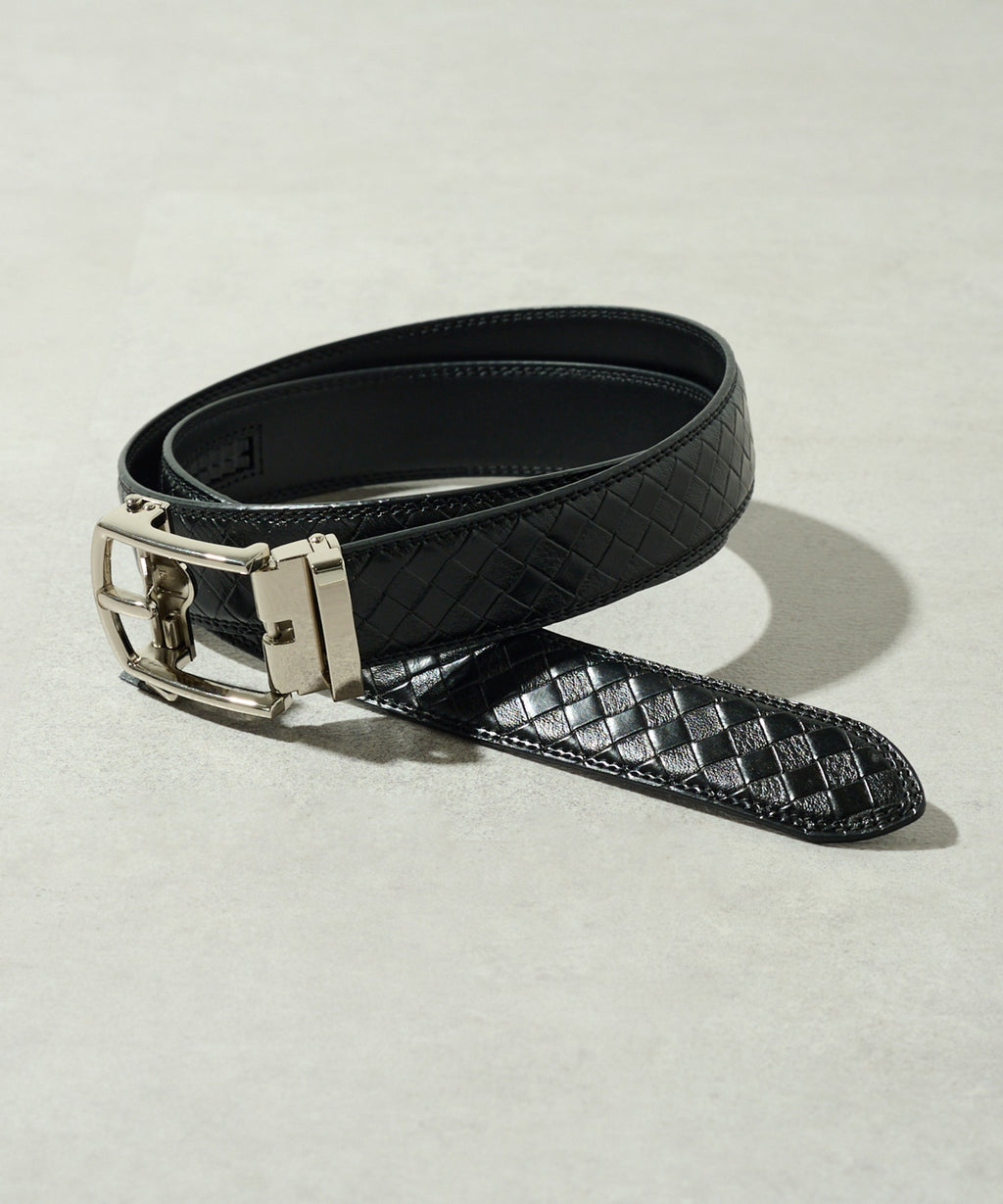 クロコ調の生地が編み込まれた合成皮革のベルト。