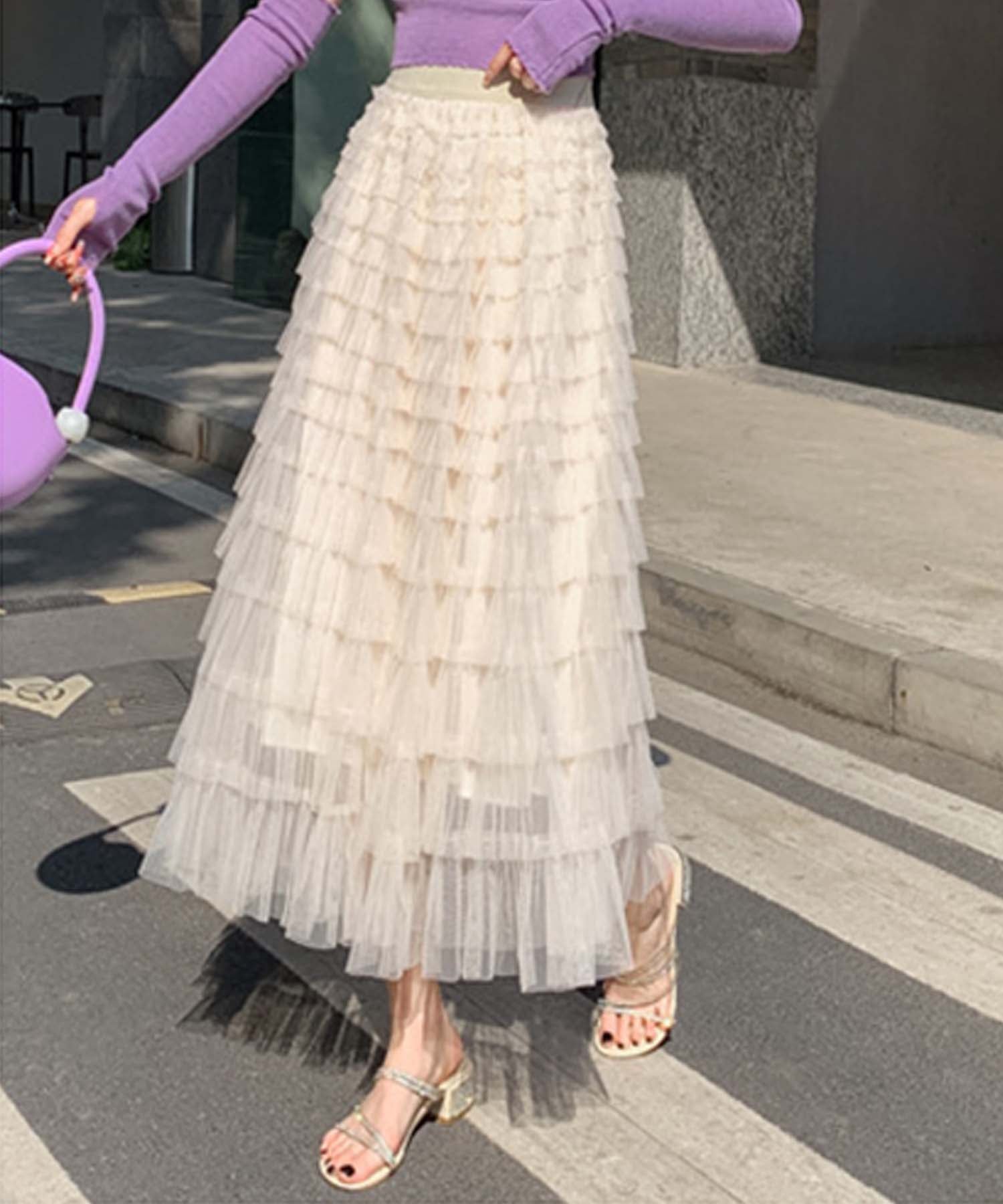ジャスミングランディフローラム Jasmine Grandiflorum Jasmine/フリルチュールティアードロングスカート