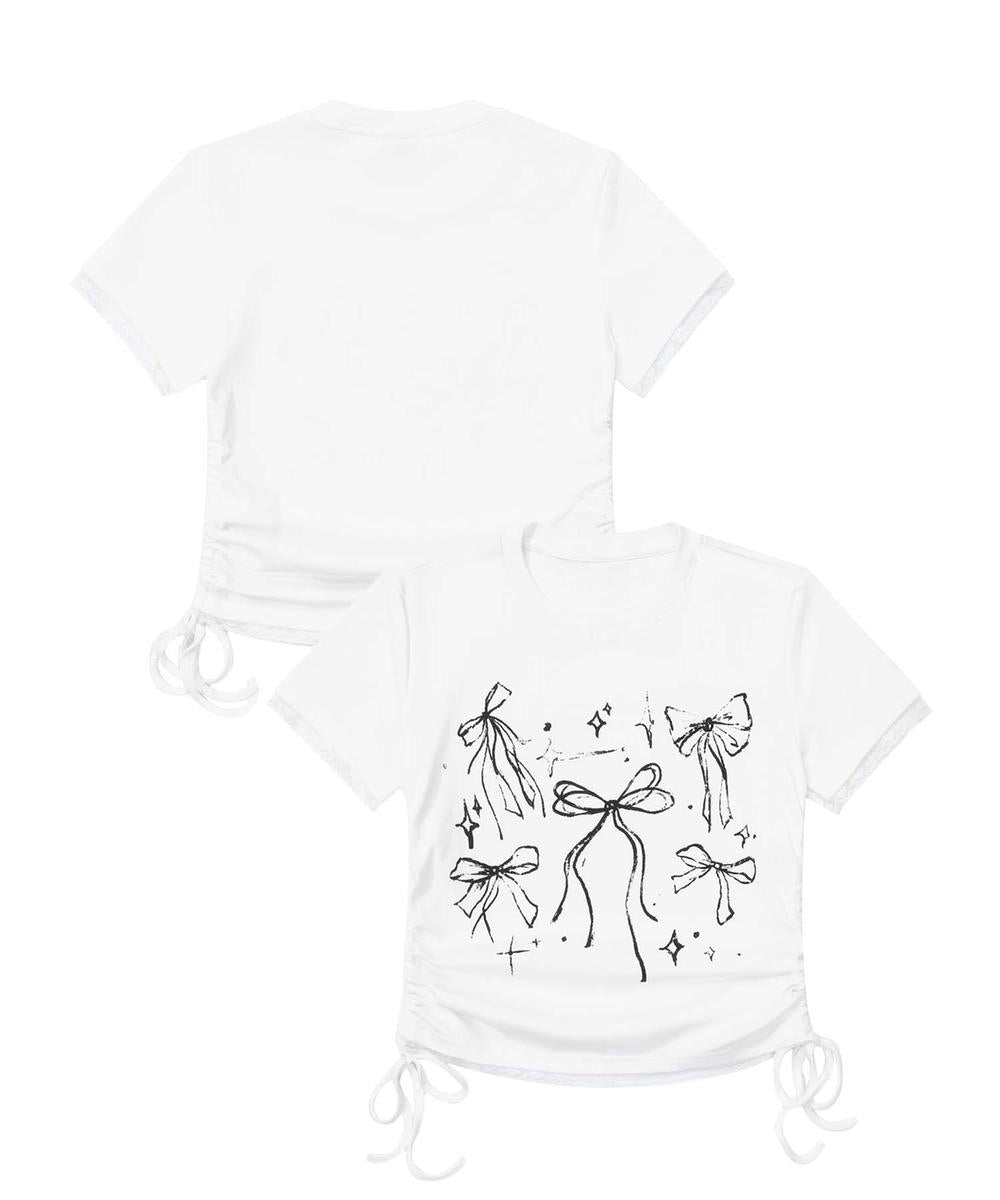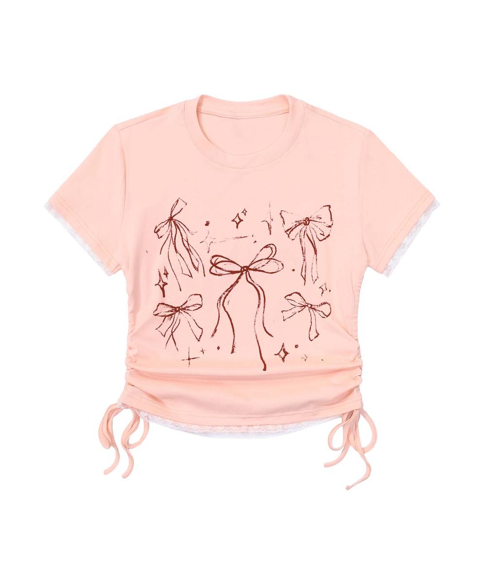 フロントにリボンモチーフのプリントが施されたキュートな半袖Tシャツ