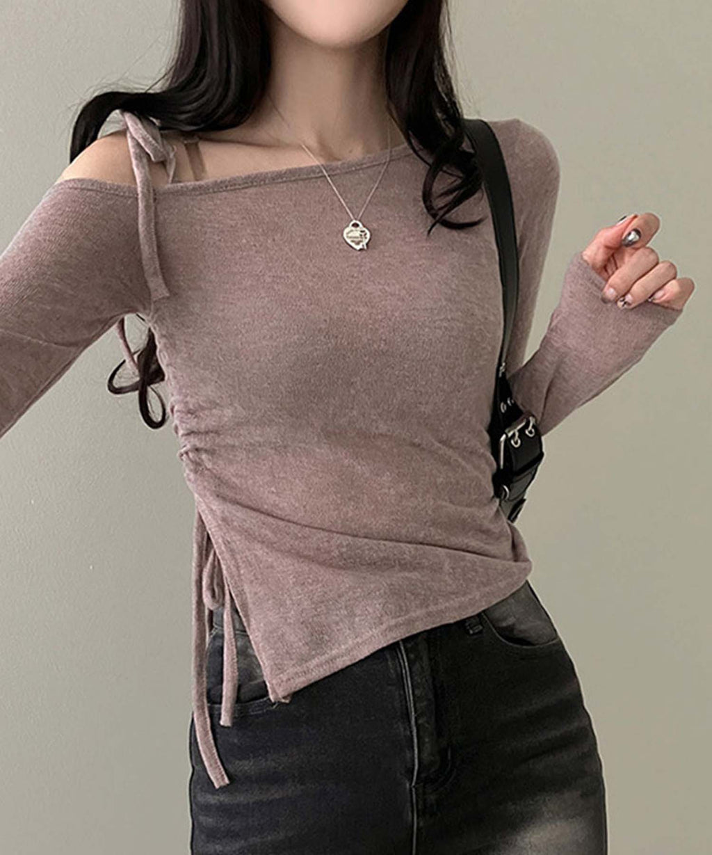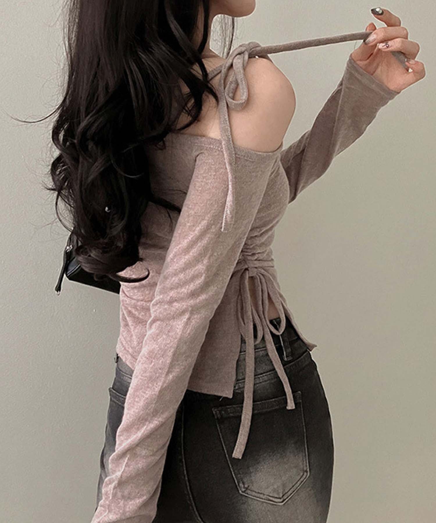 ジャスミングランディフローラム Jasmine Grandiflorum 【Jasmine】肩見せシャーリングリボンショートトップス