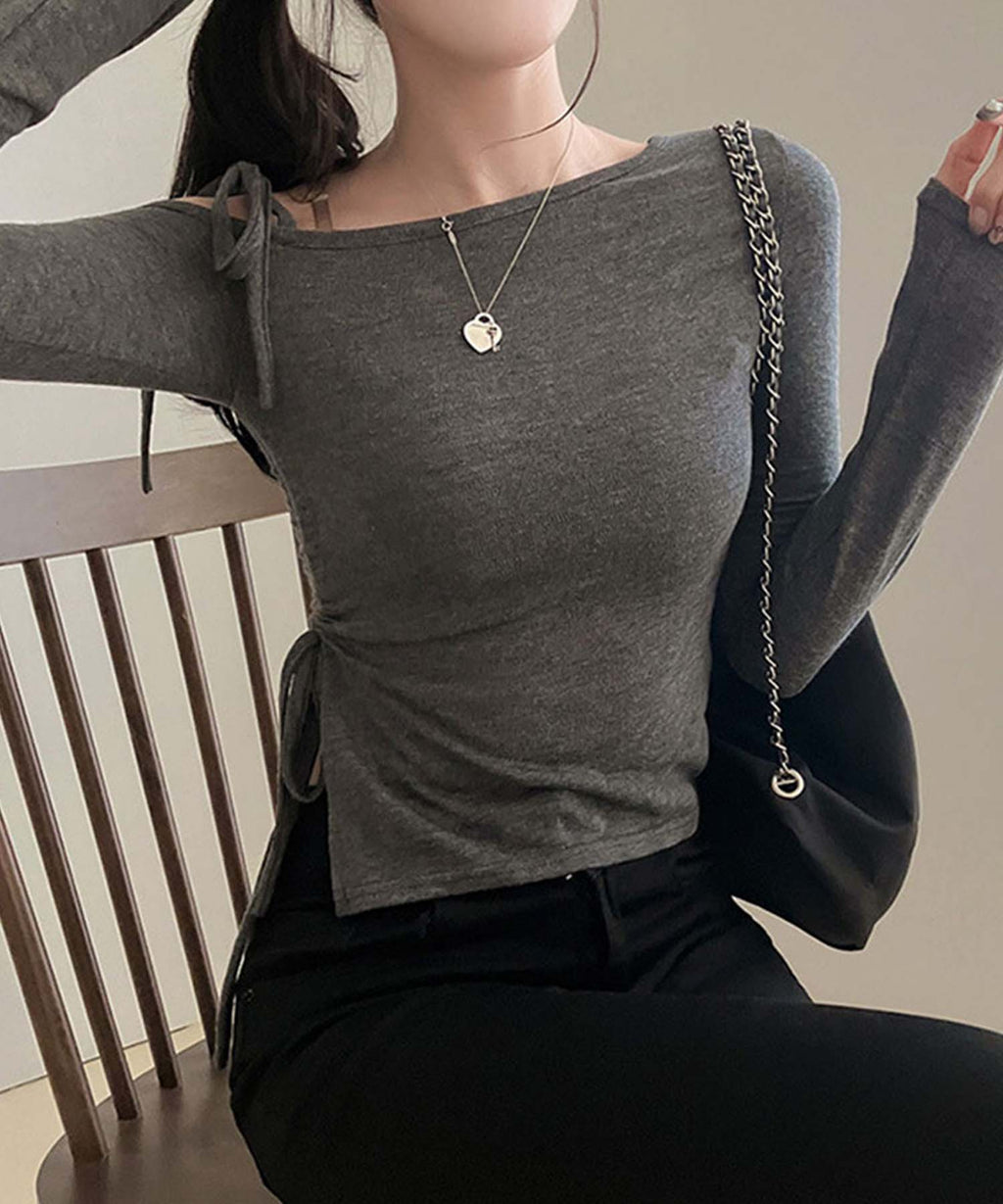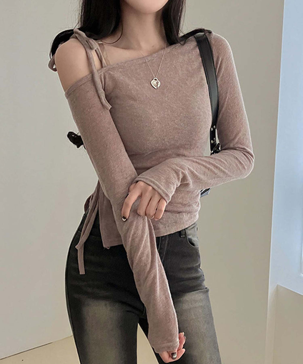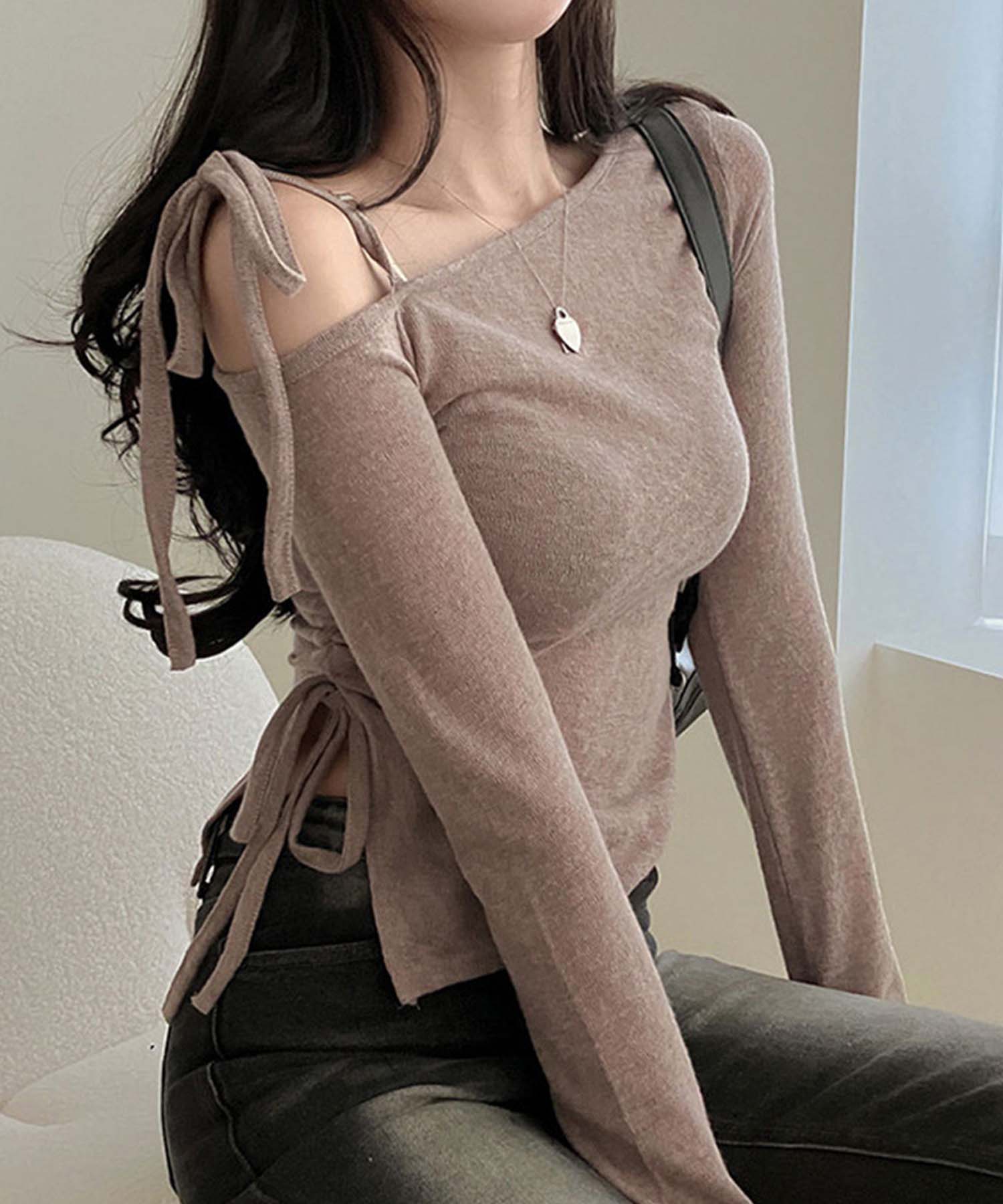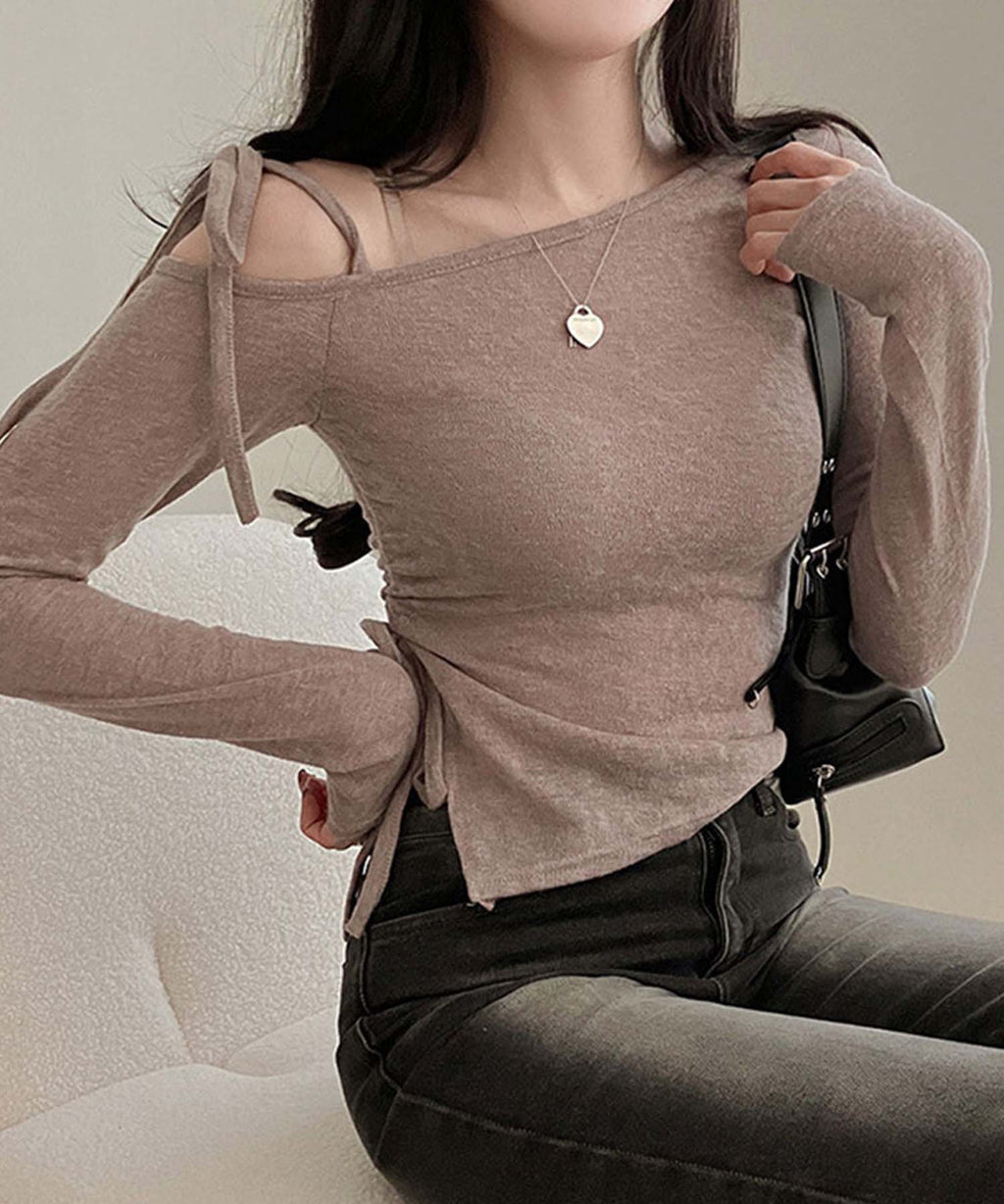 ・肩見せデザイン:ヘルシーな肌見せが、程よい抜け感を演出。