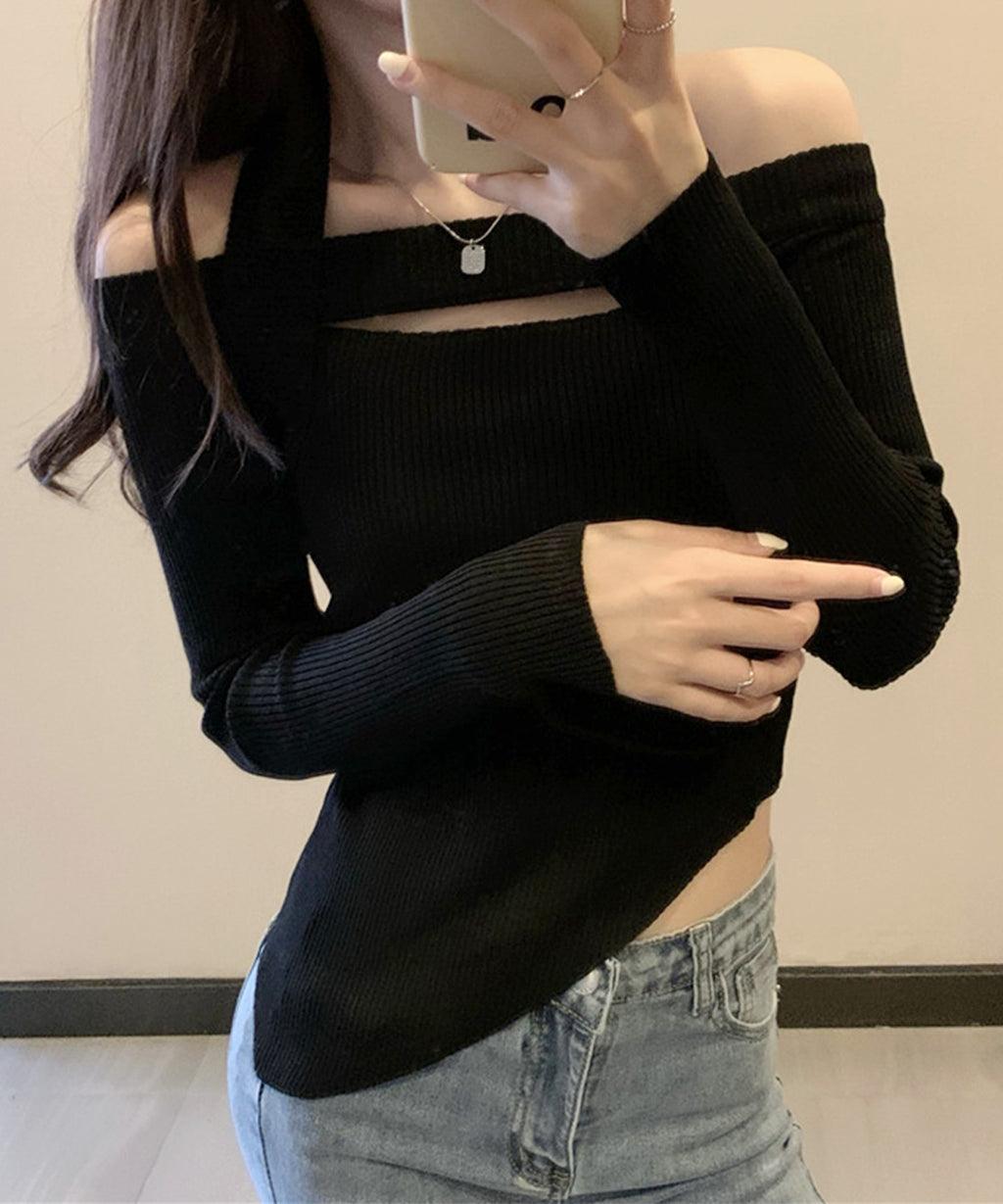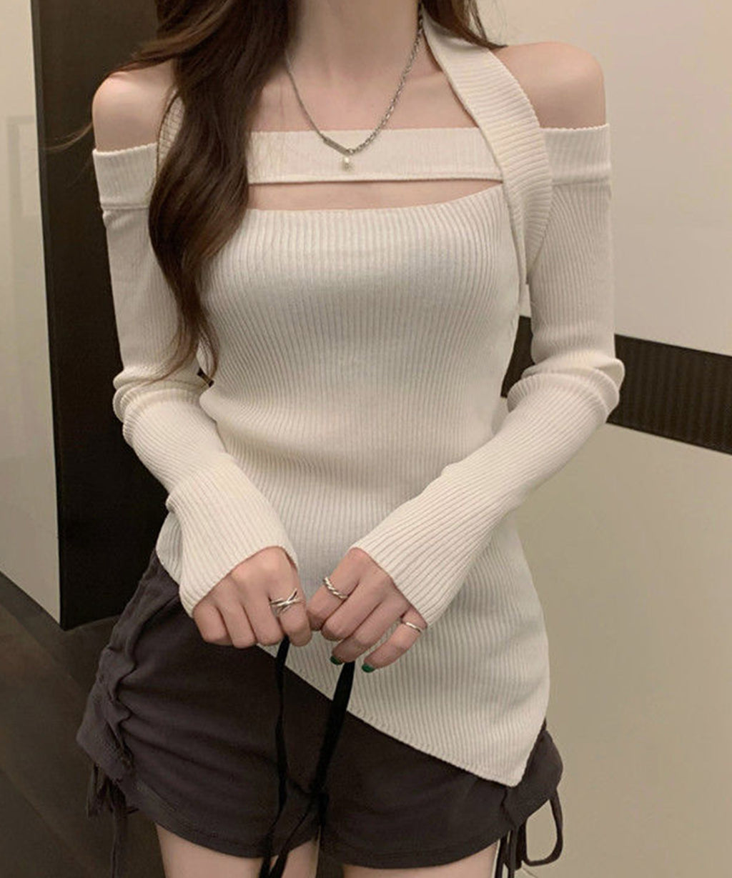 ジャスミングランディフローラム Jasmine Grandiflorum 【Jasmine】オフショル胸カットアウトニットトップス