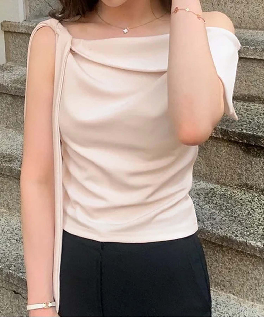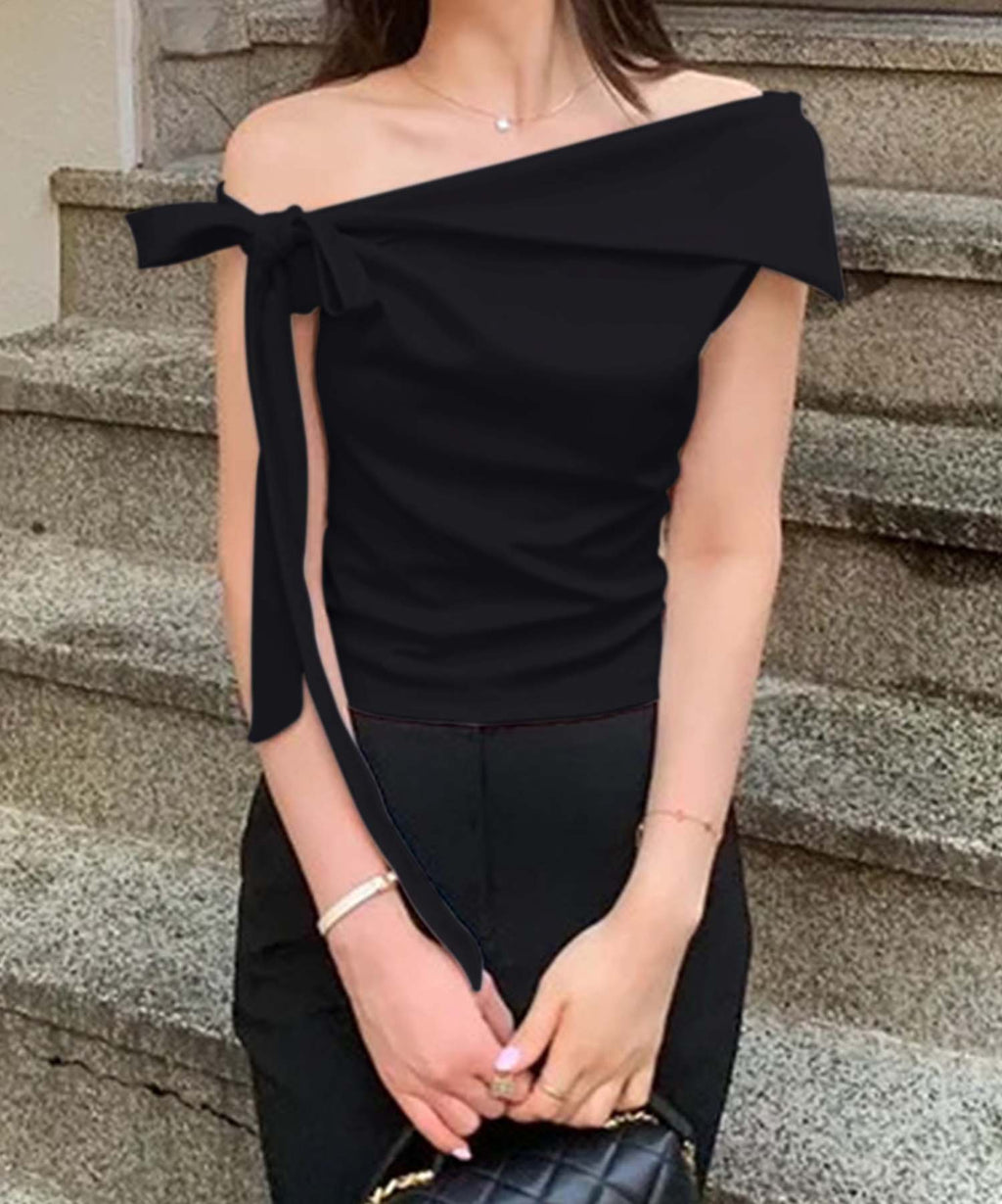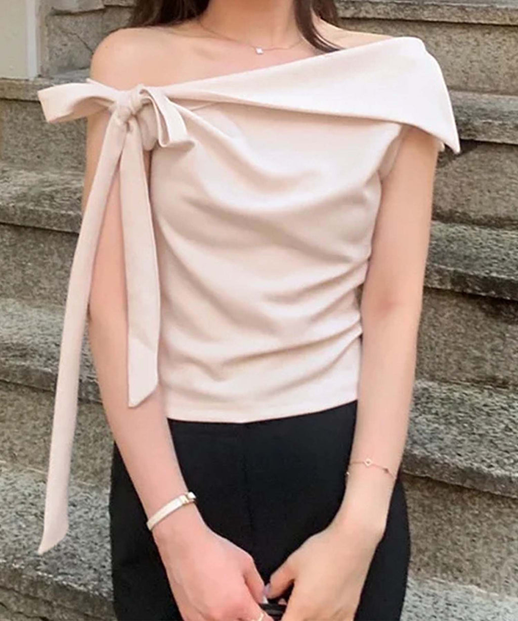 ジャスミングランディフローラム Jasmine Grandiflorum 【Jasmine】オフショルアシンメトリーリボントップス