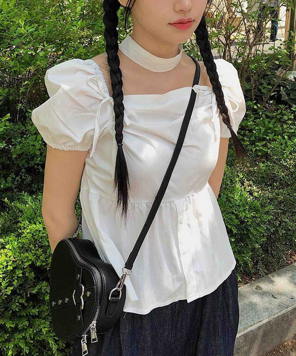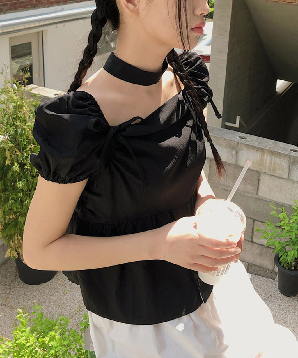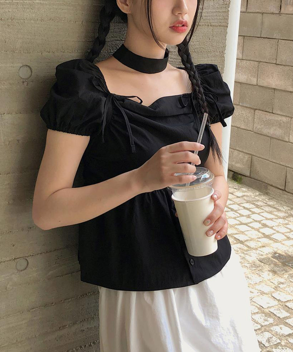 簡単におしゃれなスタイリングが完成するパフブラウスチョーカーの2点セット。