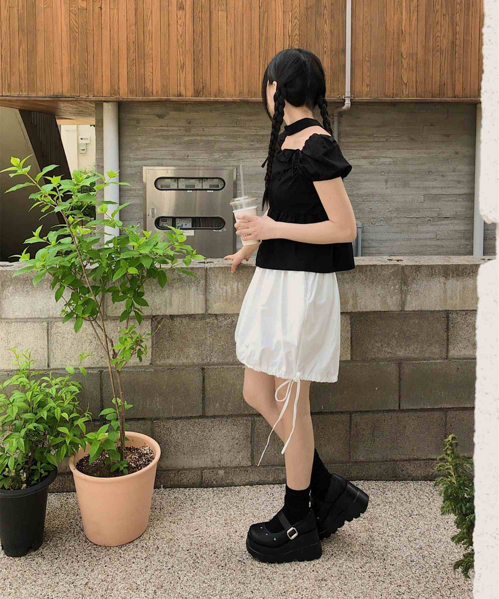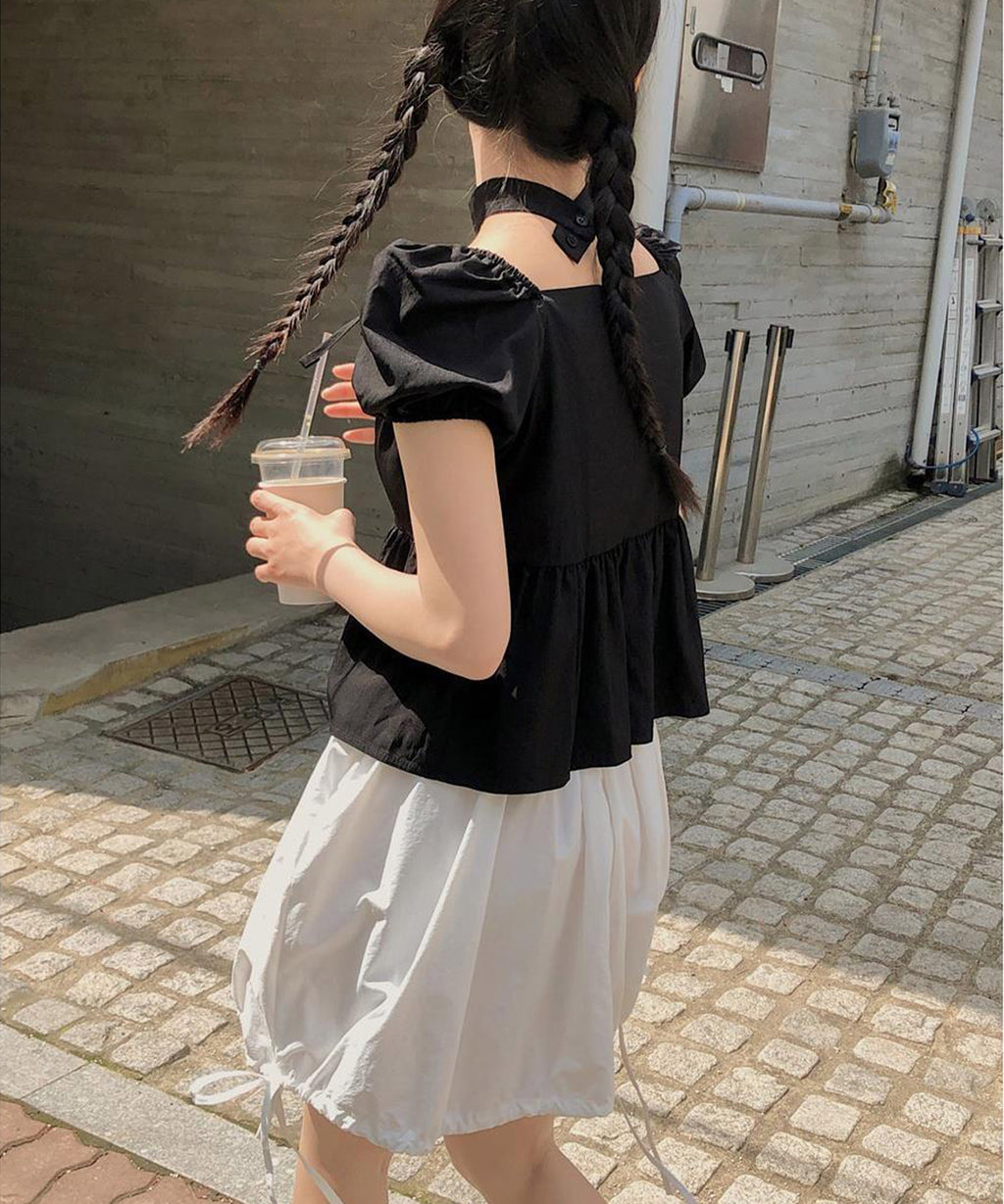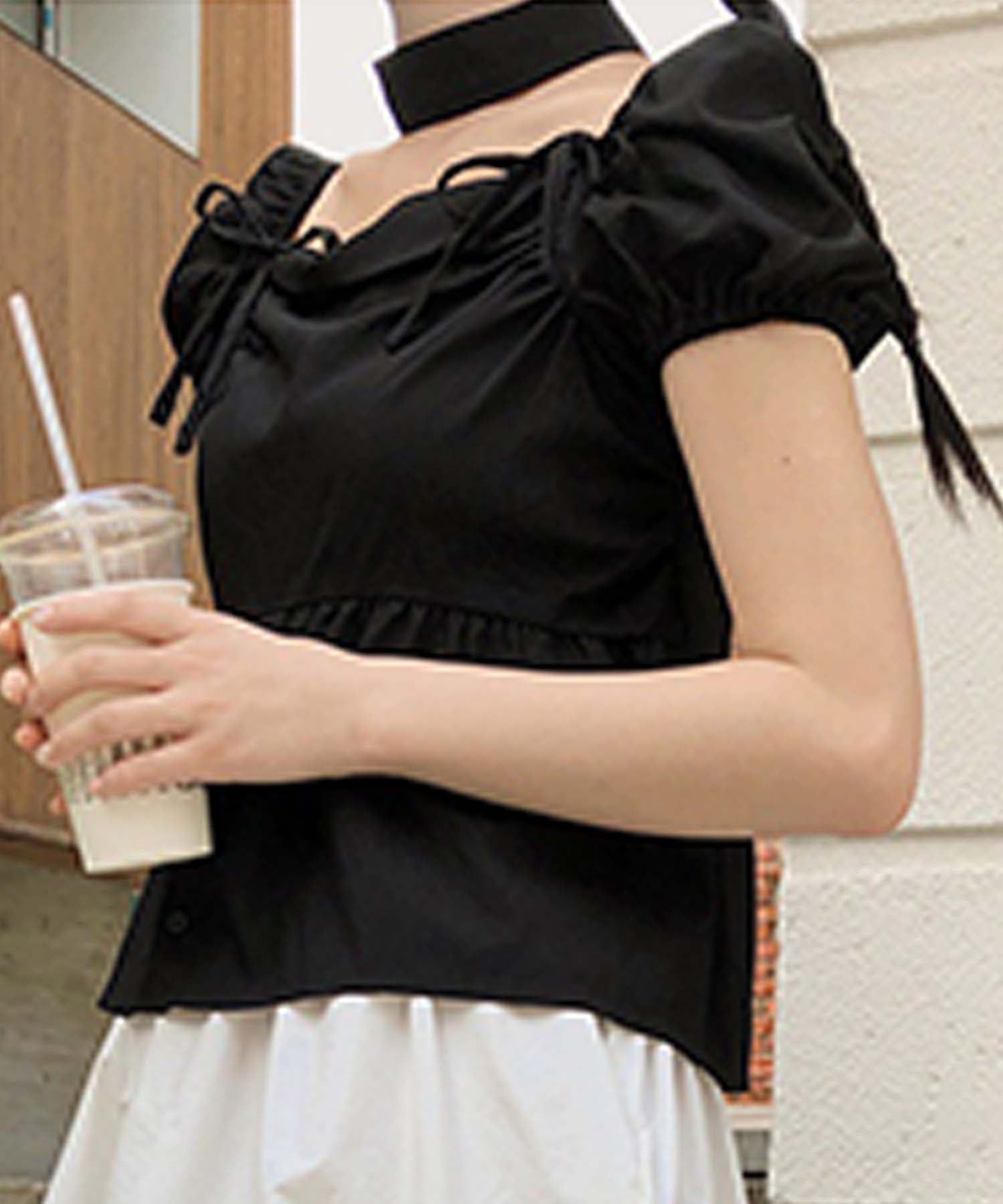 簡単におしゃれなスタイリングが完成するパフブラウスチョーカーの2点セット。