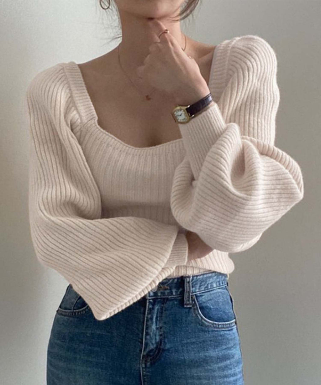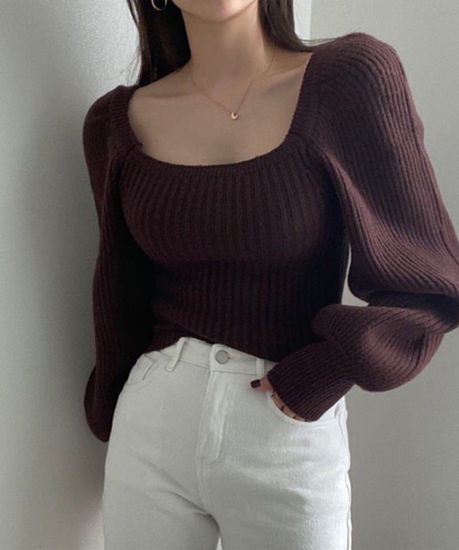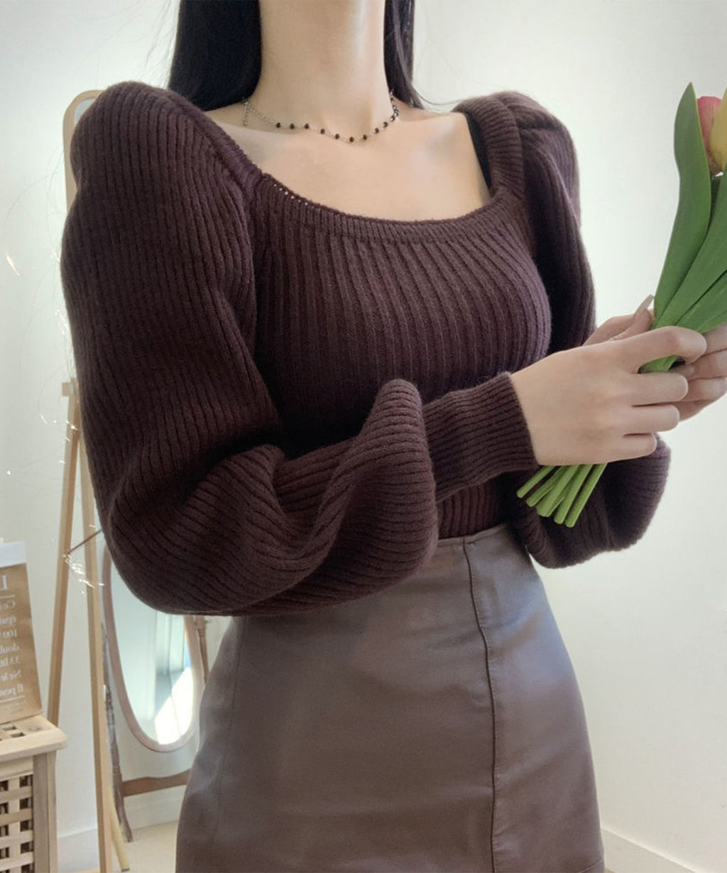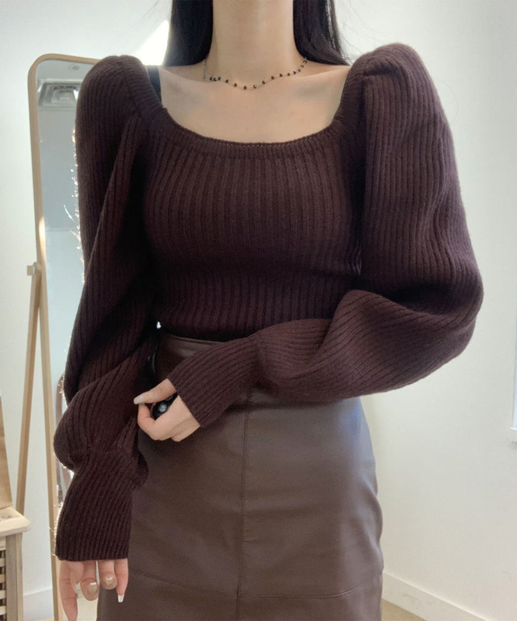 ジャスミングランディフローラム Jasmine Grandiflorum 【Jasmine】スクエアカラーニットトップス