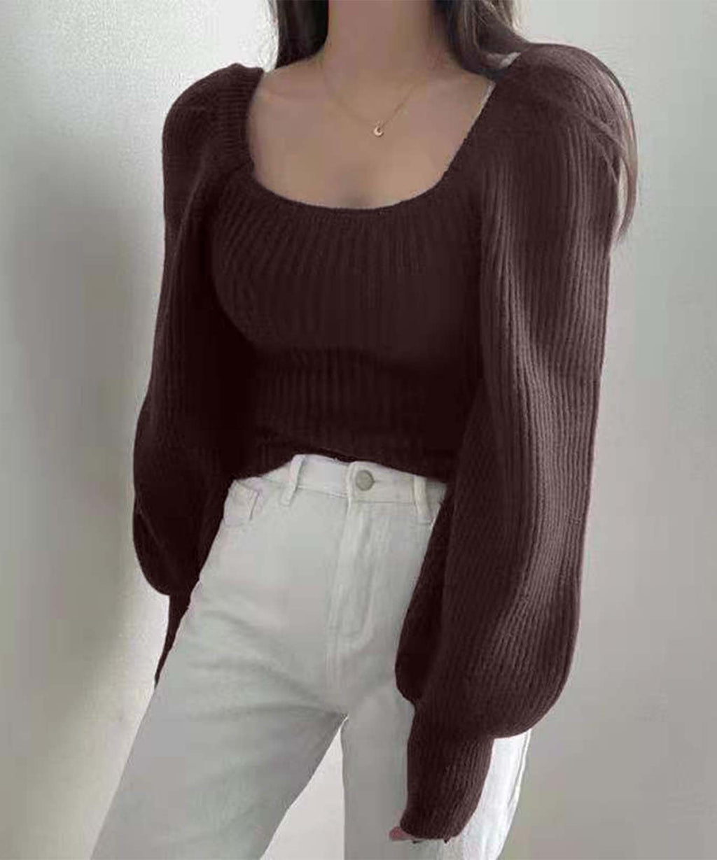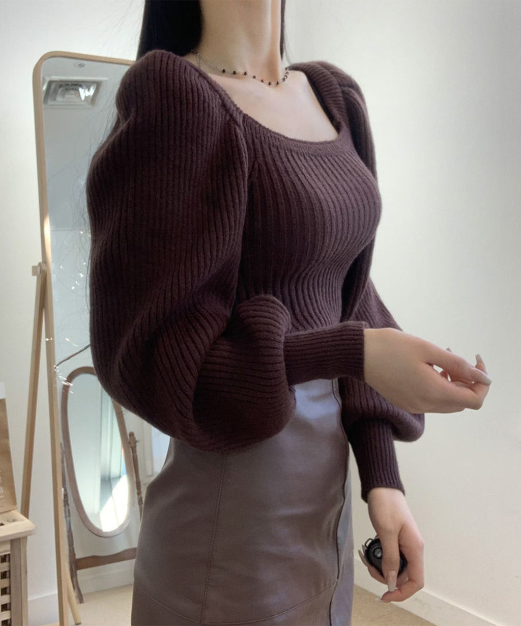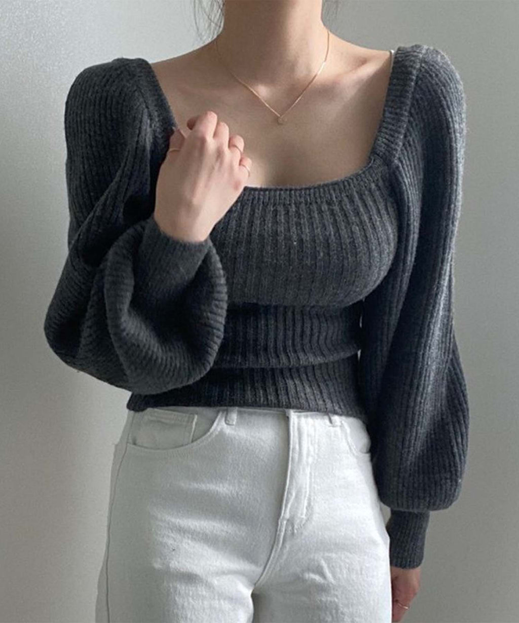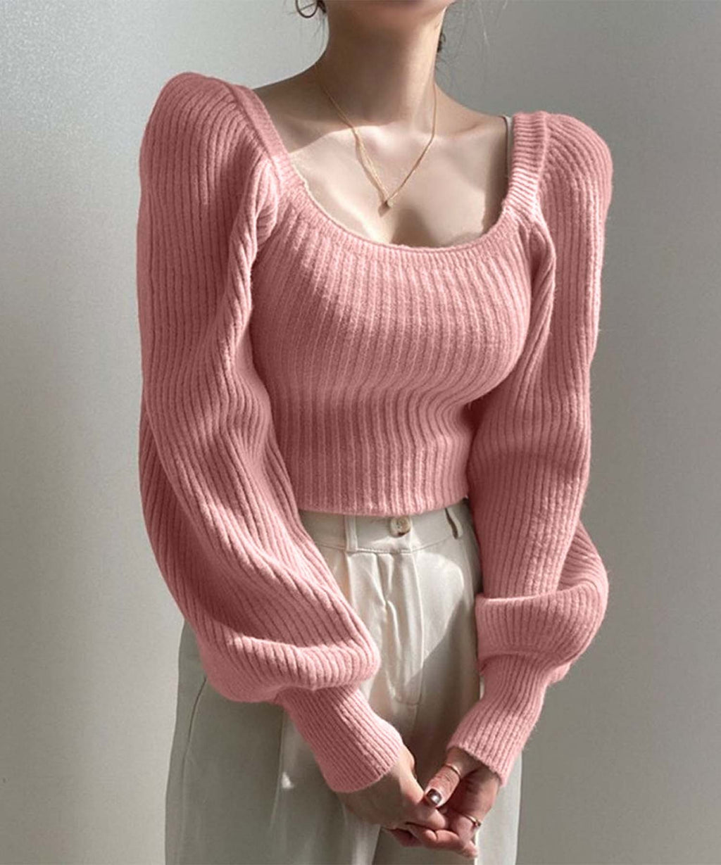 ジャスミングランディフローラム Jasmine Grandiflorum 【Jasmine】スクエアカラーニットトップス