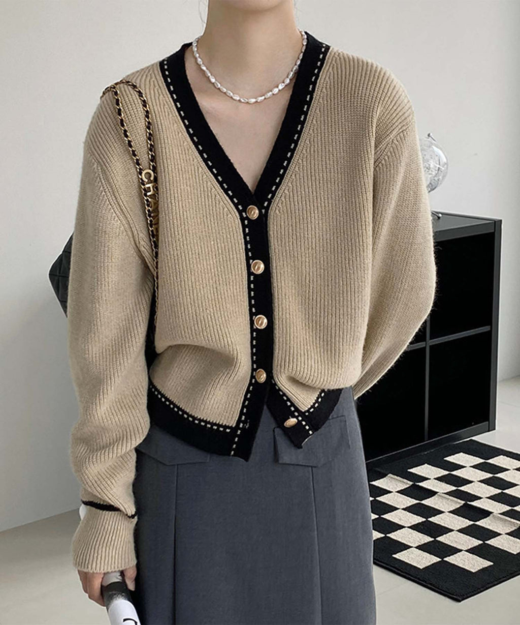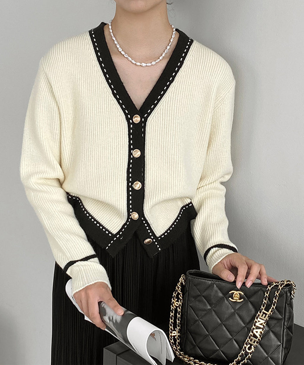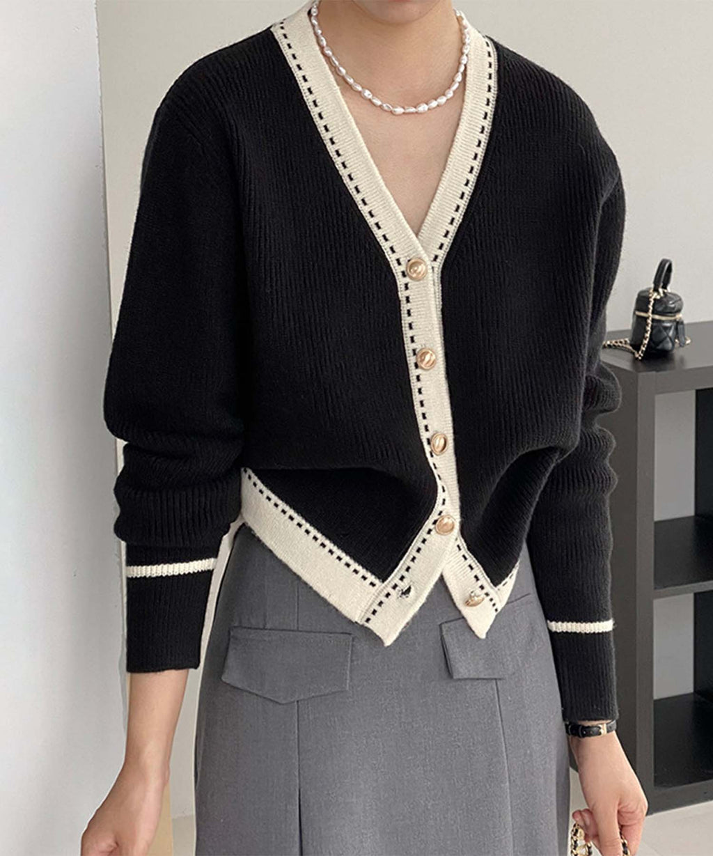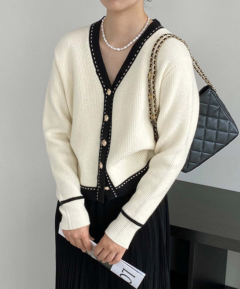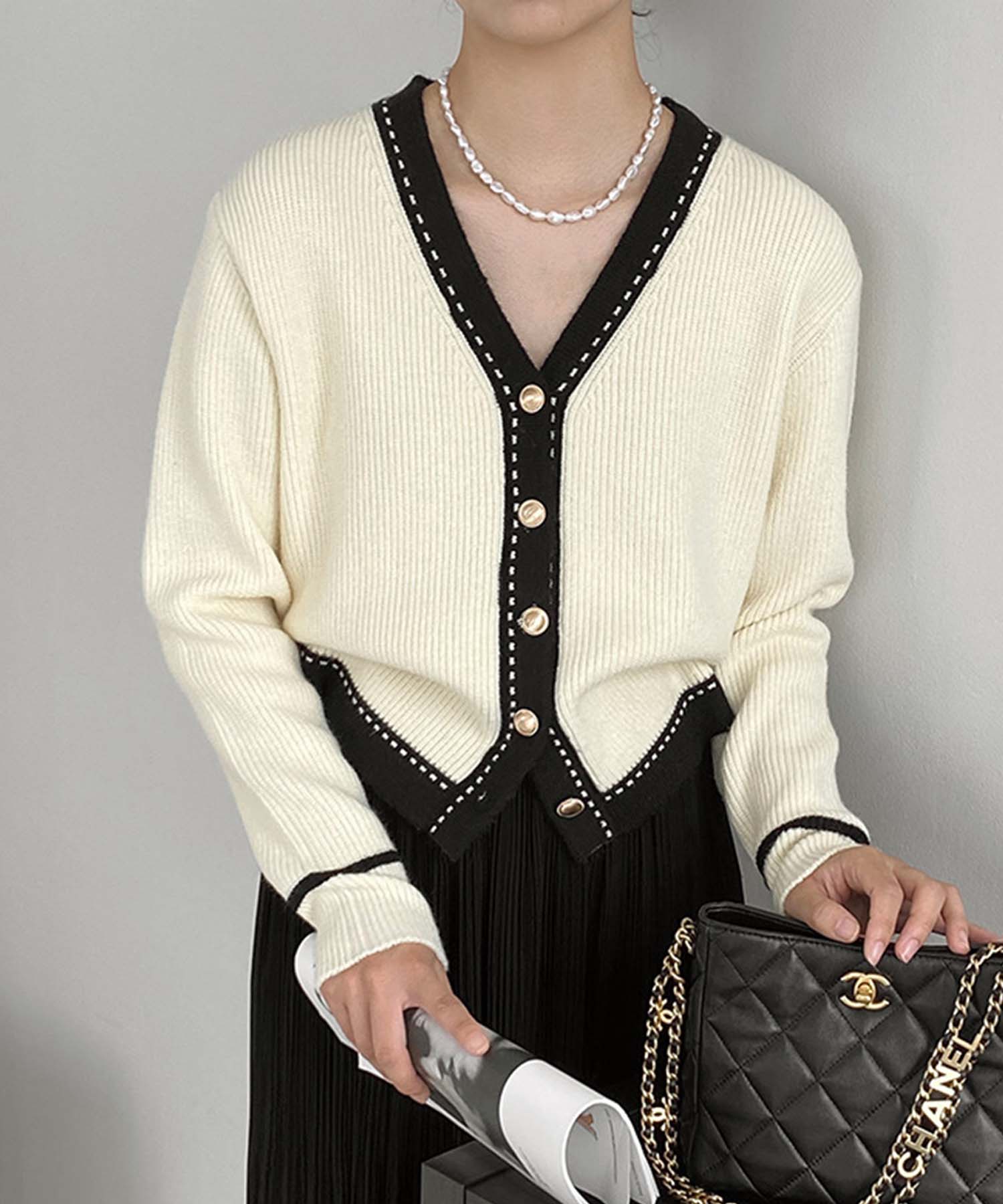 ジャスミングランディフローラム Jasmine Grandiflorum 【Jasmine】バイカラーニットカーディガン
