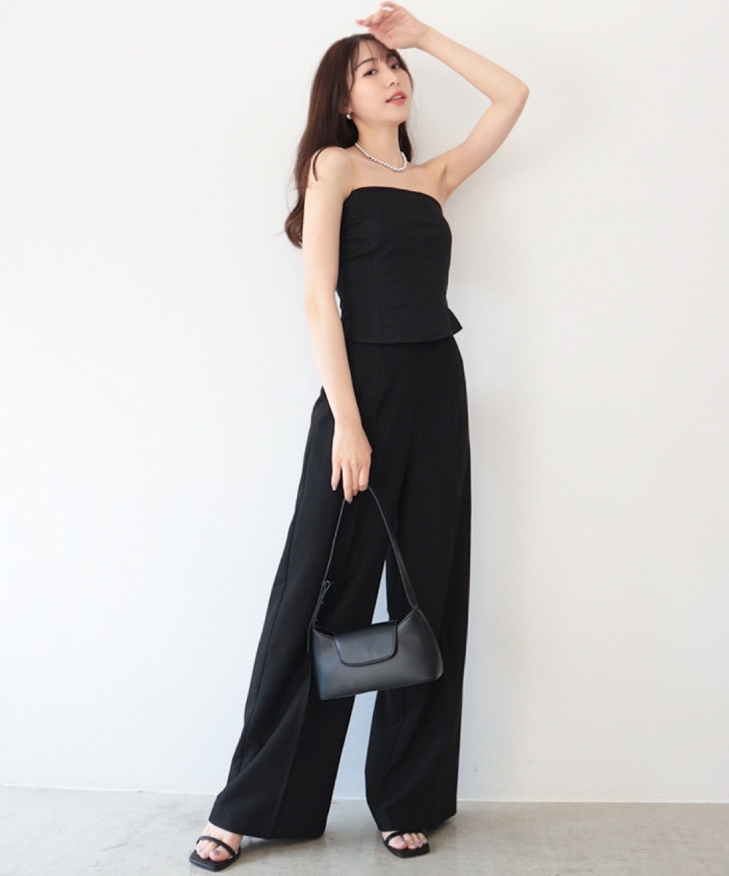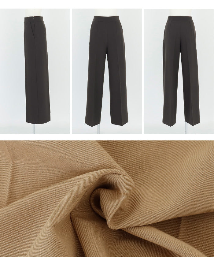 腰位置高めから裾に向かってストンと落ちるストレートシルエット。