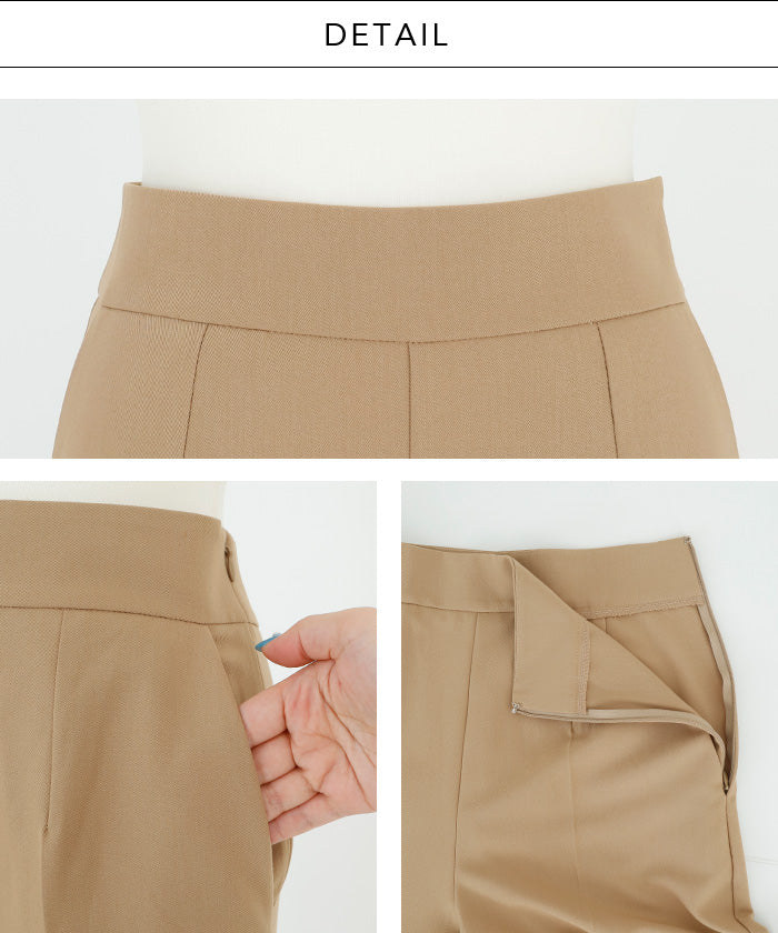 前後にダーツを施し、目立ちにくいサイドファスナーで腰回りをスッキリとさせ、AMBIENTらしい品のある佇まいに仕上げました。