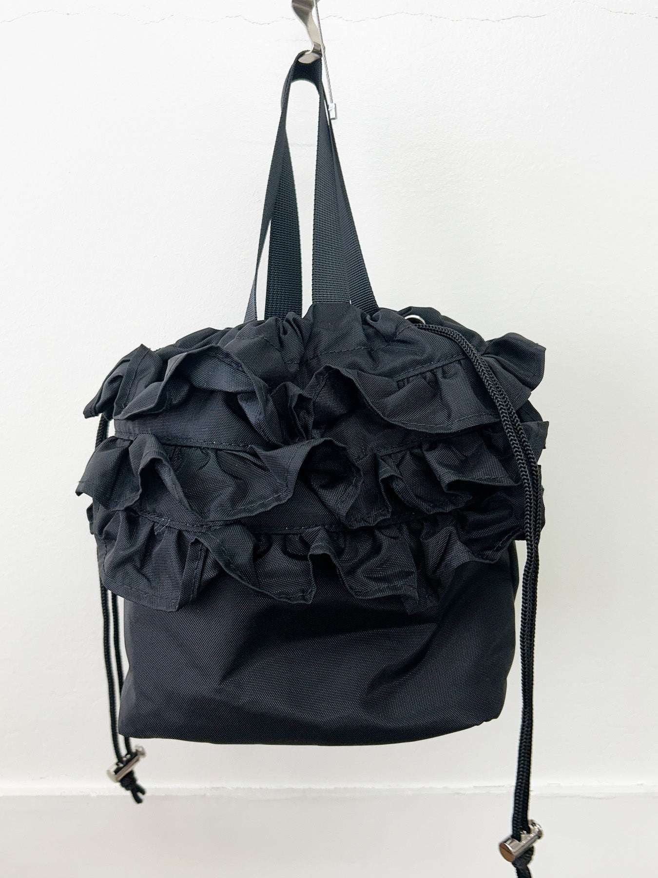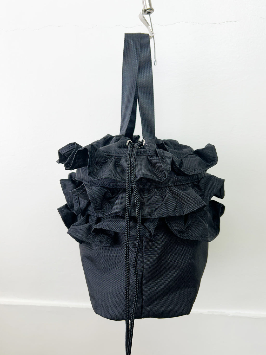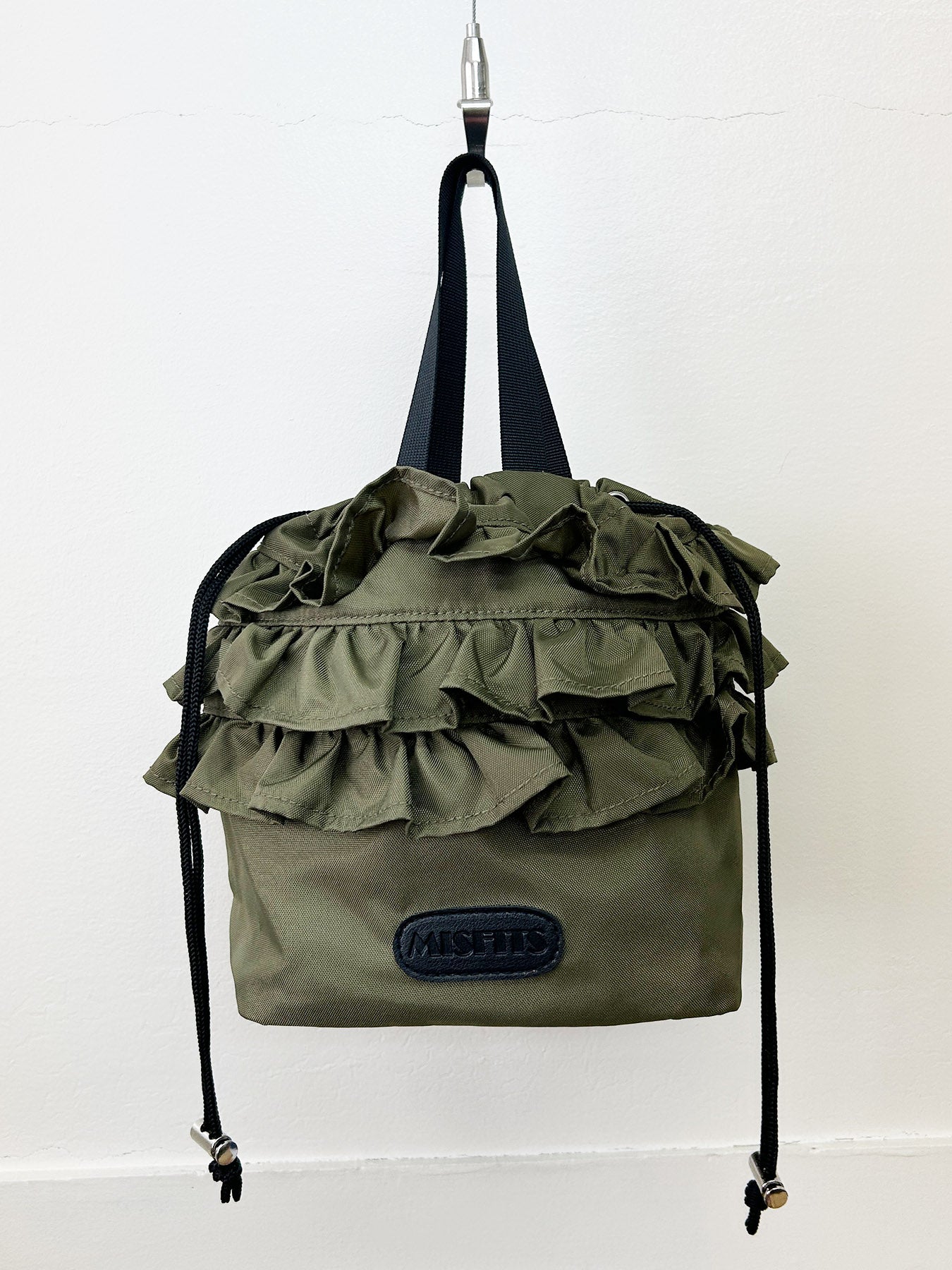 口元の3段フリルがかわいい巾着です。