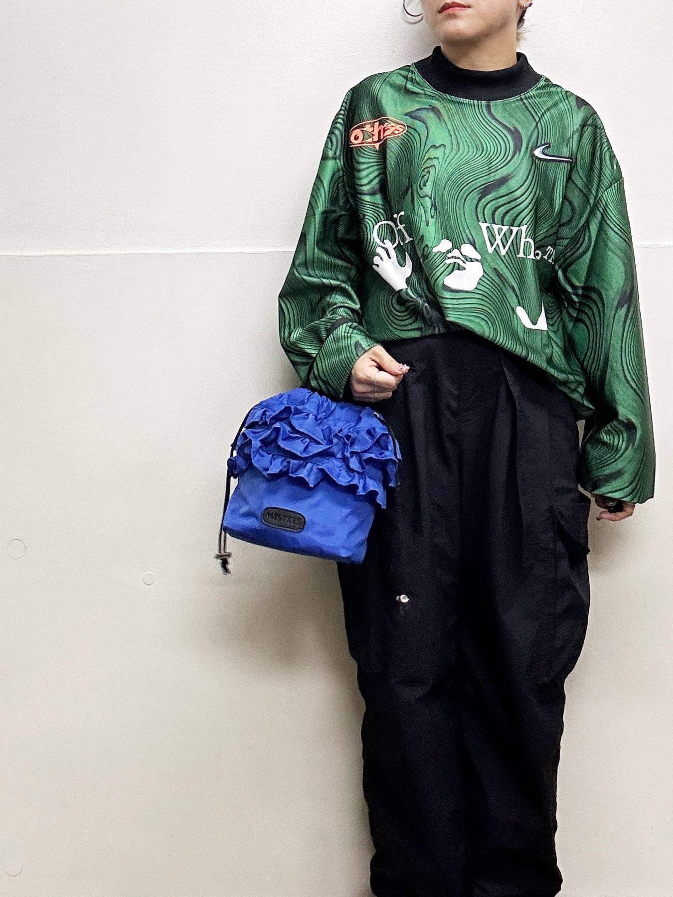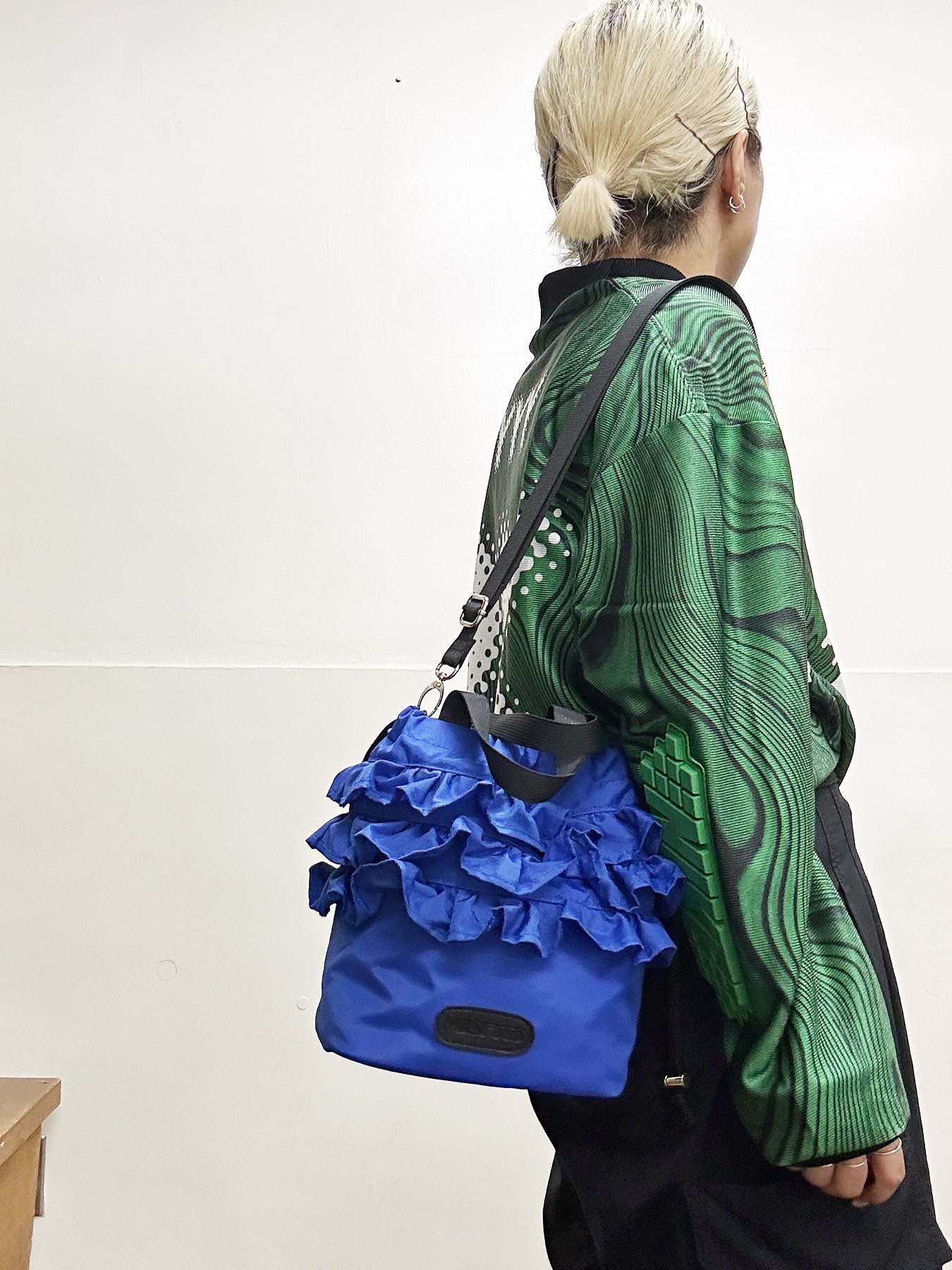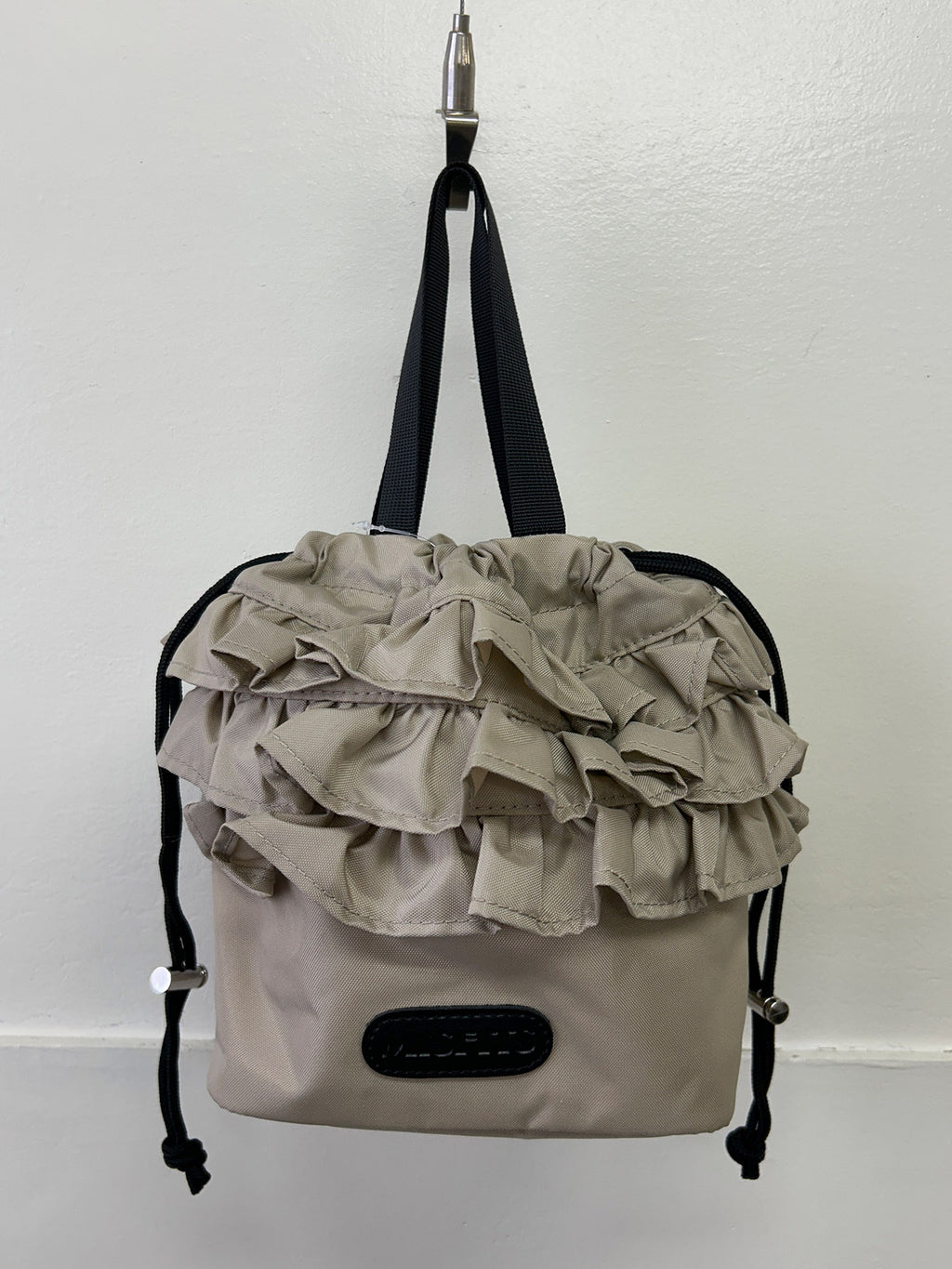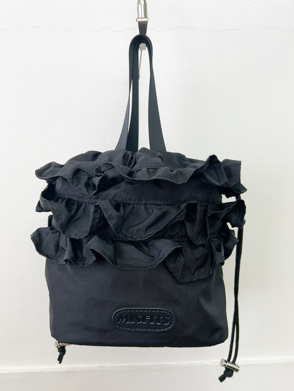 口元の3段フリルがかわいい巾着です。