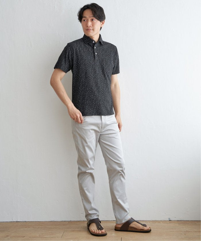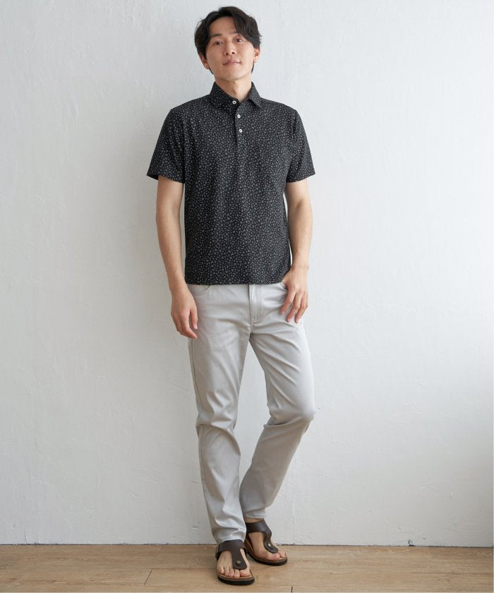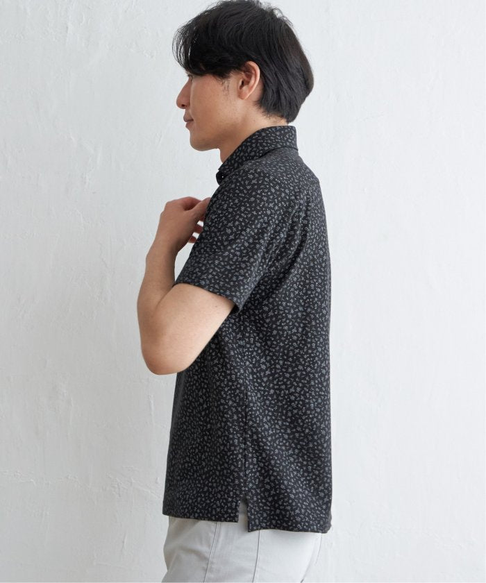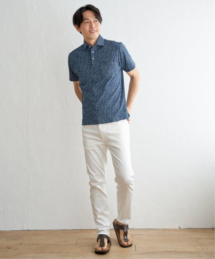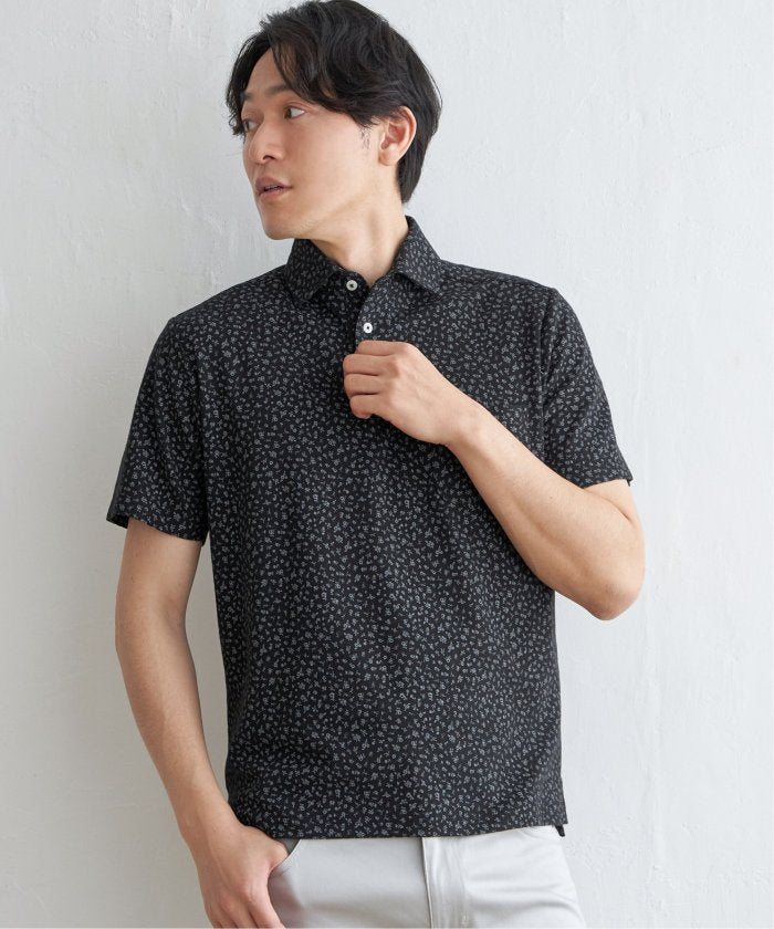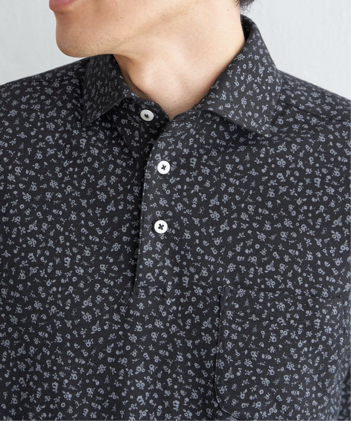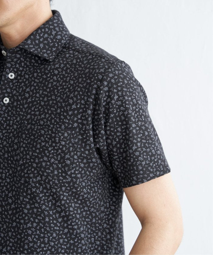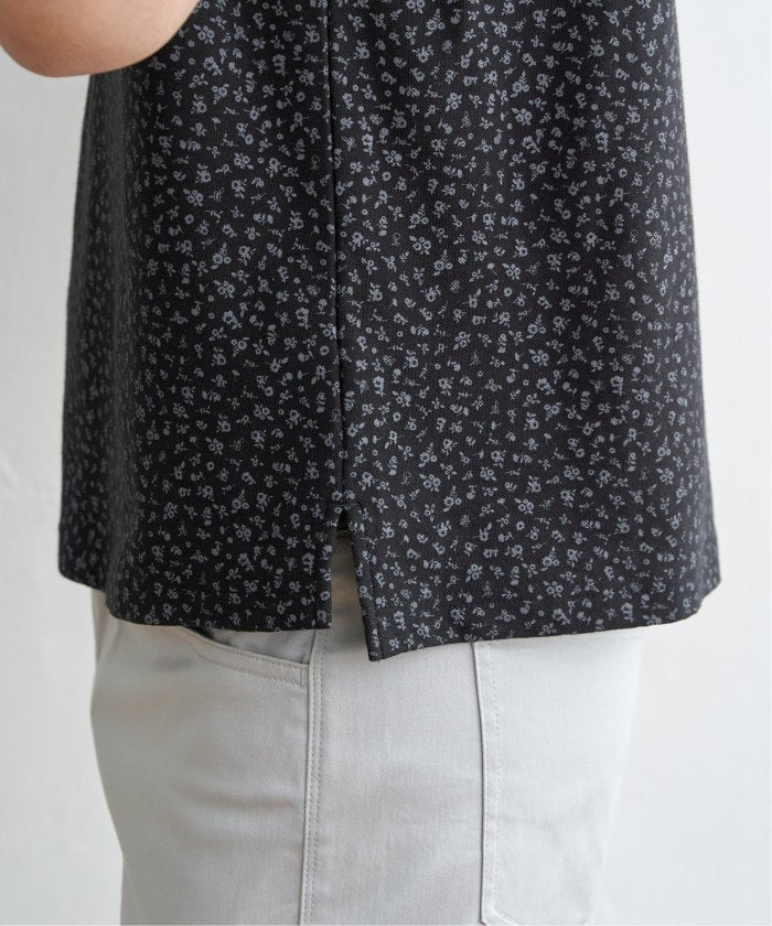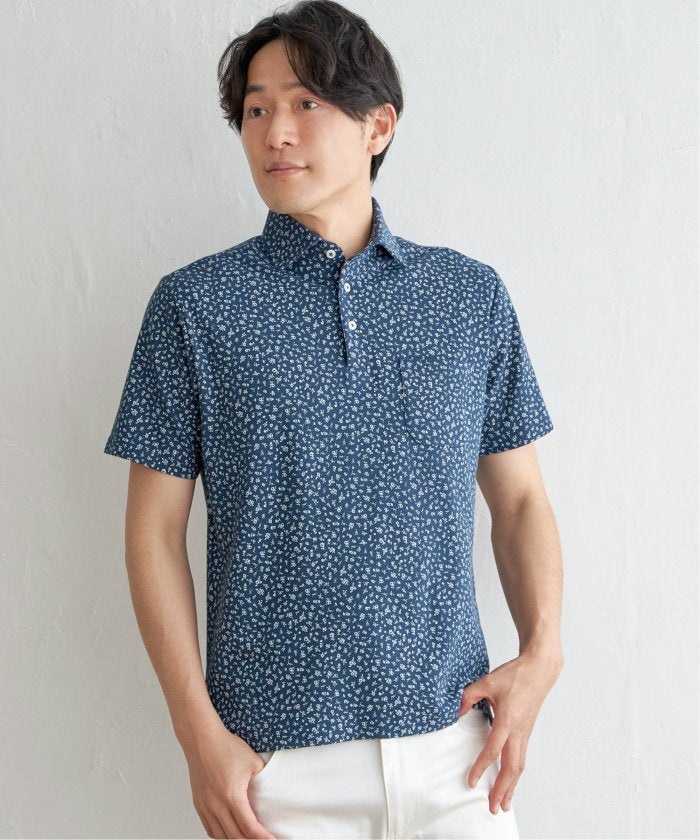 イッカラウンジ ikka LOUNGE 小花柄プリント鹿の子ポロシャツ