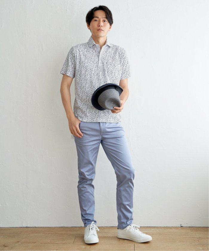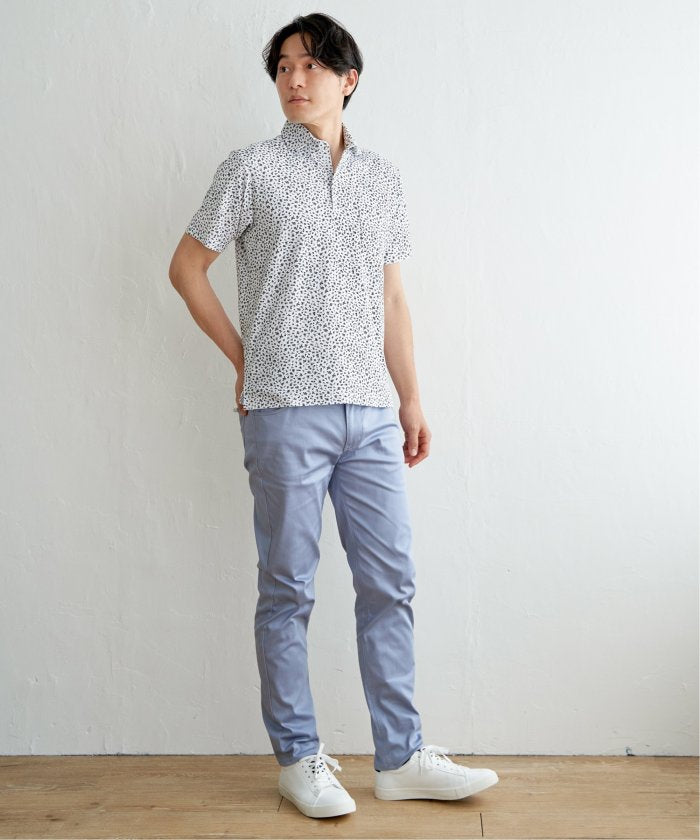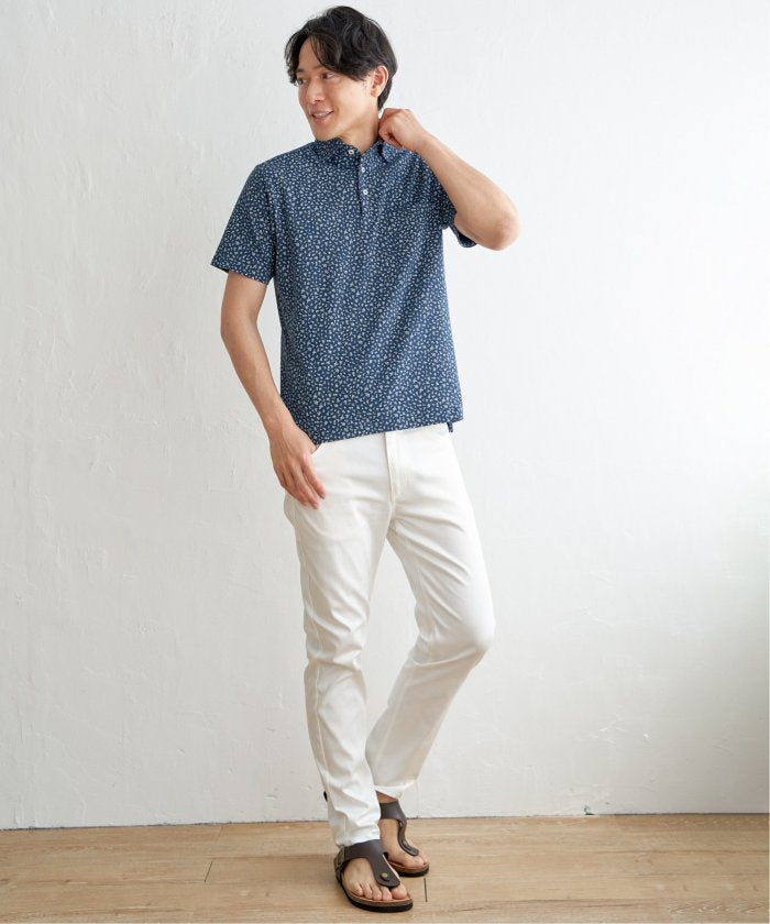 大人の遊び心を感じさせる小花柄のポロシャツ。
