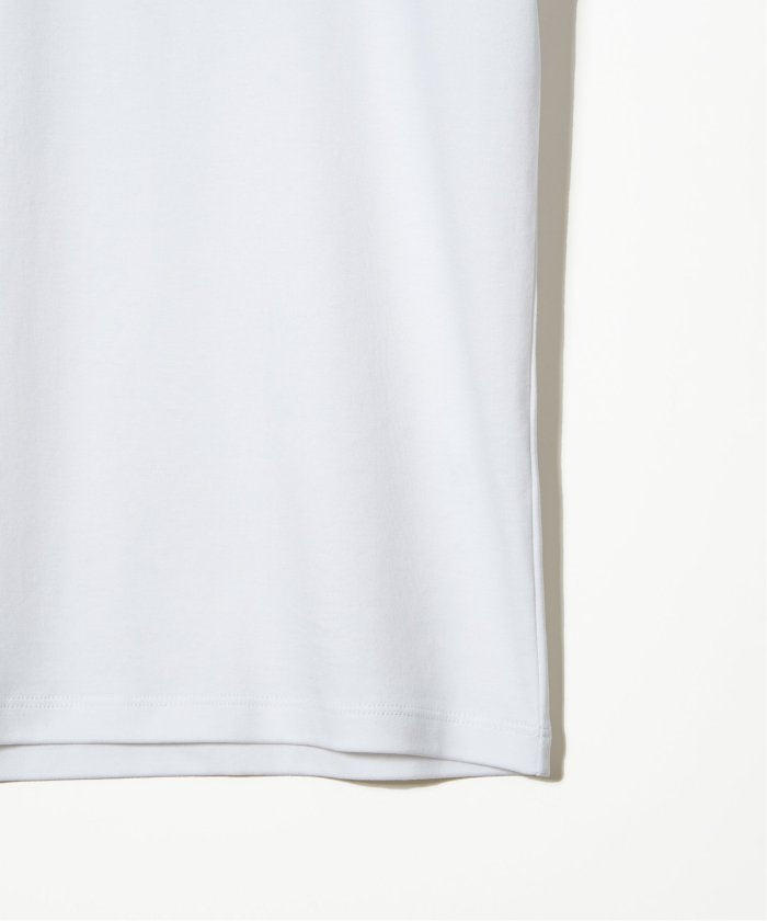 シンプルなクルーネックにさりげない個性を添えるのは、後ろ襟が高く設計された独自のディテール。