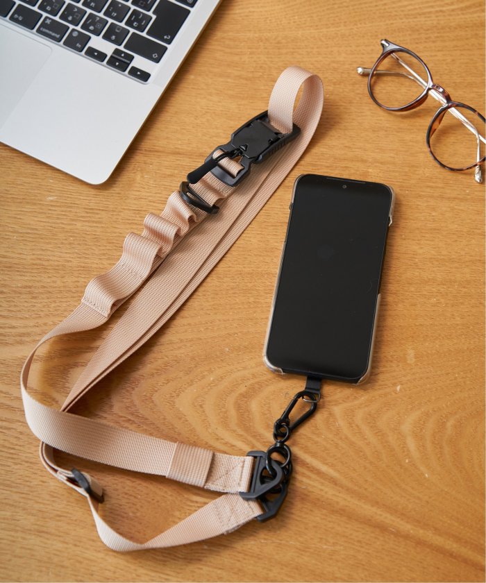 アウトドアテイストを意識したスマホストラップ。