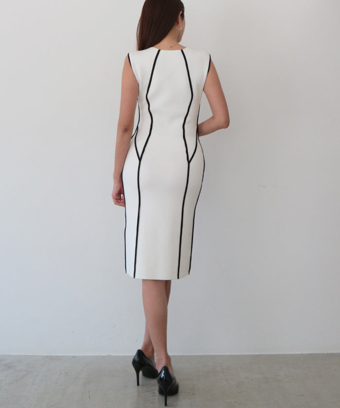 美しいカーブラインを奏でたペンシルニットワンピース。