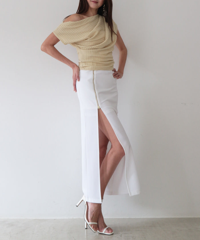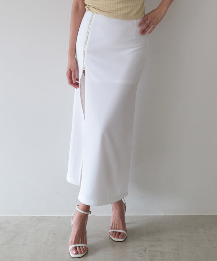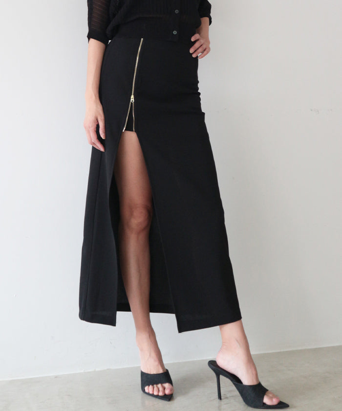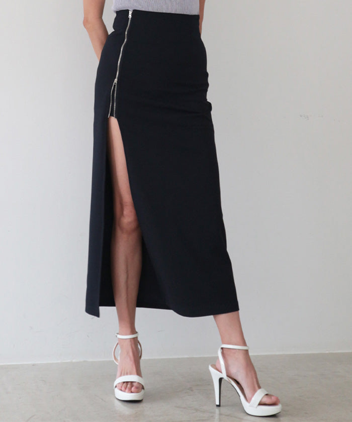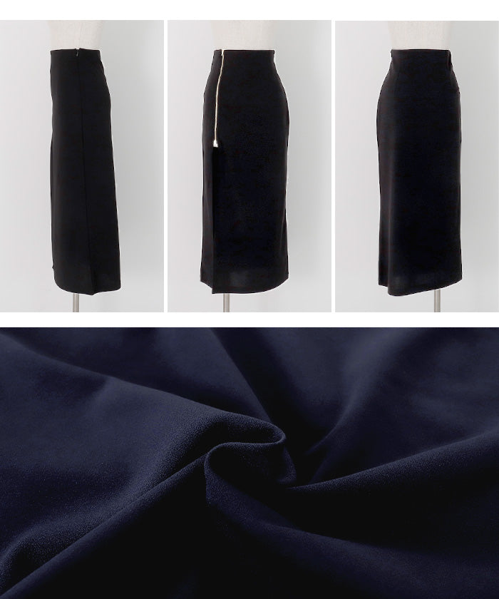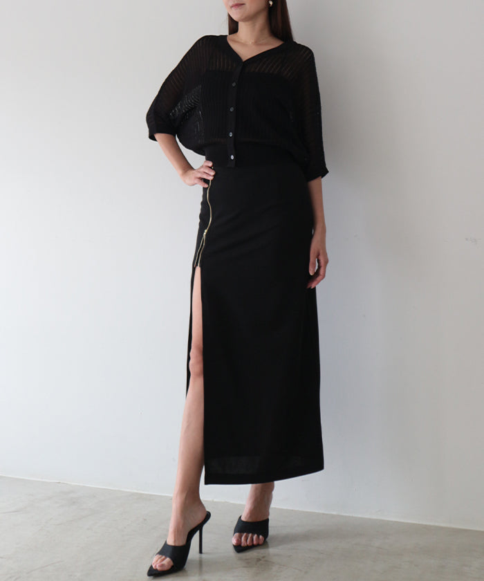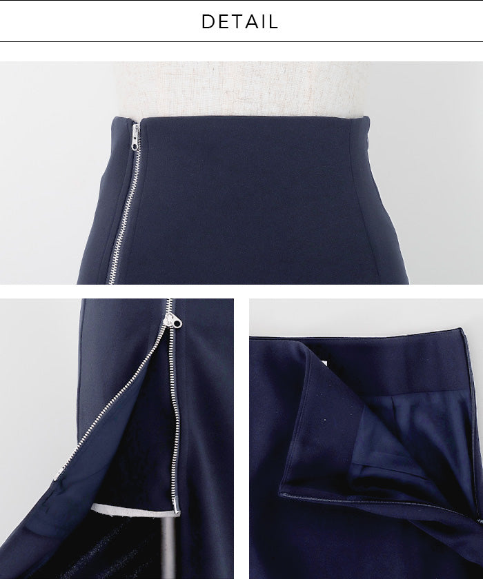 ジップ止まりを膝上に設定し、ディープスリットのように魅せるデザインにしました。