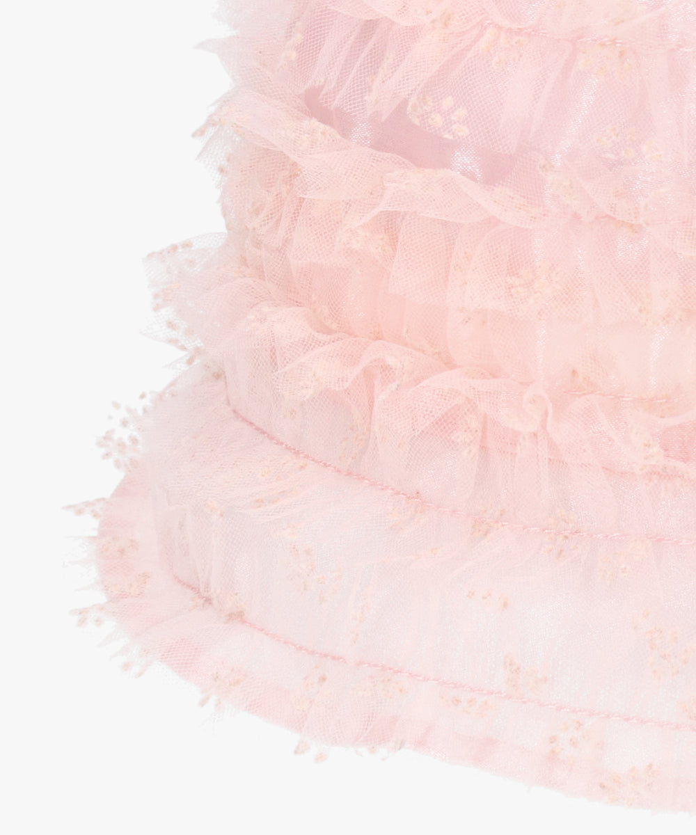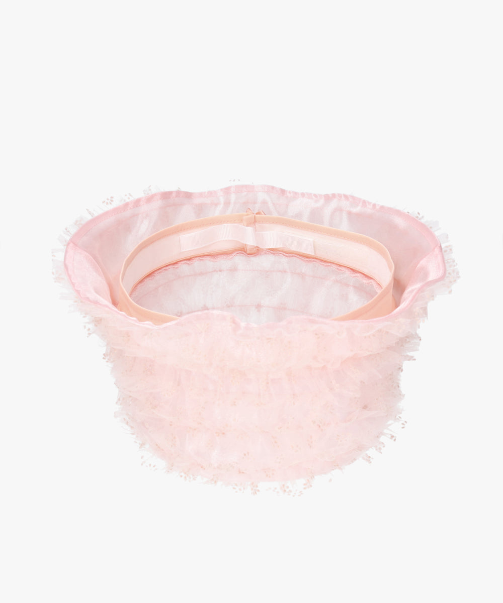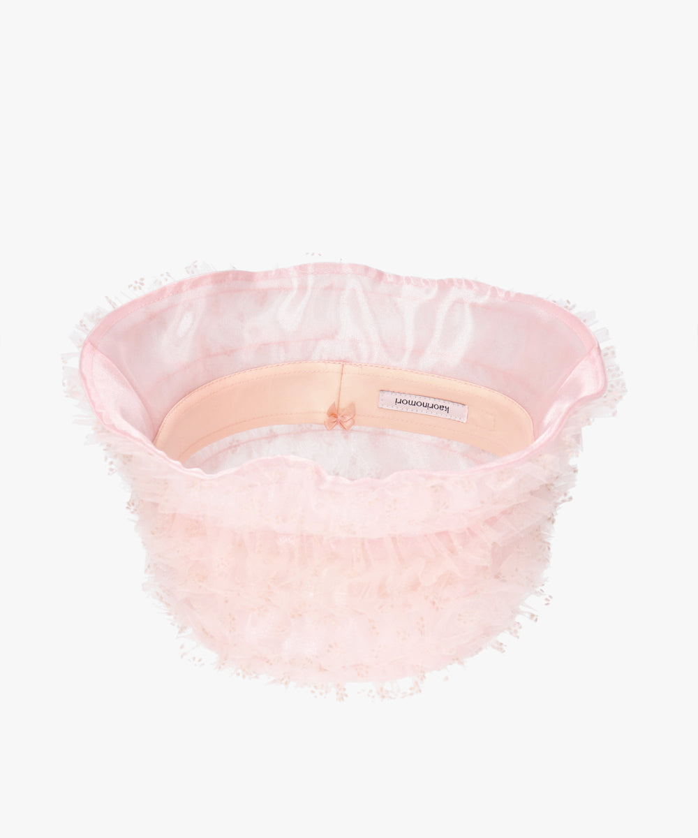 軽やかなチュール素材が優しい雰囲気を演出し、被るだけでコーディネートに甘さをプラスします。