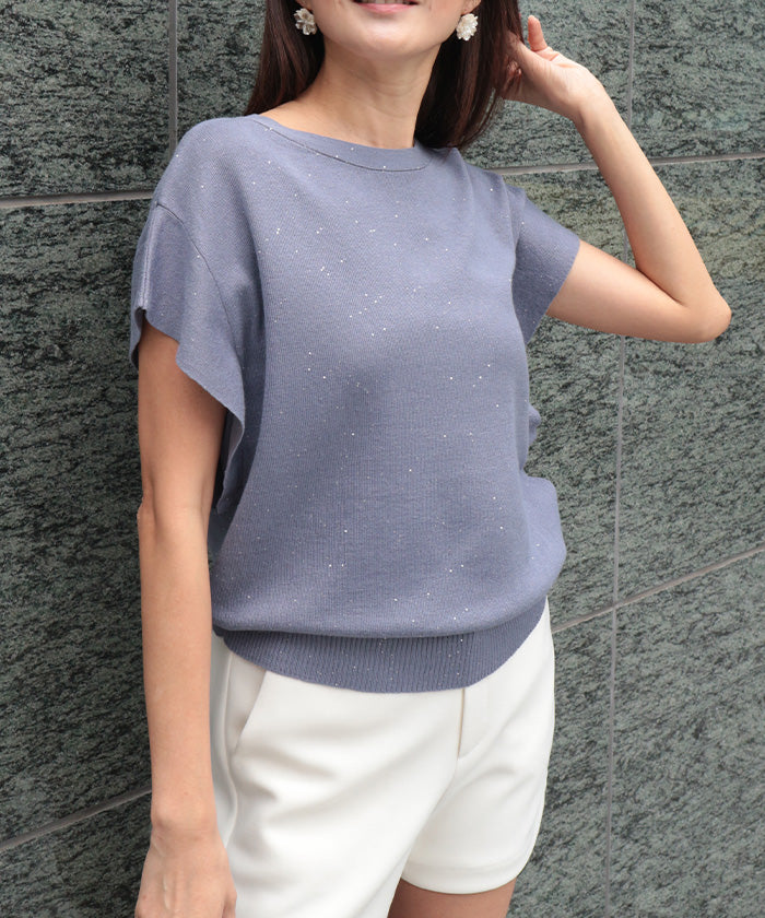 アンビエント AMBIENT スパンコールフレンチスリーブサマーニット