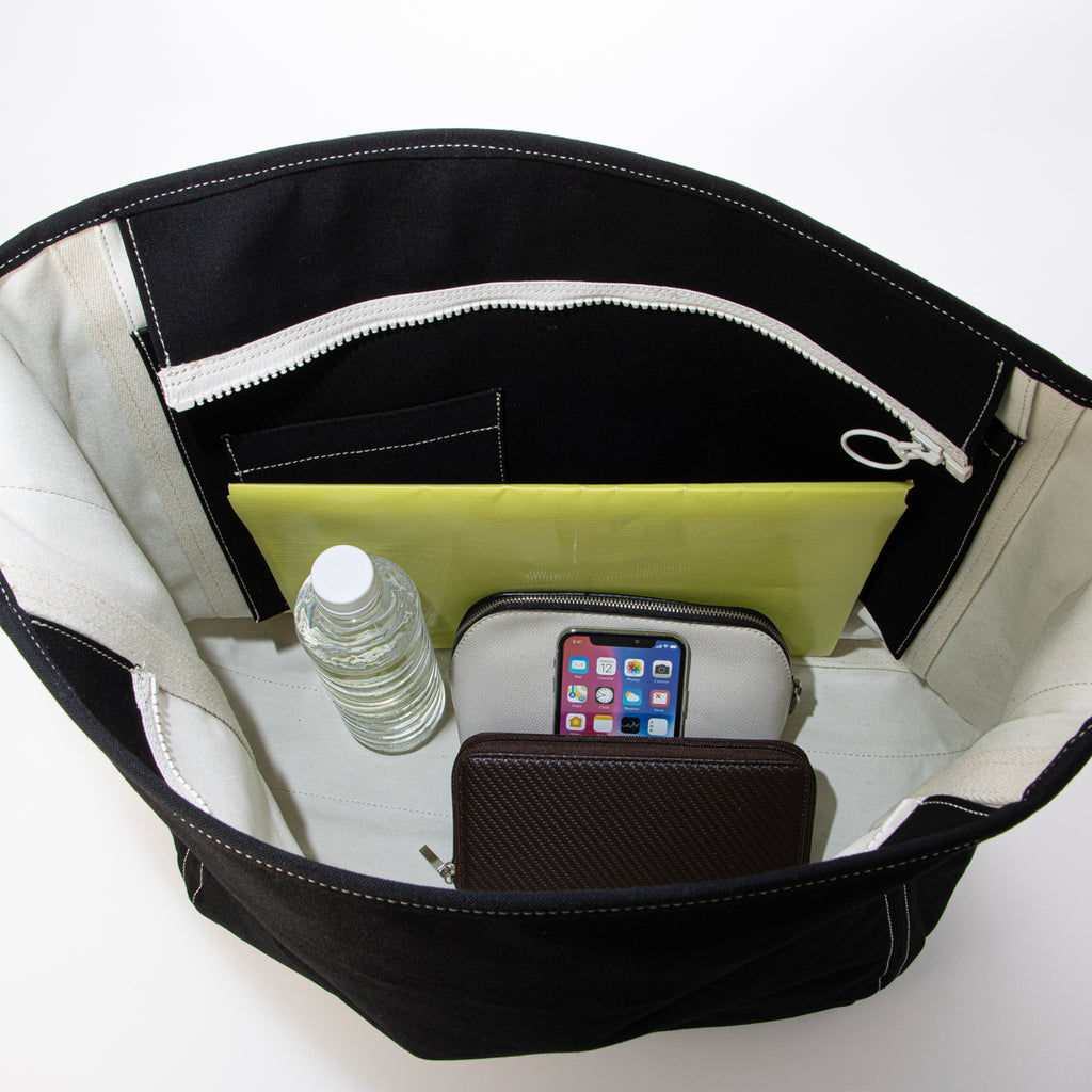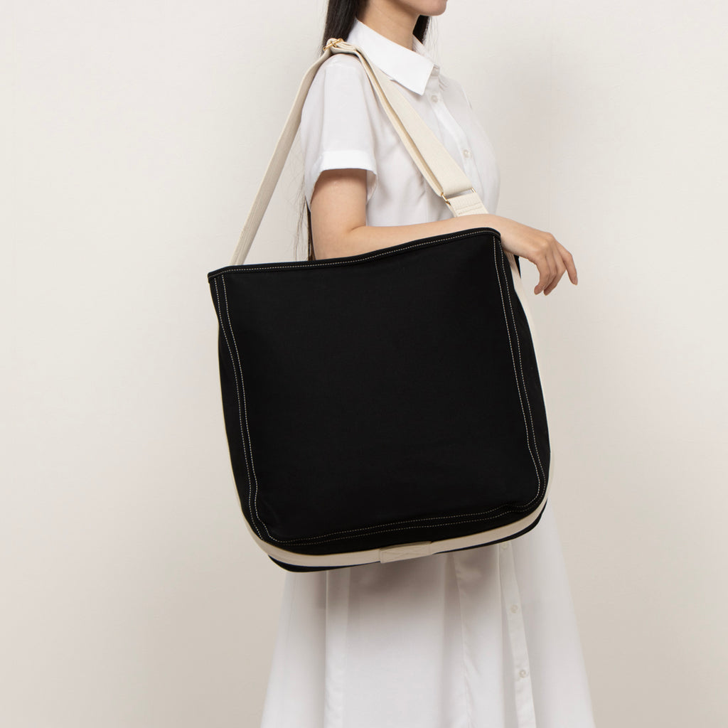 柔らかな質感のキャンバス素材に、補強された底面で型崩れしにくい設計。