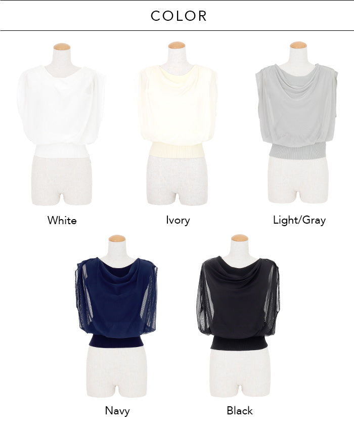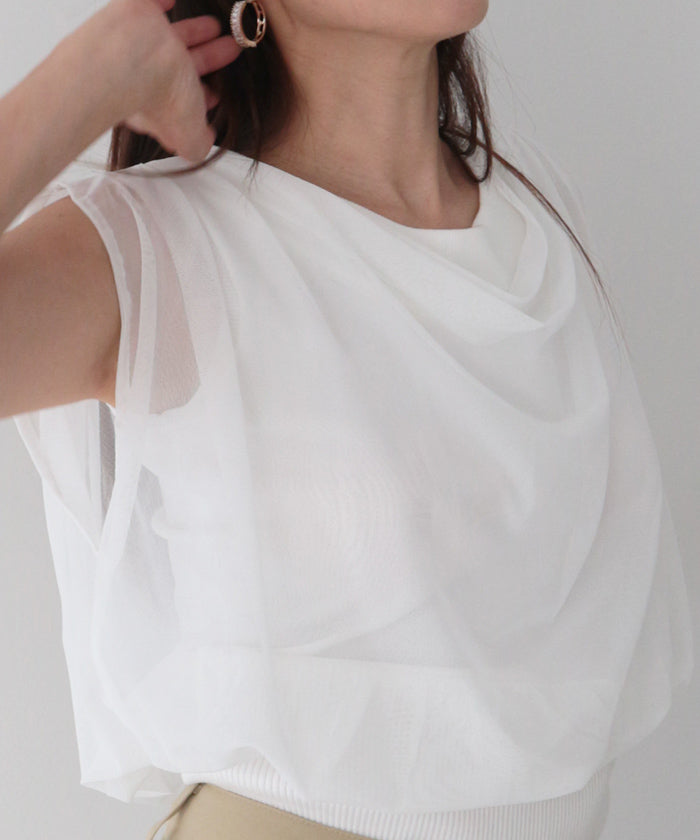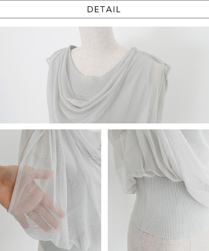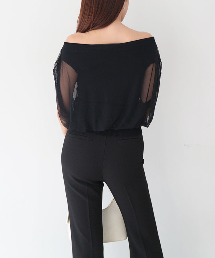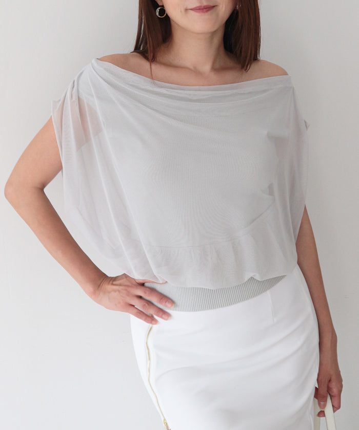 ニットとチュールを重ねた上質感ある2wayオフショルニット。
